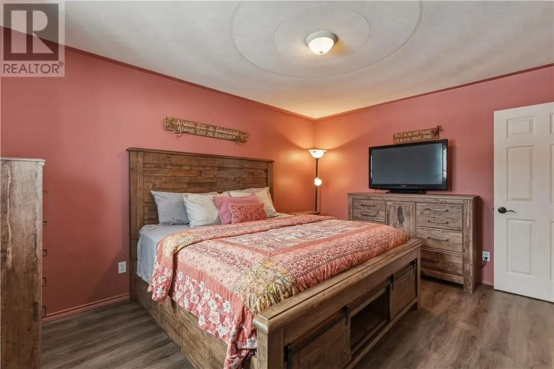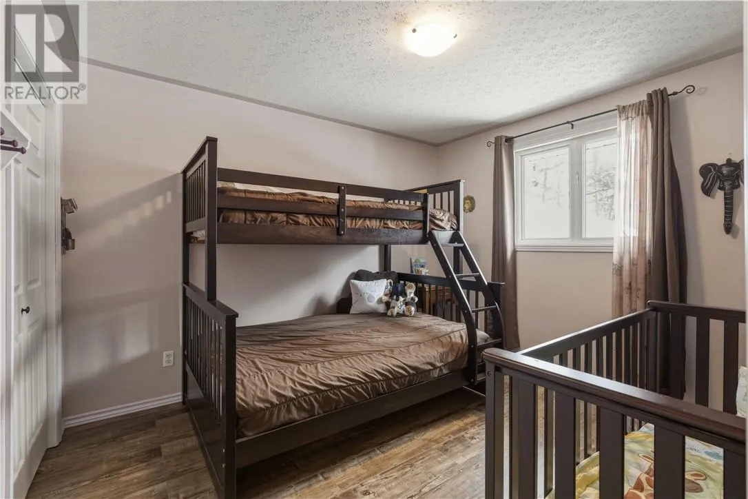 Welcome to this charming Spanish-entry bungalow nestled in one of Hanmerâs family-friendly neighbourhoods. This beautifully maintained 3+2 bedroom, 2-bath home offers the perfect blend of comfort, space, and privacy. Step inside to a bright and inviting main level featuring three spacious bedrooms, a functional layout, and plenty of natural light. The fully finished lower level offers two additional bedrooms, a second bathroom, and a large rec room. Outside, youâll love the paved driveway leading to a detached garage â perfect for extra storage. The backyard is a true highlight, backing directly onto peaceful bush for added privacy and a beautiful natural setting. Itâs the perfect space for kids to explore, family barbecues, or simply relaxing in your own quiet retreat. Situated near a park and in a welcoming community, this home is ideal for families looking for space, convenience, and a great neighbourhood atmosphere. Donât miss your opportunity to own this move-in-ready gem in Hanmer where comfort meets lifestyle! (id:27476)