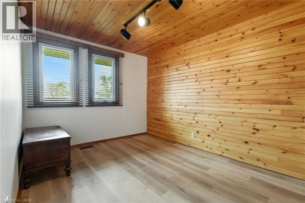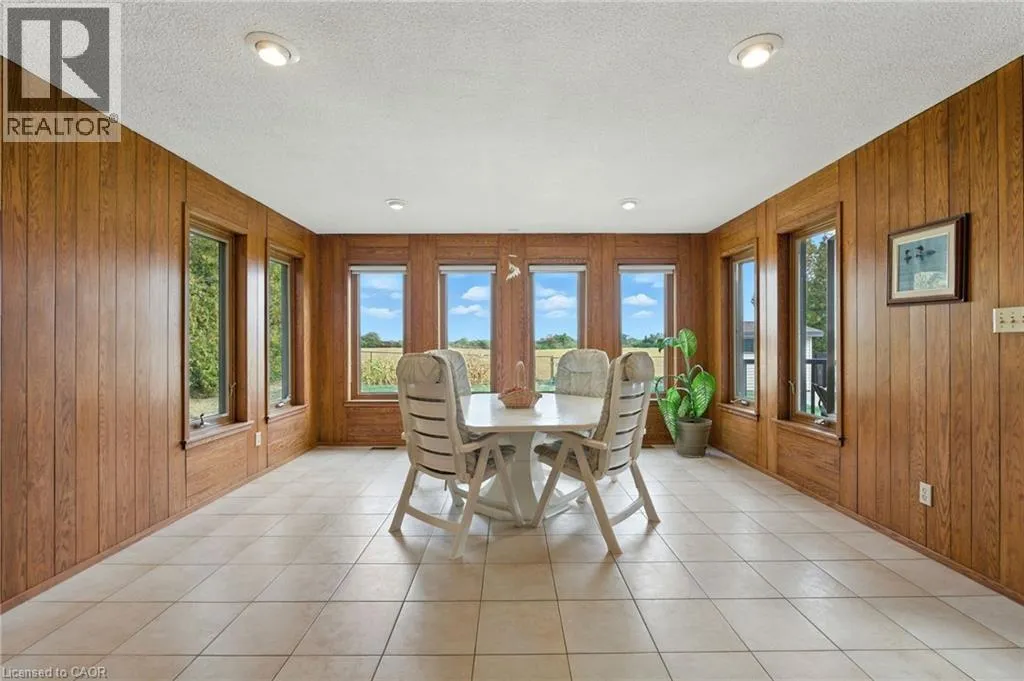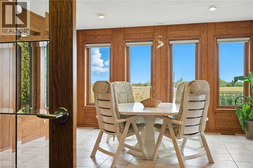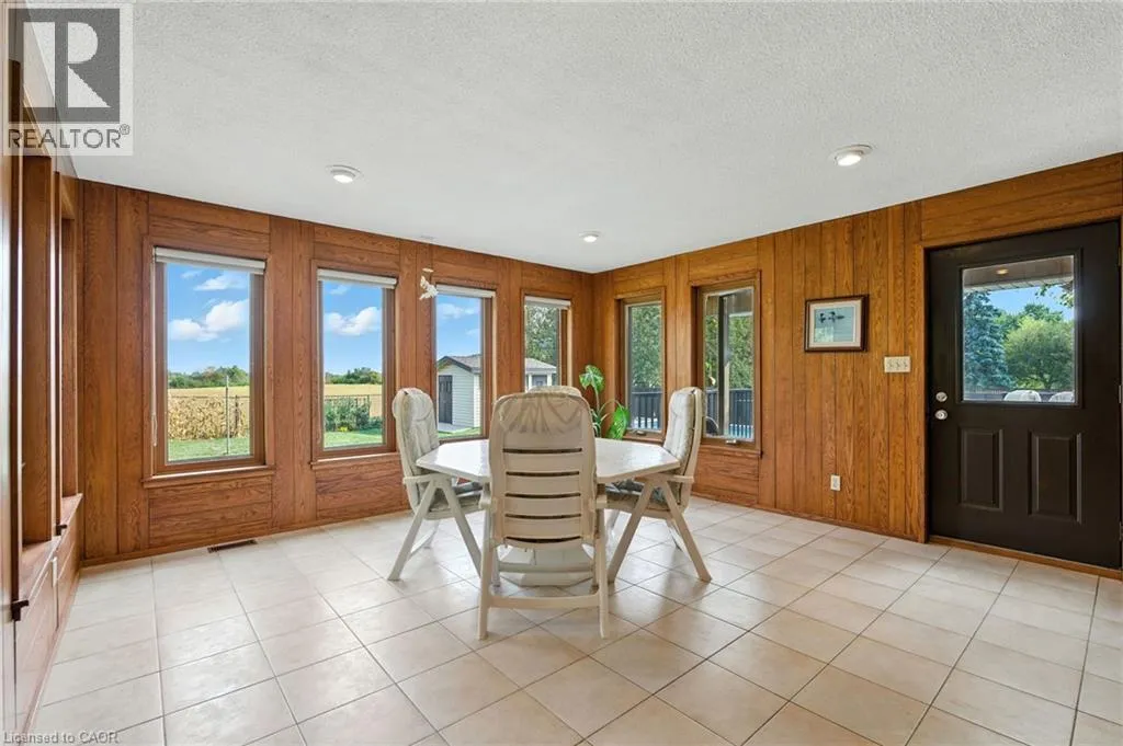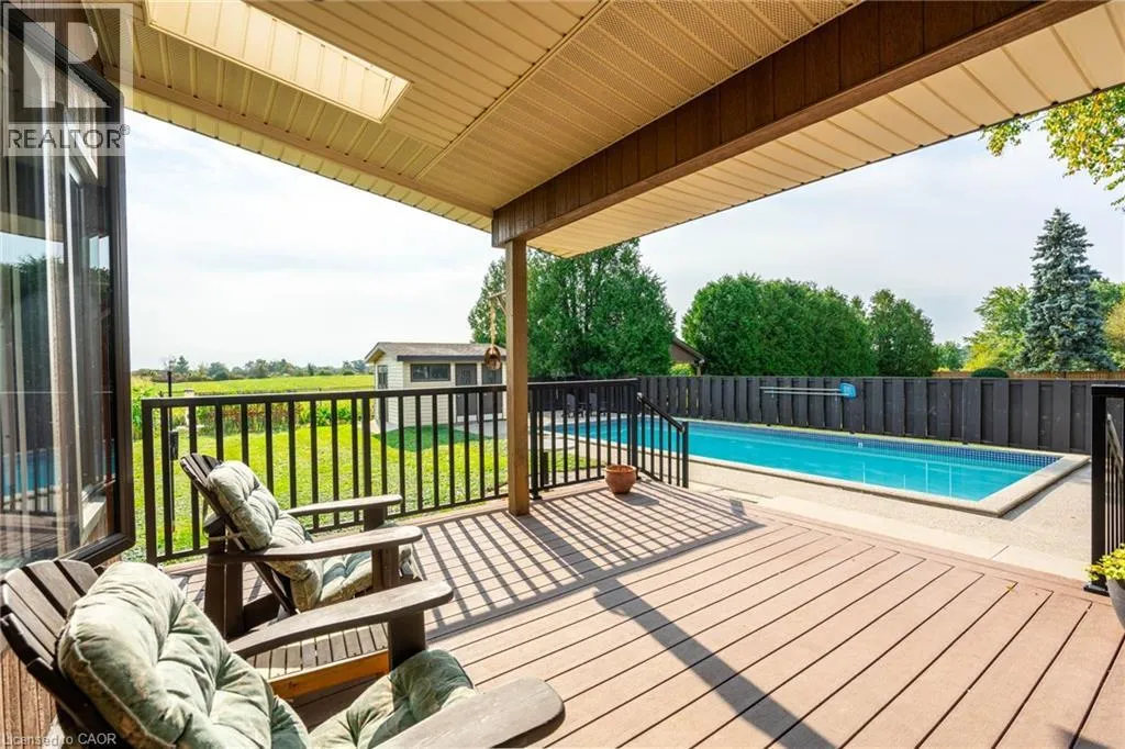 Lincoln M. Alexander Pkwy to Upper James St to Rymal Rd E to Trinity Church Rd Tucked away on nearly half an acre, this bungalow is more than just a houseâit's a legacy. Custom built by the original owners, every inch of this home tells a story of thoughtful design and pride of ownership. Step inside and youâre greeted with over 1,600 square feet on the main level, where space and light come together beautifully. Vaulted ceilings soar up to 10 feet in select areas. A walnut feature wall in the living room along with a fireplace and large windows grace this space. The kitchen overlooks the dining area which leads you into the sunroom that truly steals the show as it overlooks your private backyard oasis. Off the sunroom is a large, covered porch with composite decking that is perfect for morning coffees, summer afternoons and BBQing. The main level offers three good size bedrooms and a full bathroom. The basement features a rec room with newer flooring, a sauna and large unfinished area that awaits your personal vision including the possibility of an in-law suite. The backyard showcases an inground 17â x 37â pool which is approximately 40â deep, a storage/change room shed and exposed aggregate decking. There is a balance between sitting areas, grass areas and an area where you can grow your own produce in the established garden beds. You can simply take in the view with no rear neighbours as you have a peaceful backdrop of a farmerâs field. Additional features of this home include: basement exterior waterproofing, steel roof, oversized 24â8 x 26â6 double car garage that also offers a large stainless steel counter and sink. Whether you're starting a new chapter or settling into your forever home, this home offers comfort, privacy and the space to truly live. Donât be TOO LATE*! *REG TM. RSA. (id:27476)