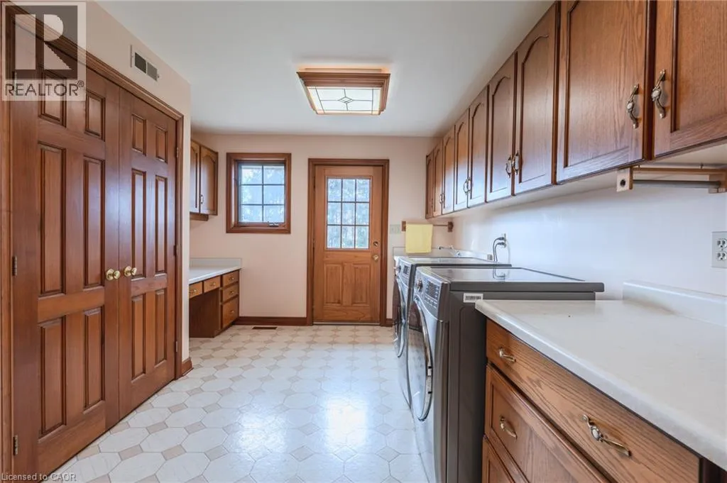 Hwy #20 to South on Woodburn Rd, East on Golf Club Rd Looking for space, serenity, and modern convenience? This exceptional 5-bedroom, 2.5-bath bungalow sits on 1.14 acres with peaceful farmland views and nearly 5,000 sq. ft. of living space. The bright layout offers formal living and dining rooms, a family room, solarium, and a large eat-in kitchen perfect for entertaining. The finished basement features a cozy gas fireplace, a second kitchen, a rough-in bath, and flexible space ideal for a multigenerational family or in-law suite. The home includes a 6,000-gallon cistern for ample water capacity, while the heated 1,800 sq. ft. workshop offers a 4,200-gallon cistern, separate electricity and gas, and has been reframed into two individual units with their own utilitiesâproviding excellent potential for rental income or home-based business use. This rare blend of rural charm and modern functionality is just minutes from city amenities, with the potential for two additional ADUs for even more income opportunities. (id:27476)