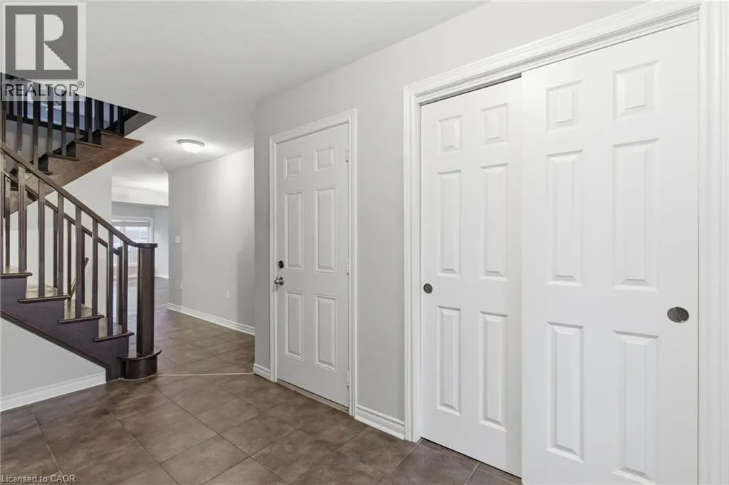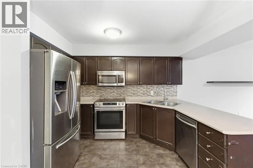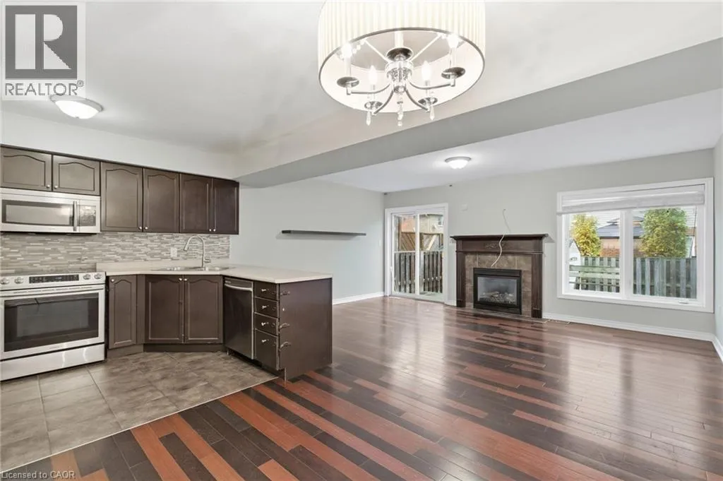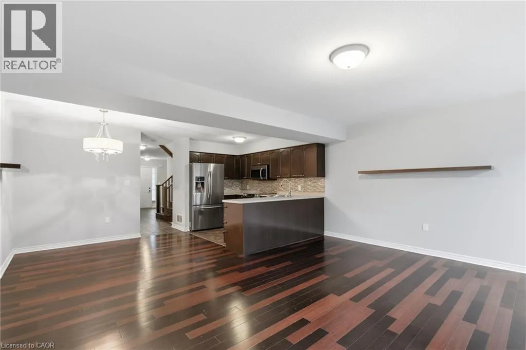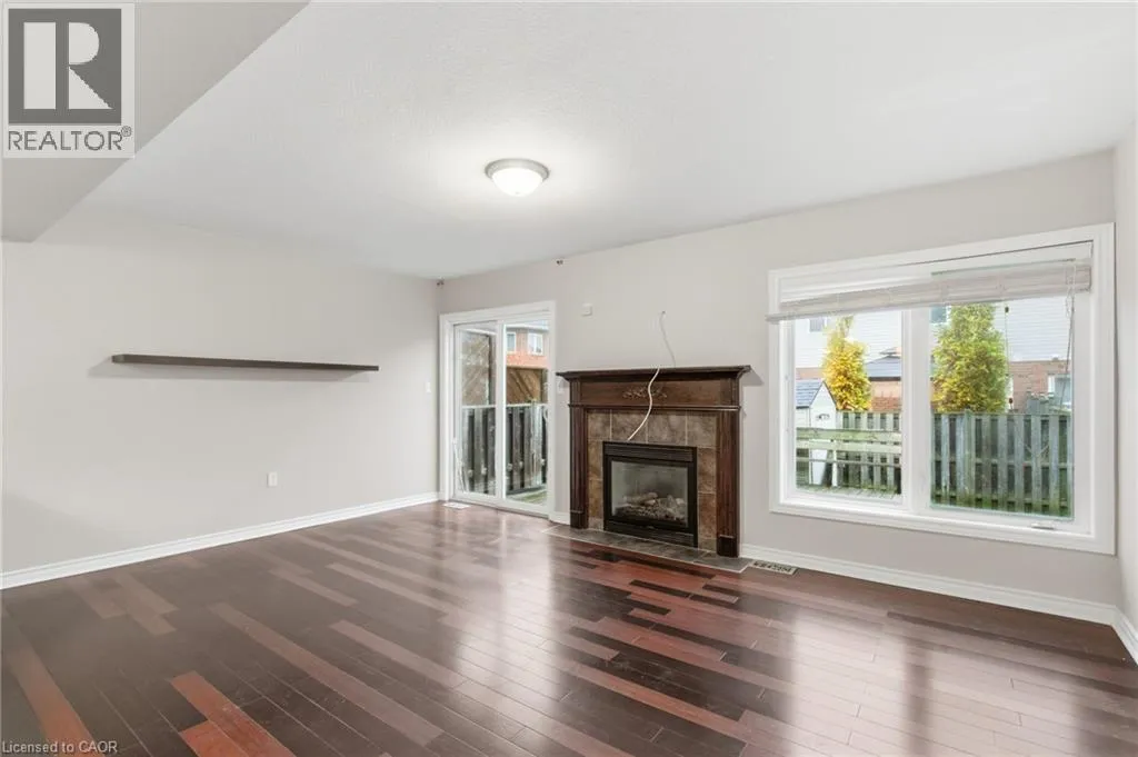 Rymal Road East to Fletcher Road to Pinehill Drive to Blue Mountain Drive Freehold Townhouse in family friendly neighborhood. 3 bedrooms, 2.5 bathrooms, open concept main floor features; kitchen with mosaic backsplash, island/breakfast nook with seating for 4 people, and Stainless Steel appliance. Bright spacious living room/dining room with bamboo flooring, gas fireplace & walkout to private backyard. Second level features; 3 spacious bedrooms, Primary bedroom with walk-in closet, private ensuite bathroom with glass walk-in shower and soaker tub, bonus loft area just off primary bedroom perfect for sitting area or home office. Fully finished basement features; rec room, exercise area, laundry room and cold cellar. Fully fenced backyard with deck off living room â deck has built in seating, perfect for entertaining! Attached garage with inside entry to front foyer, walk out to rear yard. Close to schools, shopping, movie theatre, hiking trails, minutes to the LINC and RED HILL â perfect for commuters. (id:27476)