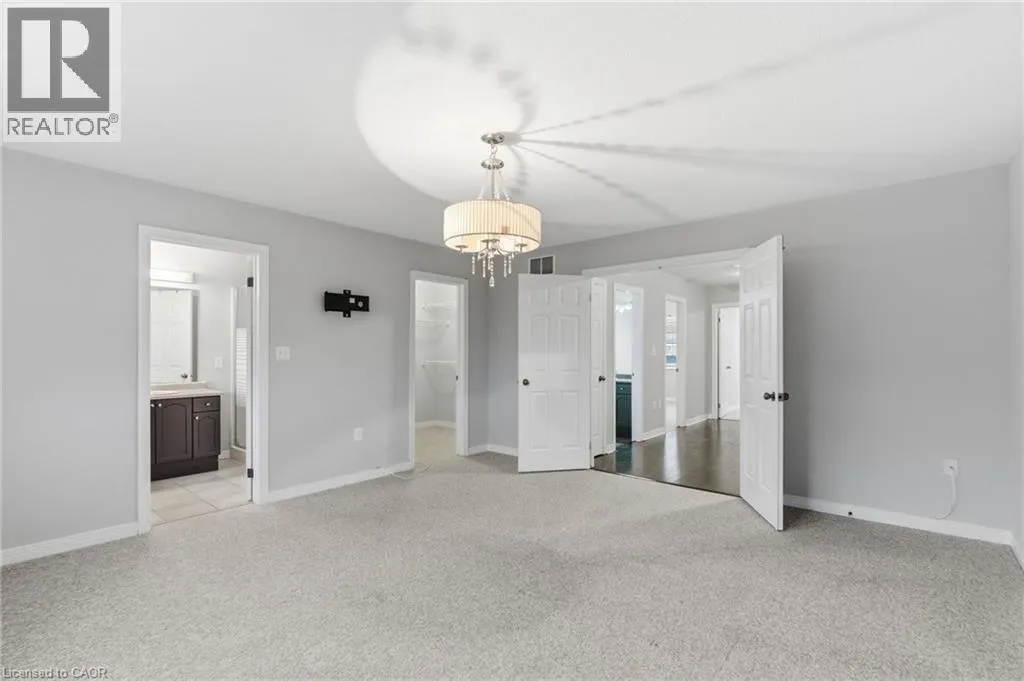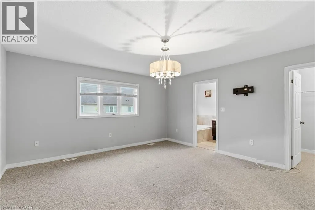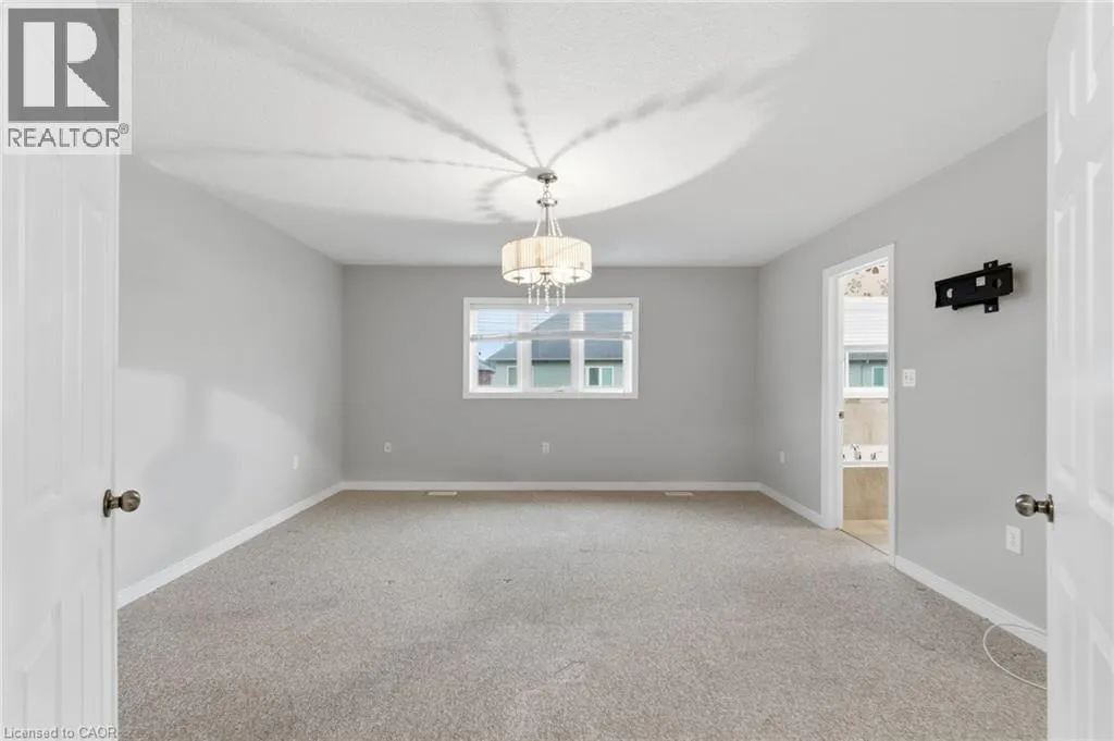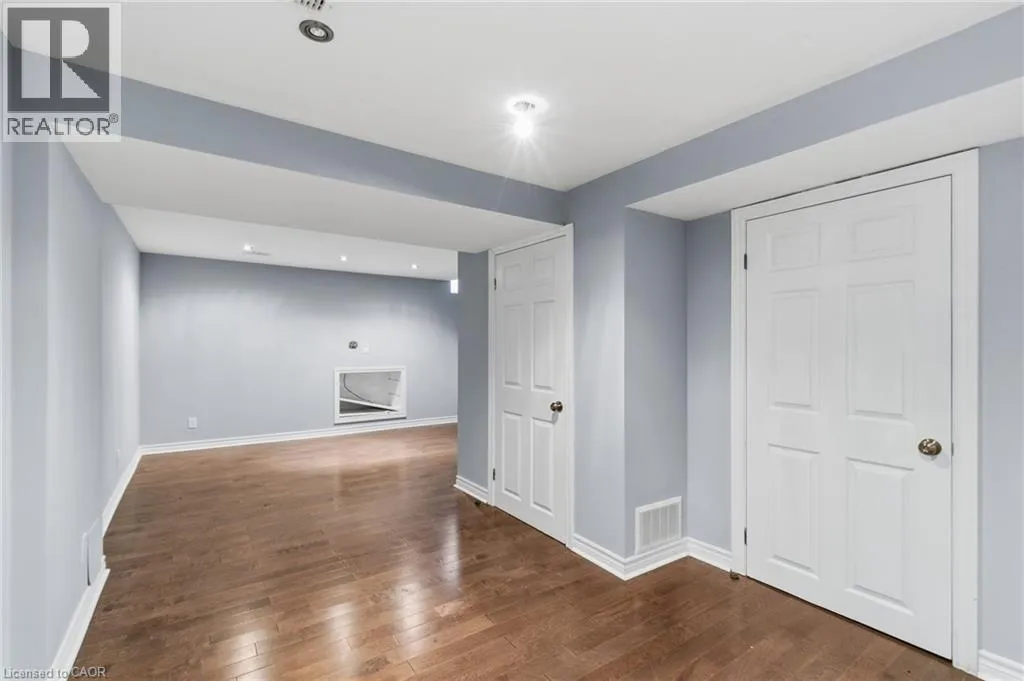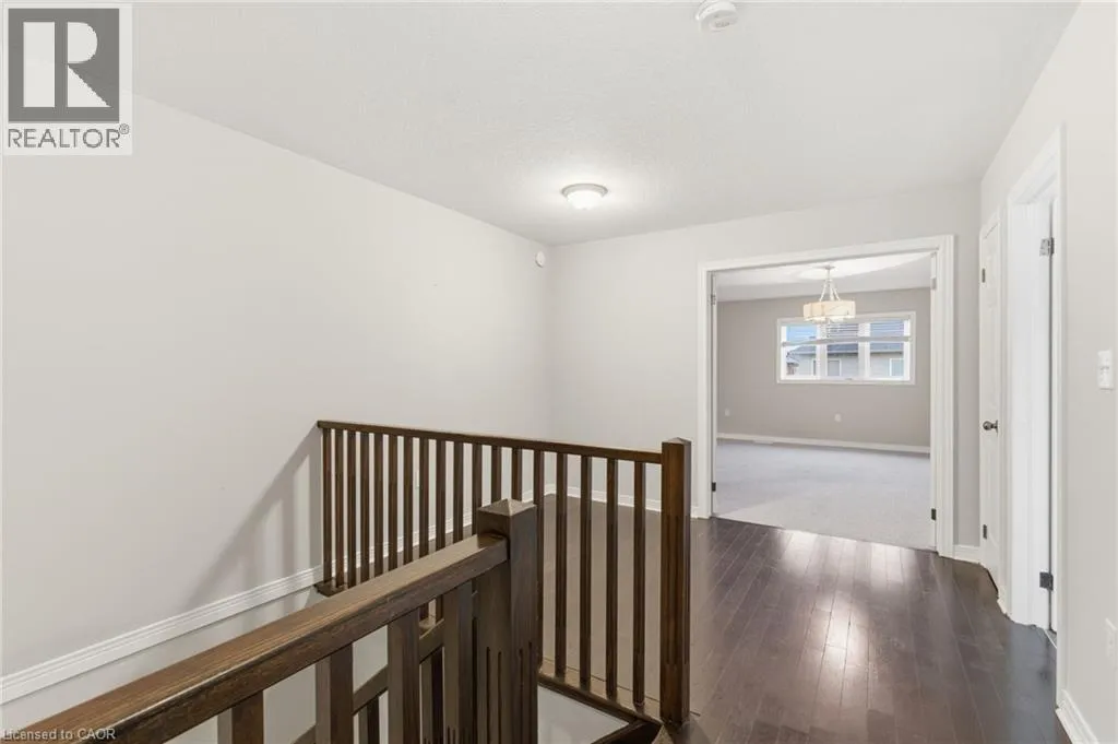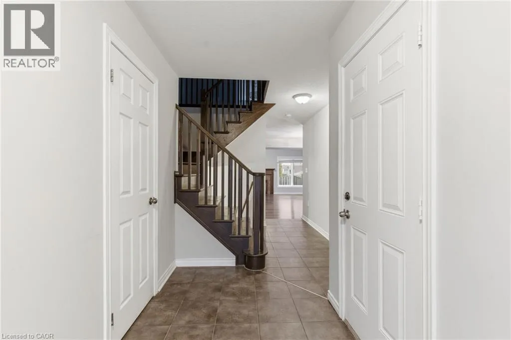 Rymal Road East to Fletcher Road to Pinehill Drive to Blue Mountain Drive Freehold Townhouse in family friendly neighborhood. 3 bedrooms, 2.5 bathrooms, open concept main floor features; kitchen with mosaic backsplash, island/breakfast nook with seating for 4 people, and Stainless Steel appliance. Bright spacious living room/dining room with bamboo flooring, gas fireplace & walkout to private backyard. Second level features; 3 spacious bedrooms, Primary bedroom with walk-in closet, private ensuite bathroom with glass walk-in shower and soaker tub, bonus loft area just off primary bedroom perfect for sitting area or home office. Fully finished basement features; rec room, exercise area, laundry room and cold cellar. Fully fenced backyard with deck off living room â deck has built in seating, perfect for entertaining! Attached garage with inside entry to front foyer, walk out to rear yard. Close to schools, shopping, movie theatre, hiking trails, minutes to the LINC and RED HILL â perfect for commuters. (id:27476)