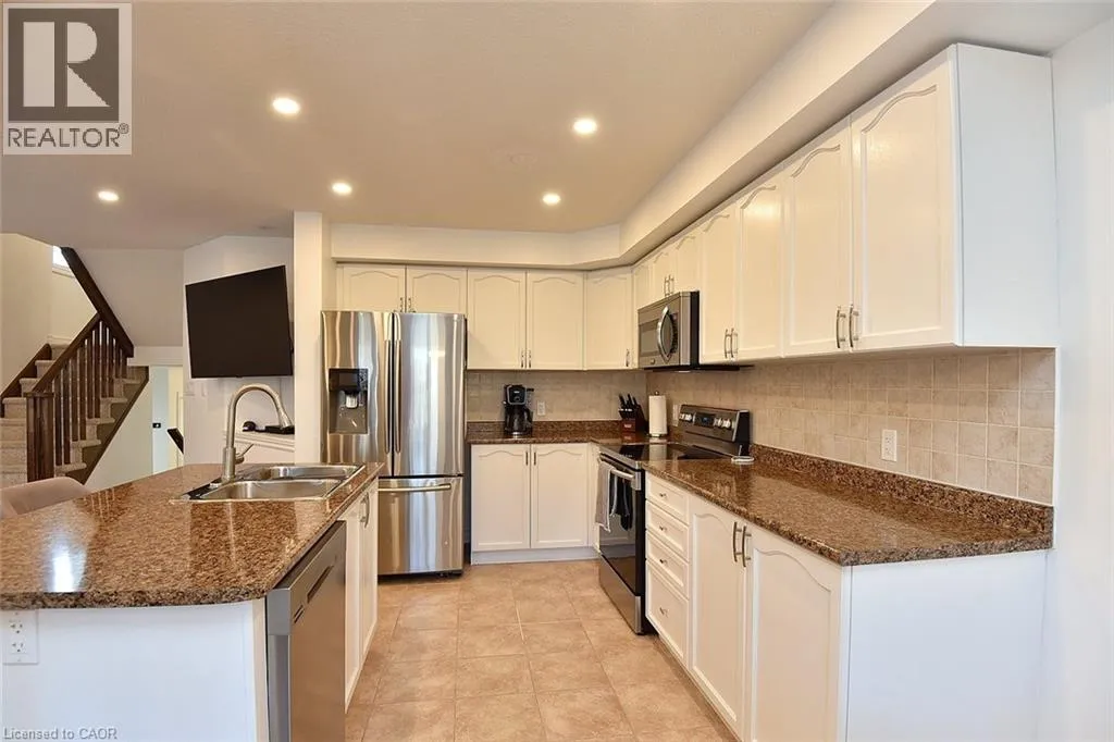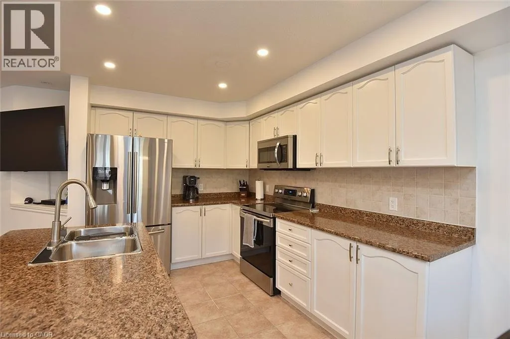 Rymal Road East to Fletcher Road to Bellagio Ave to Celestial Cres Welcome to this beautifully updated and impeccably kept end-unit townhome, offering the space and privacy you desire. This home is truly move-in ready, featuring a host of modern upgrades and fantastic amenities. The main floor boasts a bright, open-concept layout highlighted by a combination of hardwood and ceramic flooring. Enjoy the warm ambiance created by stylish pot lights and an abundance of natural light. A sliding door provides seamless access to your private, fenced backyard. The upper level is designed for family living, offering three generously sized bedrooms. The main bedroom is a tranquil retreat featuring its own private ensuite bathroom. A second full bathroom and a convenient upper-level laundry area complete this floor. The fully finished basement significantly expands your living space, including a dedicated office space perfect for remote work, a large recreation room for entertaining or relaxation, and ample storage solutions. Enjoy peace of mind knowing the Furnace, Central Air Conditioning, and Water Heater are owned and were all newly installed in 2024! Step outside to discover your very own private escape! The fenced backyard features a 12-foot heated above-ground poolâthe perfect amenity for summer fun and relaxation. oversized 1 car Garage with access to the inside. Driveway for 2 cars. This home is situated in a highly convenient area, just steps away from schools, parks, public transportation, essential amenities, and so much more! (id:27476)