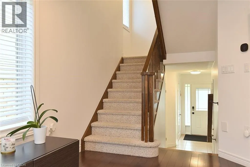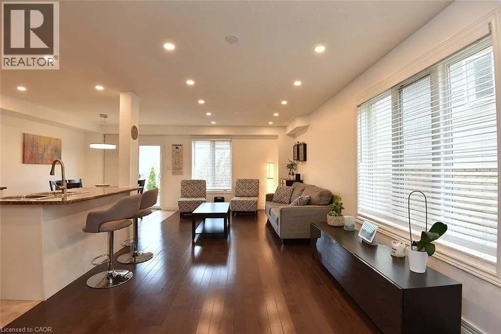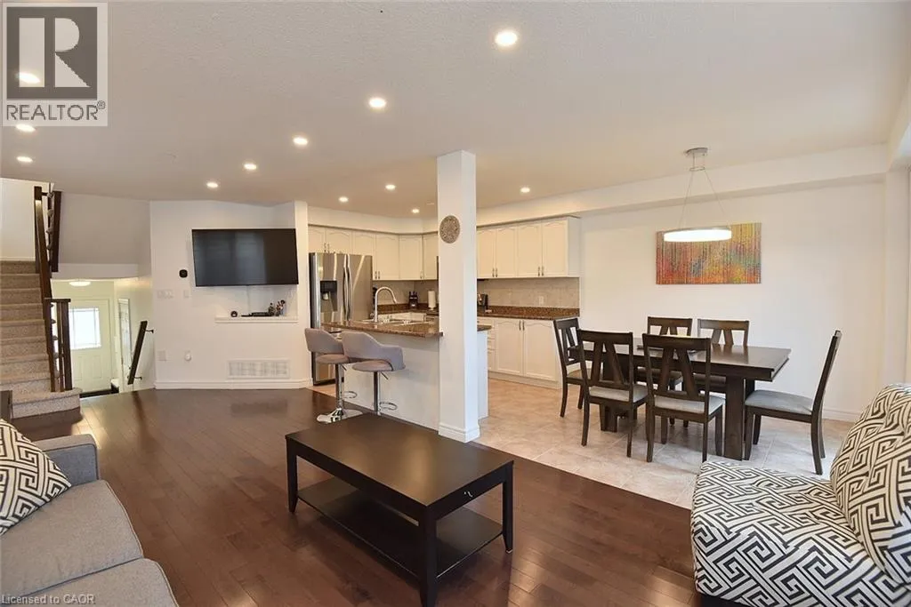 Rymal Road East to Fletcher Road to Bellagio Ave to Celestial Cres Welcome to this beautifully updated and impeccably kept end-unit townhome, offering the space and privacy you desire. This home is truly move-in ready, featuring a host of modern upgrades and fantastic amenities. The main floor boasts a bright, open-concept layout highlighted by a combination of hardwood and ceramic flooring. Enjoy the warm ambiance created by stylish pot lights and an abundance of natural light. A sliding door provides seamless access to your private, fenced backyard. The upper level is designed for family living, offering three generously sized bedrooms. The main bedroom is a tranquil retreat featuring its own private ensuite bathroom. A second full bathroom and a convenient upper-level laundry area complete this floor. The fully finished basement significantly expands your living space, including a dedicated office space perfect for remote work, a large recreation room for entertaining or relaxation, and ample storage solutions. Enjoy peace of mind knowing the Furnace, Central Air Conditioning, and Water Heater are owned and were all newly installed in 2024! Step outside to discover your very own private escape! The fenced backyard features a 12-foot heated above-ground poolâthe perfect amenity for summer fun and relaxation. oversized 1 car Garage with access to the inside. Driveway for 2 cars. This home is situated in a highly convenient area, just steps away from schools, parks, public transportation, essential amenities, and so much more! (id:27476)