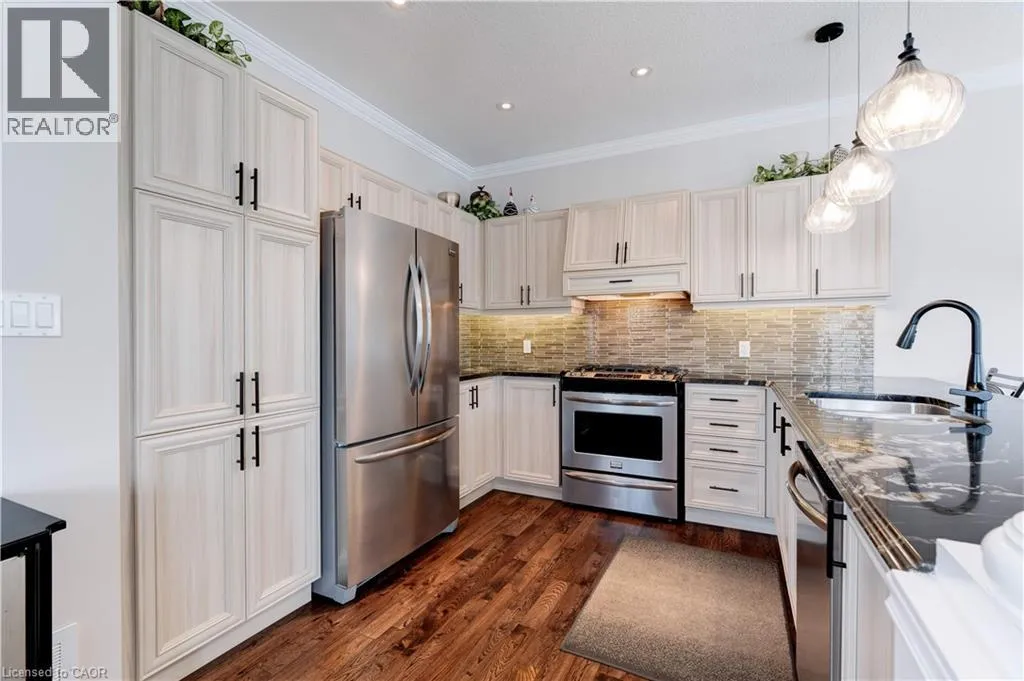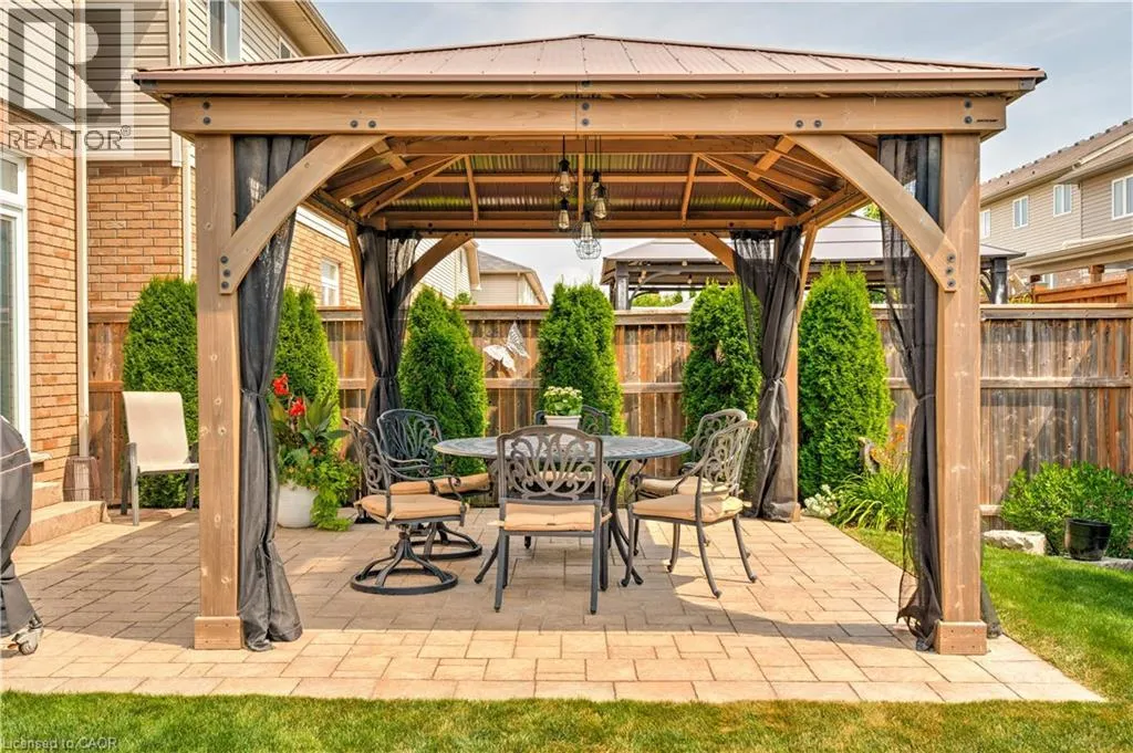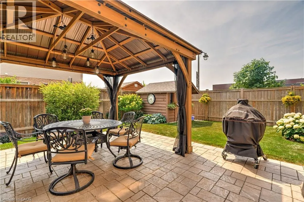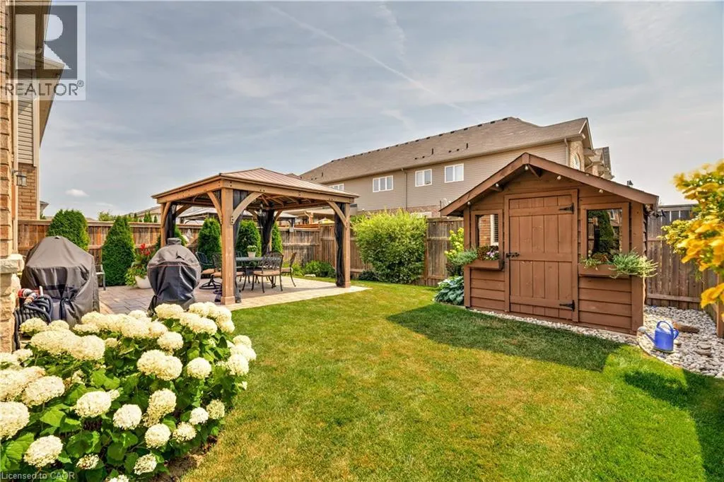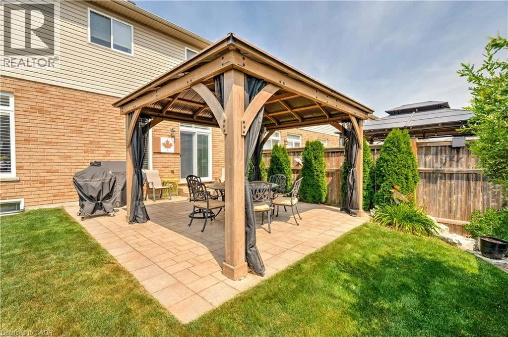 Beliago/Fletcher Stunning freehold 1655 SQ ft END UNIT townhome with a double car garage located in the award-winning Summit Park neighbourhood, close to schools and shopping, Premium private large lot beautifully landscaped with irrigation system and enclosed backyard, features a stone patio, gazebo, storage shed, perennial gardens and a private side entrance which offers a tranquil space for relaxation and entertainment. Truly a serene backyard retreat. The main level is complemented by a welcoming foyer, powder room, and inside entry from the 2 car garage. Sun filled open-concept layout features large windows, California Shutters, pot lighting and is perfect for gatherings and everyday living. The kitchen is complete with gas stove, sleek granite countertops, stainless steel appliances and breakfast bar. Upstairs, youâll find three generously sized bedrooms. The primary suite features a walk-in-closet and ensuite. An additional 4-piece bathroom, laundry room complete the upper level. Unspoiled basement awaits your creativity and finishing touches. Ideal location, close to schools, shopping, HSR, parks, conservation area, major highways, and more. (id:27476)
