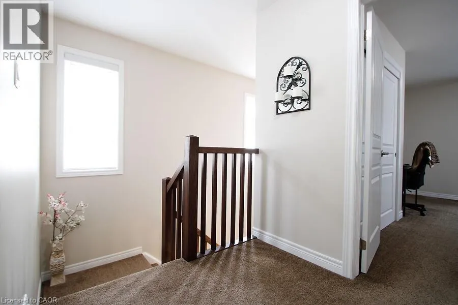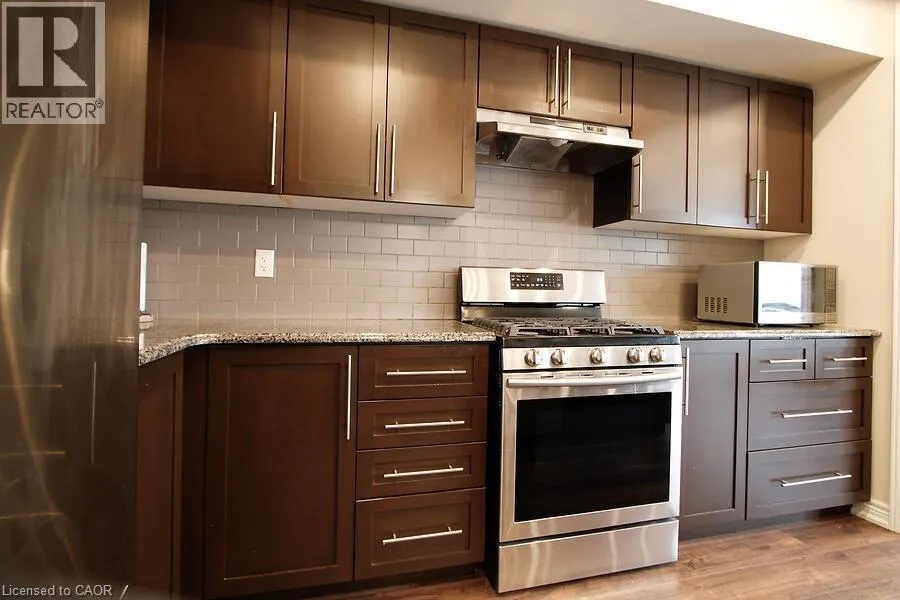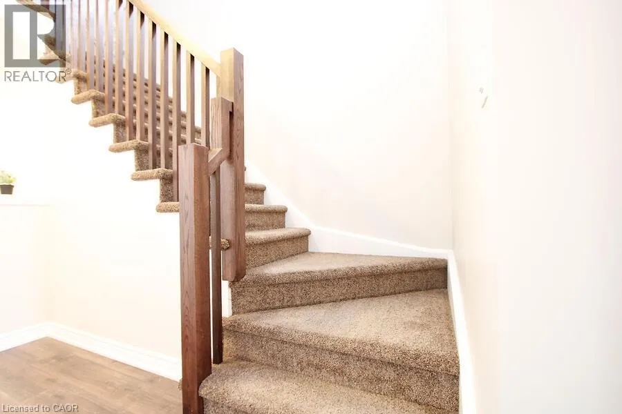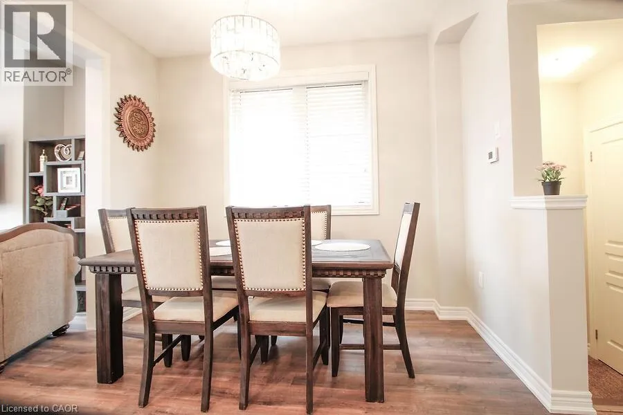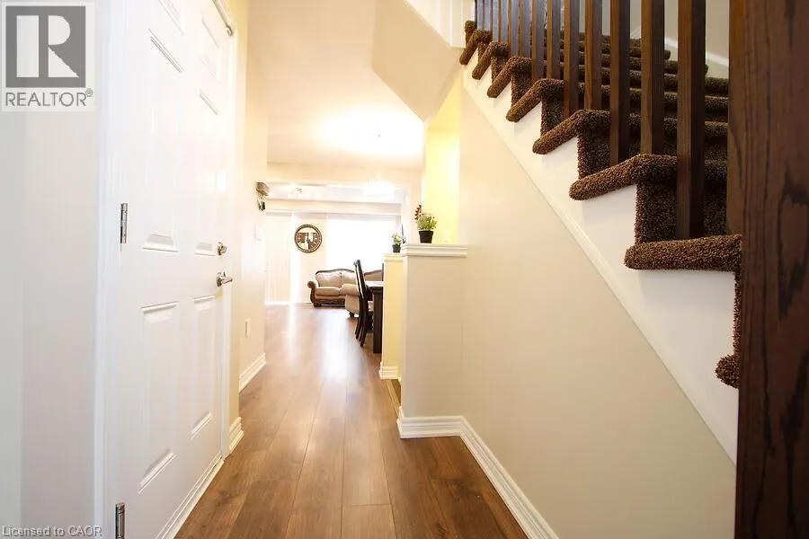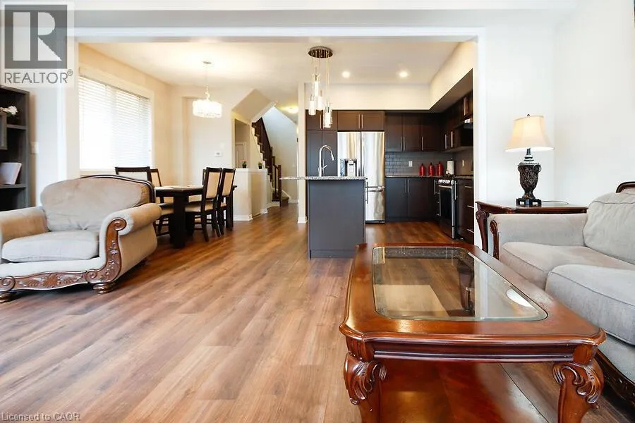 Located on Rymal Rd E between Dakota Blvd and Fletcher Rd. Absolutely Stunning End Unit Freehold Townhome in Sought-After Stoney Creek Mountain! This beautifully upgraded Branthaven 2-storey townhome offers 1830 sq ft - the largest floor plan in the complex and is ideally located in a quiet, private block at the back of the development. Just steps from top-rated schools, parks, the 193-acre Eramosa Karst Conservation Area, SmartCentres, restaurants, and with quick access to The Link, Red Hill Parkway, and the QEW. The home features 3 spacious bedrooms, 2.5 bathrooms, and a bright open-concept main floor with 9-ft ceilings, upgraded cabinetry, a large island, granite countertops and tiled backsplash. A generous family room with a gas fireplace overlooking the kitchen and dining areas, potlights, smooth ceilings throughout and laminate flooring on the main level - perfect for everyday living and entertaining. Convenient inside access to the garage adds everyday practicality. Enjoy a private fenced backyard, offering plenty of space for outdoor entertaining or relaxing in your own private retreat. The large primary suite features a walk-in closet and a spa-inspired ensuite. Upper-level laundry adds extra convenience. Move-in-ready with all the upgrades done - just unpack and enjoy! (id:27476)