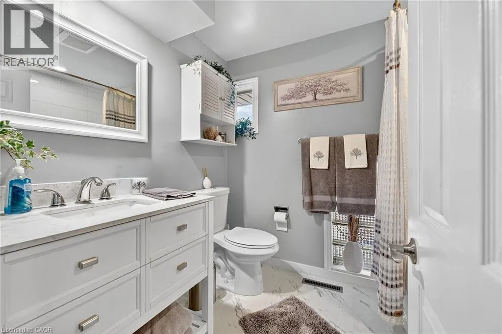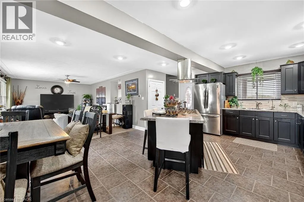 WHITE CHURCH RD E TO TRINITY CHURCH ROAD Beautifully presented, Exquisitely updated 3 bedroom, 2 bathroom Sidesplit situated on picturesque 100â x 218â mature lot on sought after Trinity Church Rd. Great curb appeal with all brick exterior, welcoming front walkway leading to covered porch, attached car port, tastefully landscaped, & entertainers dream back yard with recently updated composite deck overlooking calming country views. The flowing interior layout features close to 2000 sq ft of well designed living space highlighted by gourmet kitchen with oversized eat at island, S/S appliances, tile flooring, & backsplash, formal dining area leading to patio, spacious living room, 2 large upper level bedrooms, & updated primary 4 pc bathroom. The finished basement includes rec room, 3rd bedroom, additional 3 pc bathroom, laundry room, & storage area. Conveniently located minutes to Hamilton amenities, restaurants, shopping, schools, parks, & easy access to Red Hill, Linc, QEW, & 403. Upgrades throughout include modern decor, flooring, & fixtures, kitchen, decking, roof shingles â 2019, hi eff N/Gas furnace & A/C. Rarely do properties in this location come available for sale in the price range! Perfect home for all walk of life. Shows well â Just move in & Enjoy! Experience Hannon Country Living at its Finest! (id:27476)