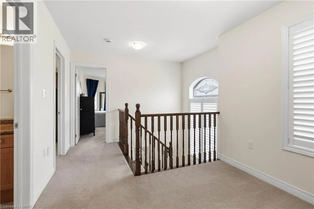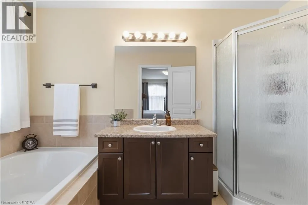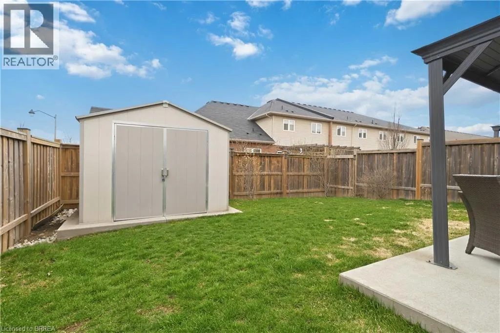 403 to the Lincoln Alexander Pkwy. Take the ramp and follow signs for Dartnall Road. Turn left onto ON-53/Rymal Rd E. Turn right onto Kingsborough Dr. Then turn right onto Bellagio Ave, Charleswood will be on your right. Welcome to this beautifully maintained 3-bedroom, 2.5-bathroom end-unit townhome, offering the perfect blend of style, comfort, and functionality. Flooded with natural light from large windows with California shutters, this home features a bright and inviting open-concept layout ideal for both everyday living and entertaining. The modern kitchen is complete with stainless steel appliances, ample cabinetry, and a raised breakfast bar, seamlessly flowing into the spacious living and dining areas. The main level showcases a combination of engineered hardwood and ceramic flooring, with fresh paint completed in 2025, adding a clean and updated feel throughout. Upstairs, youâll find three generously sized bedrooms, including a primary suite with a walk-in closet and a private ensuite featuring a relaxing soaker tub. Two additional bedrooms share a full 4-piece bathroom, perfect for families or guests. Step outside to enjoy the added bonus of a larger end-unit lot, featuring a good-sized backyard and side yard complete with a concrete patio, gazebo, and shed, ideal for outdoor entertaining or relaxing. The unfinished basement offers endless potential, ready for your personal touches. Located in a highly desirable, family-friendly community close to everyday amenities, this home also offers quick access to major routes including the Red Hill Parkway and Lincoln Alexander Parkway, making commuting a breeze. A fantastic opportunity to own a stylish and move-in ready home in a prime location. (id:27476)