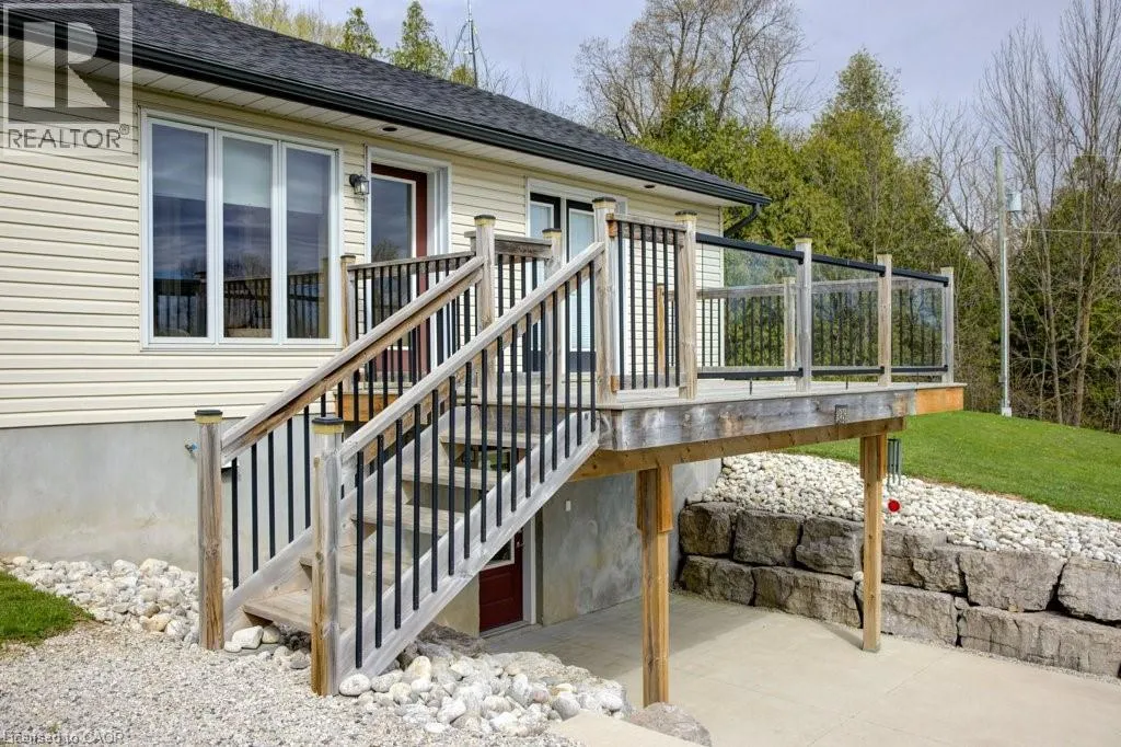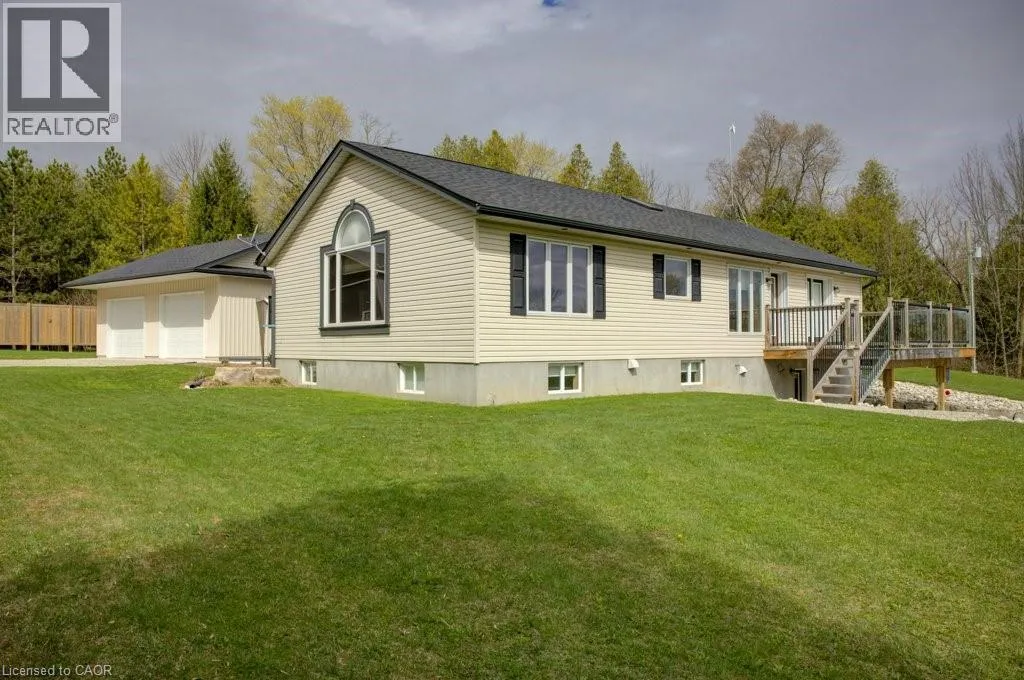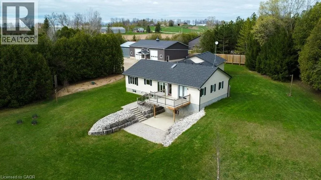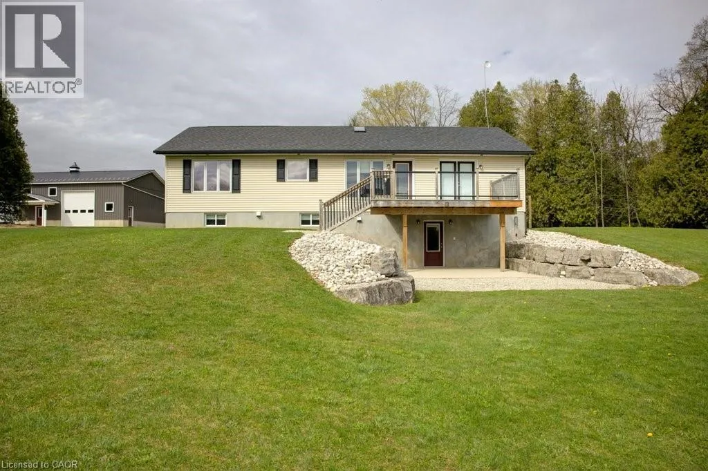 Grey Rd 4 East from Hanover through roundabout to Old Bridge Rd S, driveway on left. Serenity. Privacy. Nature. Welcome to your beautiful 13 acre country retreat with 642ft of frontage along the Saugeen River. Nestled away just off Hwy 4 and only 5 minutes East of Hanover, this quiet country property features a highly efficient 3 bedroom, 3 bathroom home with ICF construction and GeoThermal heating and cooling. Nicely updated inside and out, the home offers two bedrooms on the main floor as well as a third bedroom in the fully finished basement which also includes a handy walkout. Perfect for your small business, toys, tools, and hobbies, you'll love the large 3100sf shop with 36x60 space for vehicles, equipment, and storage, and another 32x32 heated workshop area. But the best part of all is the PROP-ER-TY. 13 acres of quiet country land including organic hay fields, a trickling stream, flowing river, scenic bush, and plenty of wildlife. Sit out on your covered porch with your hot morning coffee or on your private deck with your favourite evening drink and call this piece of tranquility home. Book your private showing today and be sure to make time to walk this gorgeous property. (id:27476)