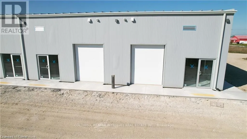 Cross Streets: 1st & 14th Ave. ** Directions: Heading north on Grey Rd. 10/10th Avenue, turn right onto 11th Avenue. Follow to 14th avenue & turn right. Turn left onto 1st Street. Destination is on the right. Modern 1,657 sq ft industrial unit available in Hanovers established flex industrial plaza. Zoned M1, this space is ideal for a variety of uses including light manufacturing, trades, retail, service businesses, wholesale, or even a fitness facility. The unit offers 14' to 19' clear height, steel frame construction, a durable concrete floor, and 600V, 3-phase electrical service (60 amps). It includes a private 8' x 10' overhead roll-up door and shared access to a 12' x 14' dock-level loading door perfect for streamlined shipping and receiving. An individual rooftop HVAC unit ensures year-round climate control and energy efficiency. The site features a large yard built to accommodate 73-ft trucks and includes 71 shared parking spaces for staff and customers. Located on 1st Street, a key corridor in Hanovers industrial area, the property offers excellent connectivity to Grey Roads #4 and #10, Highway 109, and quick access to the GTA, Owen Sound, and Kitchener. Hanover is part of Ontario's Grey-Bruce region, known for its affordable operating costs, reliable infrastructure, and skilled workforce. The town continues to grow as a hub for manufacturing, construction, automotive, and green energy sectors. This is an ideal location for growing businesses looking to serve both local and regional markets from a modern, flexible space in a business-friendly environment. Taxes and condo fees not yet assessed. Other unit sizes and configurations also available. The property is currently undergoing the condominium registration process, allowing for individual unit ownership within a professionally managed industrial complex. Exterior paving and landscaping are scheduled for completion by the end of June, providing a finished and polished appearance to the site. (id:27476)