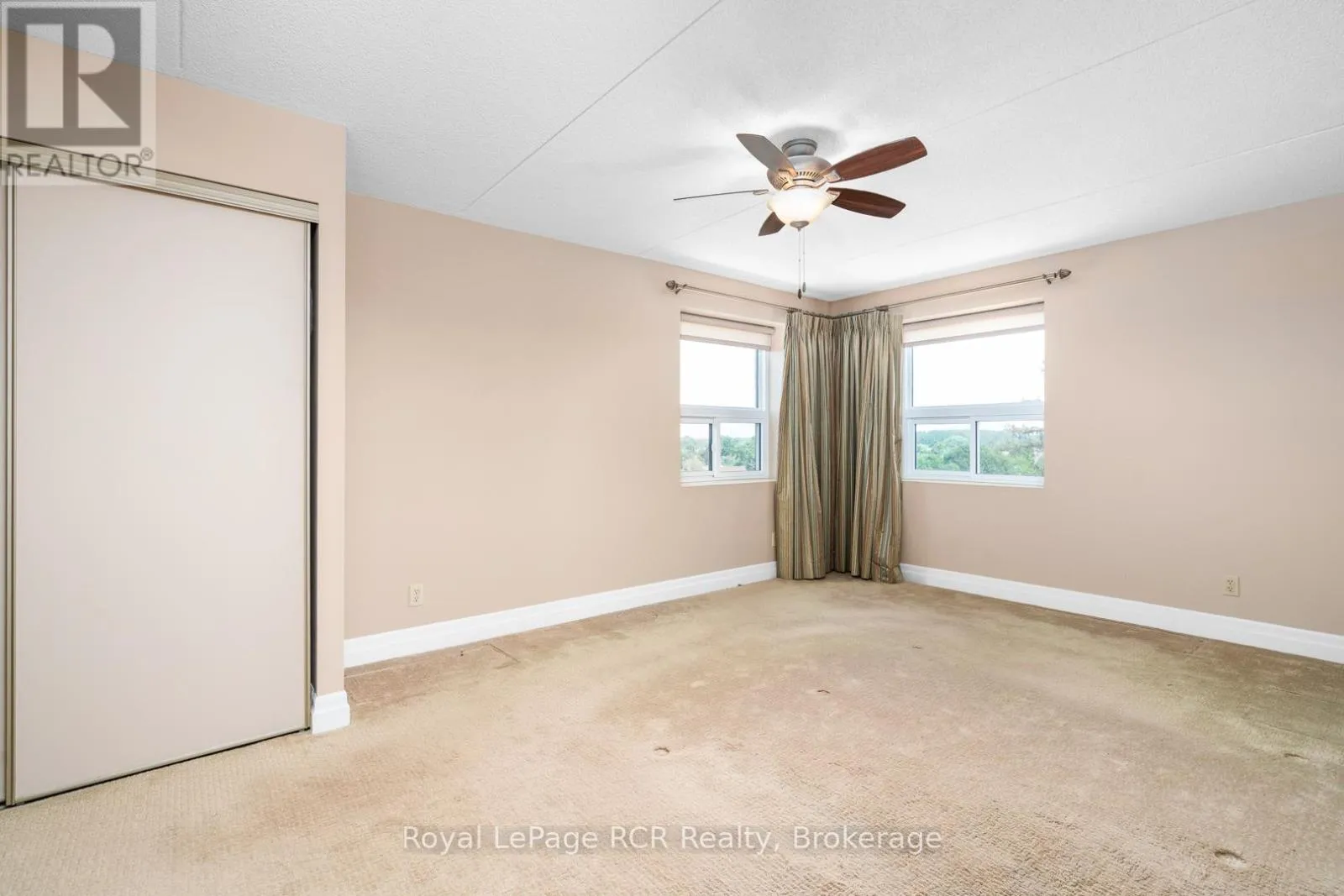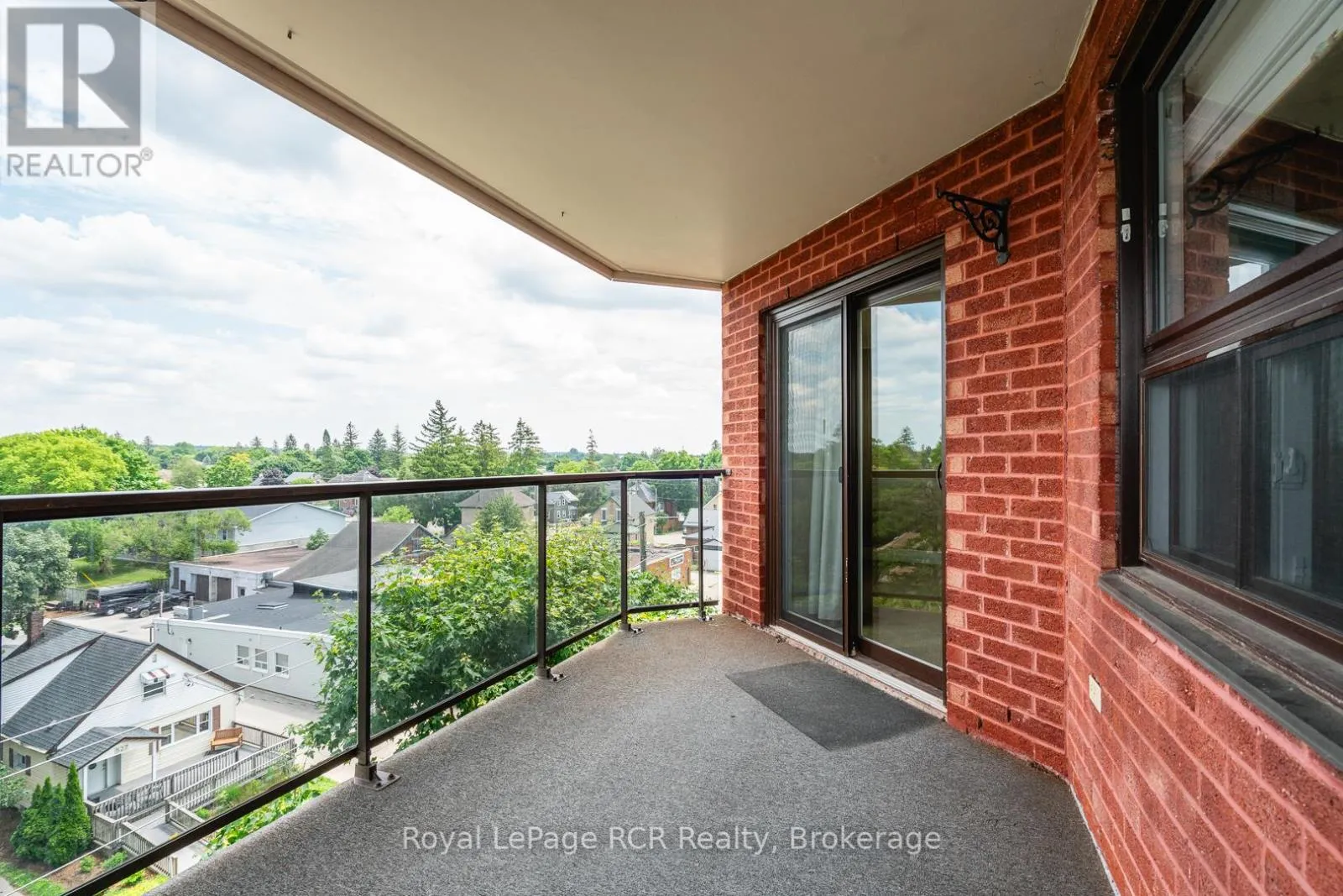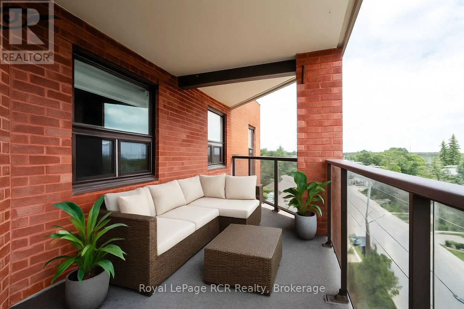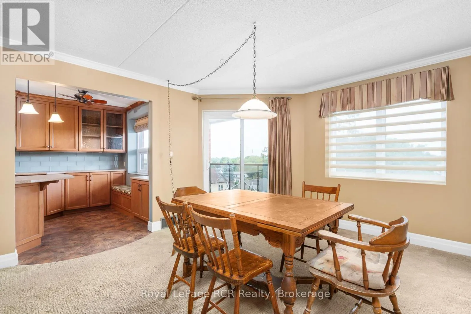 Cross Streets: 11th street. ** Directions: From main street Hanover, turn north on 11th ave to 536. Enjoy views across the town of Hanover from this bright and spacious top-floor condo featuring 2 bedrooms and 2 bathrooms. Thoughtfully updated, the kitchen boasts custom cabinetry from Arbour Hill, including a charming window seat, glass accent doors, and a stylish backsplash. The open-concept living and dining area offers plenty of space for entertaining, with sliding doors leading to a private patio with glass railings. The primary bedroom includes a 4-piece ensuite, dual closets, and two windows. A second bedroom-ideal as a guest room or office is conveniently located near the guest bathroom with walk-in shower. Both bathrooms also feature cabinetry from Arbour Hill. Additional highlights include a utility room with washer, dryer, new water softener (2024), and water heater (2025), custom blinds from Burtons plus a full appliance package. The foyer features a coat closet, and there's an extra storage space located across the hallway and on the main floor. The well-maintained building offers a secure main floor entry and a shared common meeting room. One designated parking space is included. Condo fees are $403/month. (id:27476)