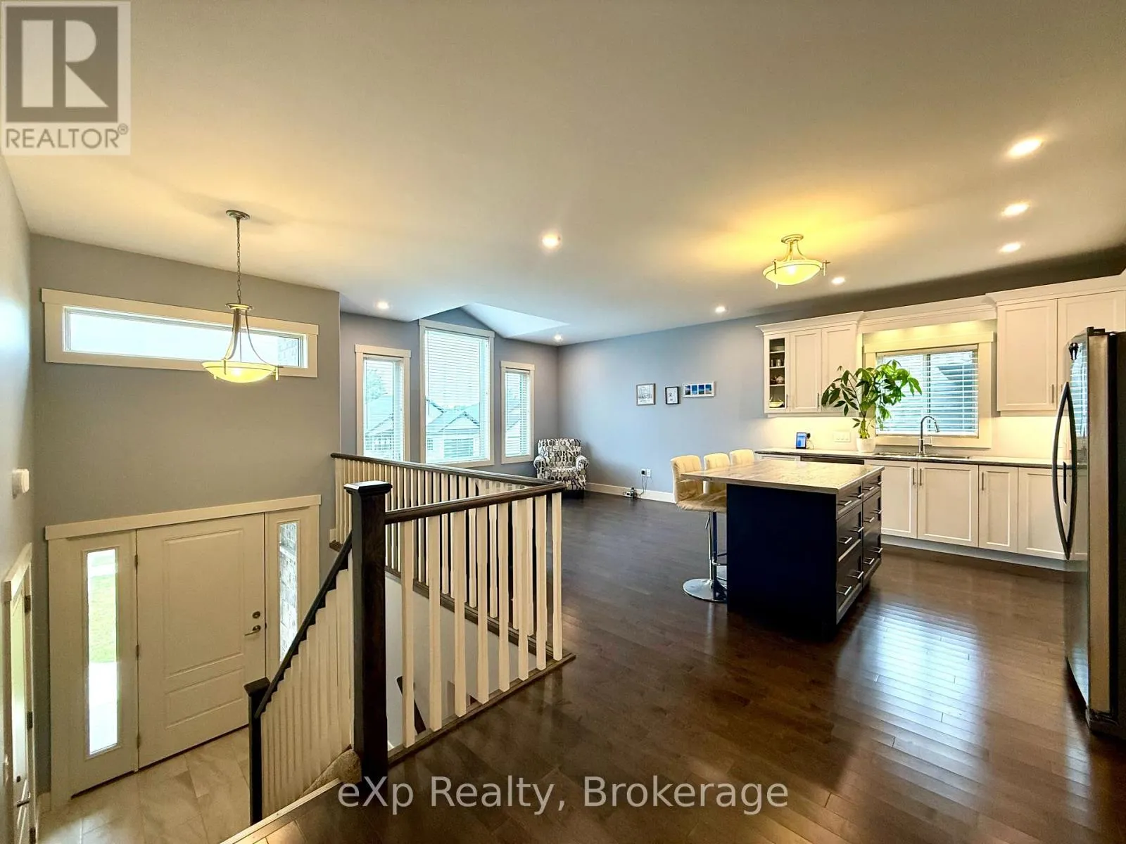 Cross Streets: 4th Street. ** Directions: From 10th Street in Hanover, turn south onto 18th Ave., west onto 4th Street and south onto 17th Avenue A. Property is on east side of street. Welcome to this well-maintained raised bungalow, ideally situated on a sought-after residential street in Hanover. Offering five bedrooms and three full bathrooms, this four-year-old home provides ample space for families of all sizes. The main level features a bright, open-concept layout with hardwood floors throughout the living room, dining area, and kitchen. Patio doors lead from the dining space to the deck - perfect for entertaining or relaxing outdoors. The primary suite includes a walk-in closet and 3-piece ensuite, while two additional bedrooms and another bath complete this floor. The fully finished lower level offers two more bedrooms, a third full bathroom, and a generous family room with plenty of natural light. A separate staircase from the garage provides convenient access to the basement. Additional highlights include an attached garage, concrete driveway, and a fully fenced backyard - ready for kids, pets, or private enjoyment. This move-in ready home is a fantastic opportunity in a desirable neighbourhood. (id:27476)