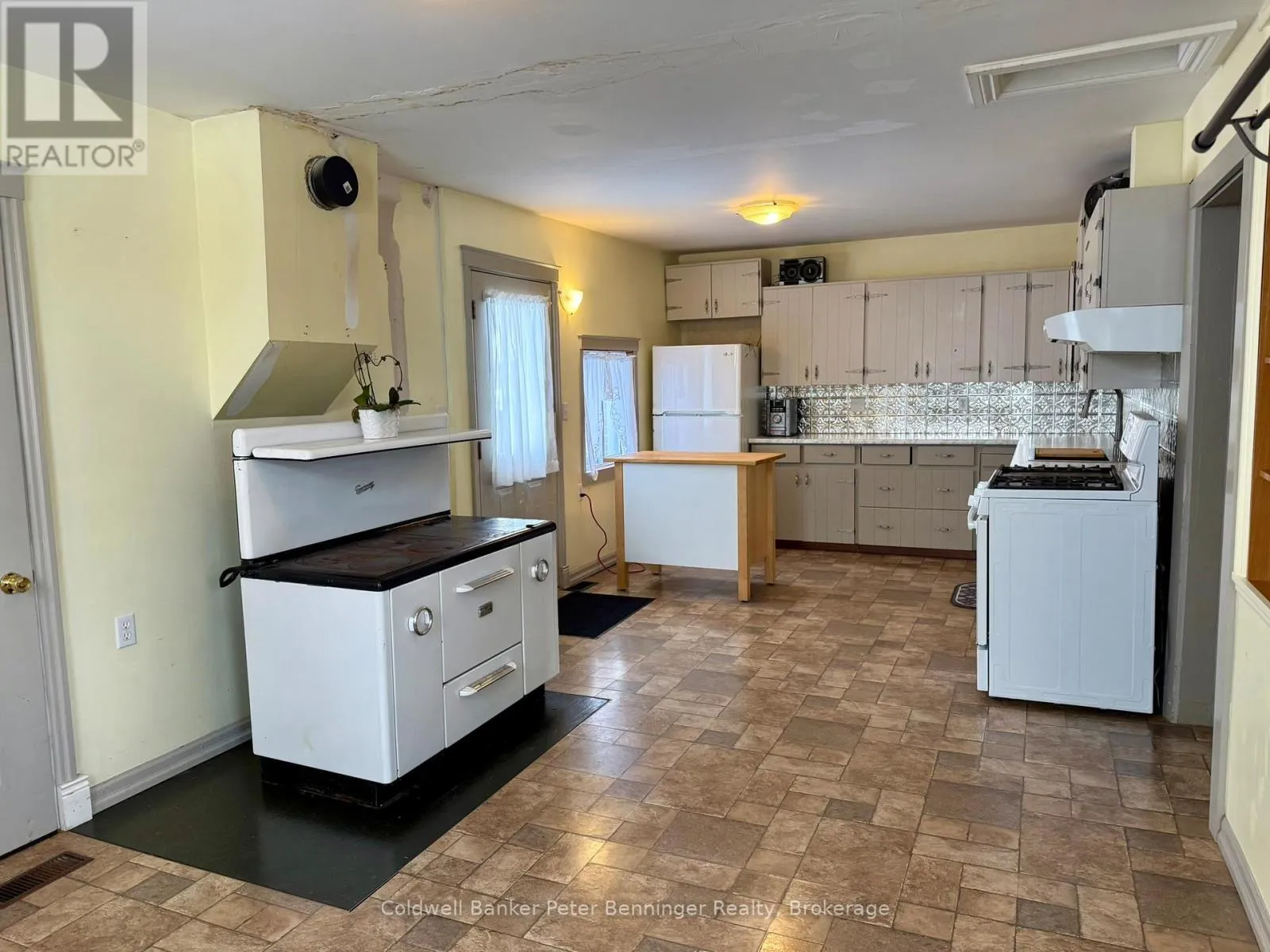 11th St/11th Ave This 1.5 storey home offers 3 bedrooms, and a 4pc bathroom on the upper level. Main level has a large eat in kitchen, spacious formal dining room and formal living room. Bonus, the rear section of the home that measures 10'6" X 10'5" irreg. with a 2pc bath is zoned commercial. This allows for an in house business or rent it out to generate additional income. Home has a full basement which houses the laundry and 1pc bath. This area offers plenty of storage space. Forced air gas heat and central vac. Cook stove in kitchen is for decorative use only. The exposed brick wall in the living room and dining room, add character, along with the beautiful wood trim and floors. (id:27476)