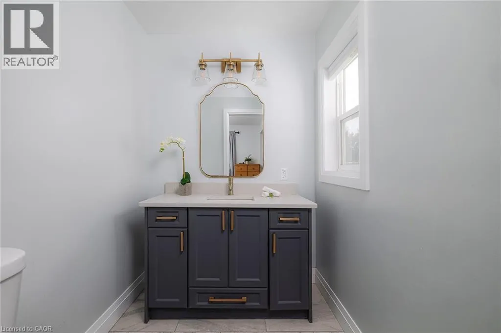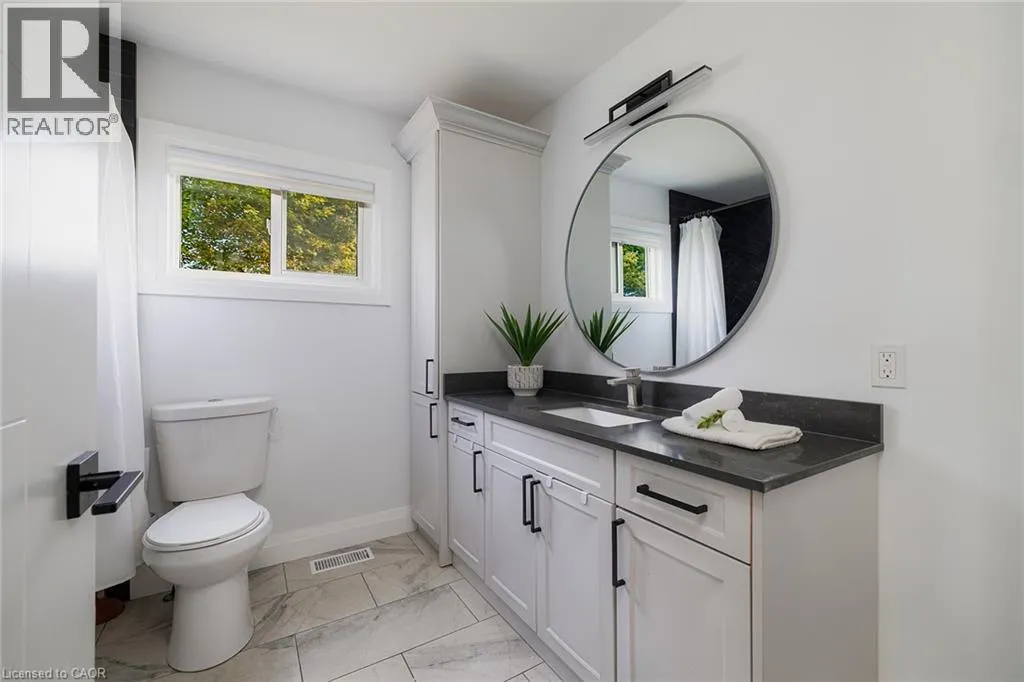 Grey Rd 4 / Grey Rd 28 Nestled on a generous.35 acre lot, this beautifully updated bungalow blends country-like surroundings with unbeatable convenience. Located on the outskirts yet within walking distance to walmart, restaurants and just a 5 minute drive to more major amenities, it offers the best of both worlds. Inside, a bright and airy layout welcomes you with vaulted ceilings in the living room and a striking floor-to-ceiling tiled gas fireplace as the centerpiece. Neutral tones flow seamlessly throughout, creating a calm and inviting atmosphere. The home features 2 bedrooms and 2 bathrooms, thoughtfully designed with a lovely sense of flow. Step outside to enjoy a large wooden deck, perfect for entertaining, overlooking a fully fenced yard that backs onto a tranquil farmer's field - a rare backdrop offering both privacy and charm. Enjoy ample parking for 8+ cars for all your family, friends, and recreational toys. With stylish updates, modern comfort, and a location that places everything you need within easy reach, this bungalow is an exceptional find for those seeking both serenity and convenience. (id:27476)