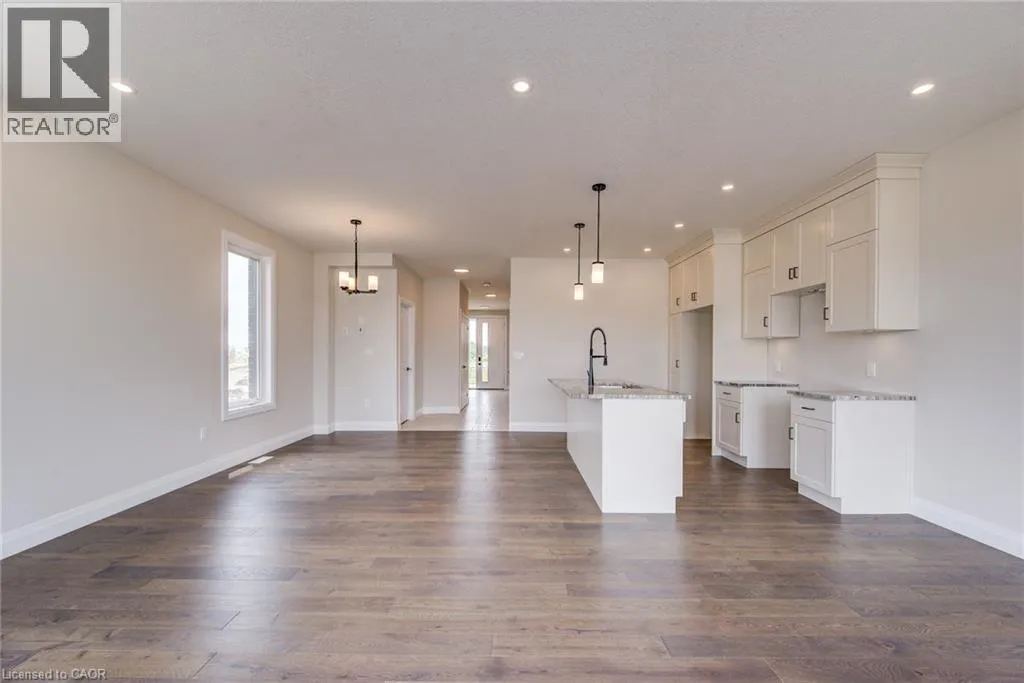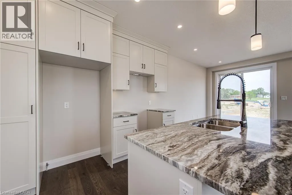 From Elora St S, turn onto Anne St W, left on John St, right on Bean St and then left onto Thackery. Why settle for an ordinary semi when you can own one that feels more like a detached home? The Woodgate C is a stunning, brand new 2 storey semi-detached design only connected at the garage wall offering enhanced privacy, better sound separation, and unbeatable curb appeal. Move in ready and packed with upgrades, this modern home features a bold exterior blend of brick, stone, wood, and vinyl, large windows, a stylish garage door, and a covered front porch that invites you in. Step inside to main floor 9' ceilings, warm hardwood flooring, contemporary lighting, and a neutral colour palette that sets the stage for your personal style. The open concept main level is perfect for entertaining, with a sleek kitchen showcasing stone countertops, clean lined cabinetry, and a large island with breakfast bar seating. Upstairs, the spacious primary suite offers oversized windows, a walk-in closet, and a spa like ensuite with a tiled walk-in shower and glass enclosure. Two additional bedrooms and a full 4pc bath provide space for family or guests, while the upstairs laundry adds everyday convenience. The unspoiled basement includes a 3pc rough-in and egress window, giving you the flexibility to finish it as you like. Additional perks include: Oversized garage with man door and opener, saved driveway, fully sodded yard, soft close cabinetry, central air conditioning, Tarion Warranty and survey all included in the price. Visit the furnished Model Home at 122 Bean Street. (id:27476)