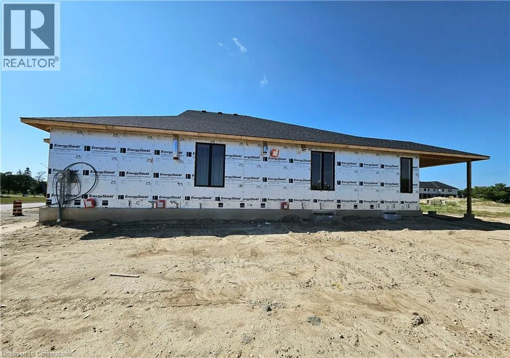 From Elora St S turn onto Anne St W, left onto John St, right onto Bean St, left onto Thackeray Way to sign on left Modern style meets small town simplicity in this brand new bungalow at Maitland Meadows. With clean lines, sharp accents and a sleek front entry, this 2 bedroom 2 bathroom semi-detached home offers an elevated take on main floor living. Step inside and enjoy 9' ceilings, oversized windows, and a smart 1,210 sq ft layout that delivers both style and functionality. The open concept kitchen, dining, and living space is perfect for effortless hosting or just kicking back in your own private retreat. The primary bedroom features a spacious walk-in closet and a stylish 3pc ensuite, while the second bedroom and full bath offer ideal flexibility for guests or a home office. Main floor laundry, high-quality finishes throughout, and a full basement ready for future expansion are just the beginning. Enjoy your morning coffee or a relaxing evening under the 12x14 covered deck, rain or shine. Set on a landscaped 30' lot in a quiet, walkable neighbourhood close to parks, trails, and everyday conveniences. Whether you're right sizing, downsizing, or just getting started this modern design is built to fit your life now and into the future. Currently under constructionâsecure your unit today and settle in with confidence! (id:27476)
