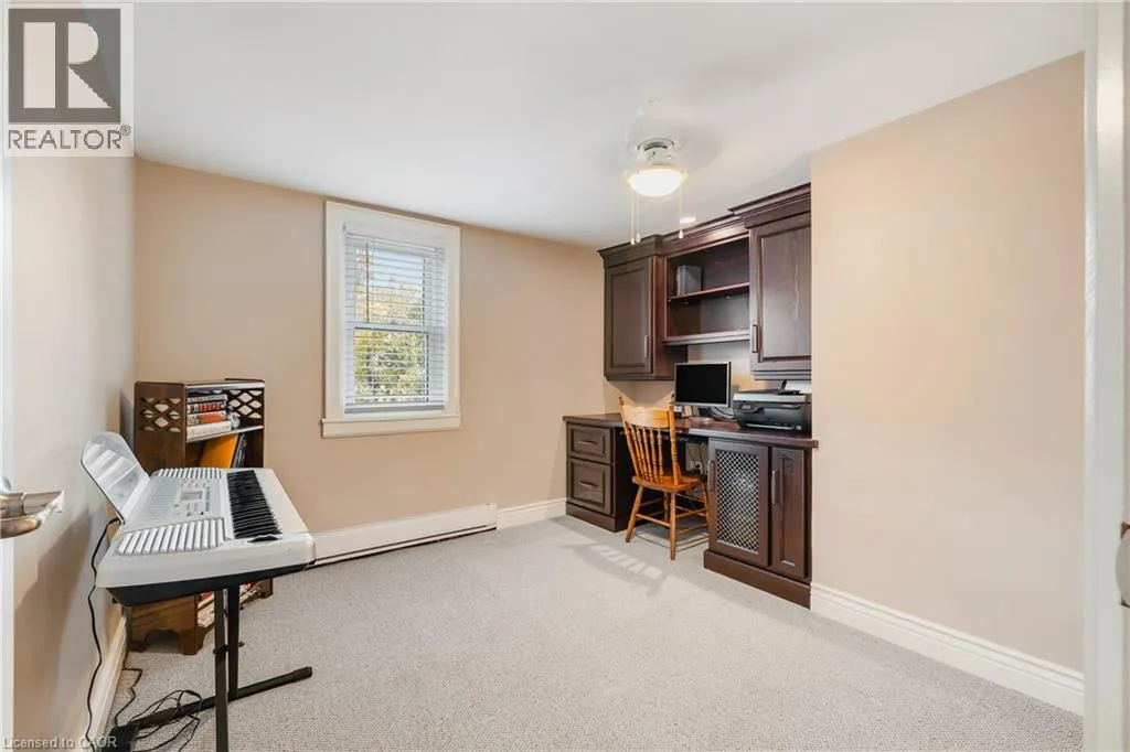 From Elora St S, turn east on Young St E, then left on George St S. The house is on the left-hand side. Welcome to 78 George Street South, a charming and well-maintained home in one of Harristonâs most convenient neighbourhoods. Steps to the arena, curling club, new sports pad, swimming pool, and a short walk to the elementary school. Set on a generous 82.5â x 132â lot with parking for up to five vehicles and a 1.5-car detached garage (18'2 x 22') offering storage or workshop potential. The large backyard features a 22'7 x 15'10 deck off the kitchen. Maintenance is easy with LeafFilter gutter protection installed on the house with a transferable lifetime warranty. Grounds are professionally maintained, and the roof was replaced in 2014. Inside, character meets thoughtful updates. The insulated kitchen was renovated in 2015 with custom cherry wood cabinetry and LG stainless-steel appliances including fridge with ice and water, stove, dishwasher, and microwave. The bright living room offers an oversized window and a gas fireplace (2022, serviced annually). Beyond is an enclosed front porch. The 4-piece bathroom was renovated in 2021 with custom cabinetry and a Bath Fitter tub surround. Upstairs are four bedrooms, one featuring a custom built-in desk. The dry basement and attic are insulated for efficiency. Recent updates include gas furnace and air conditioner (2022, serviced annually), electric water heater (2025), and Culligan water softener (serviced 2025). Inclusions: riding lawn mower, push mower, walk-behind snowblower, Samsung washer and dryer, window blinds, 48-inch LG wall-mounted TV, and Culligan water softener. Located in a quiet, walkable neighbourhood â a wonderful place to call home. (id:27476)
