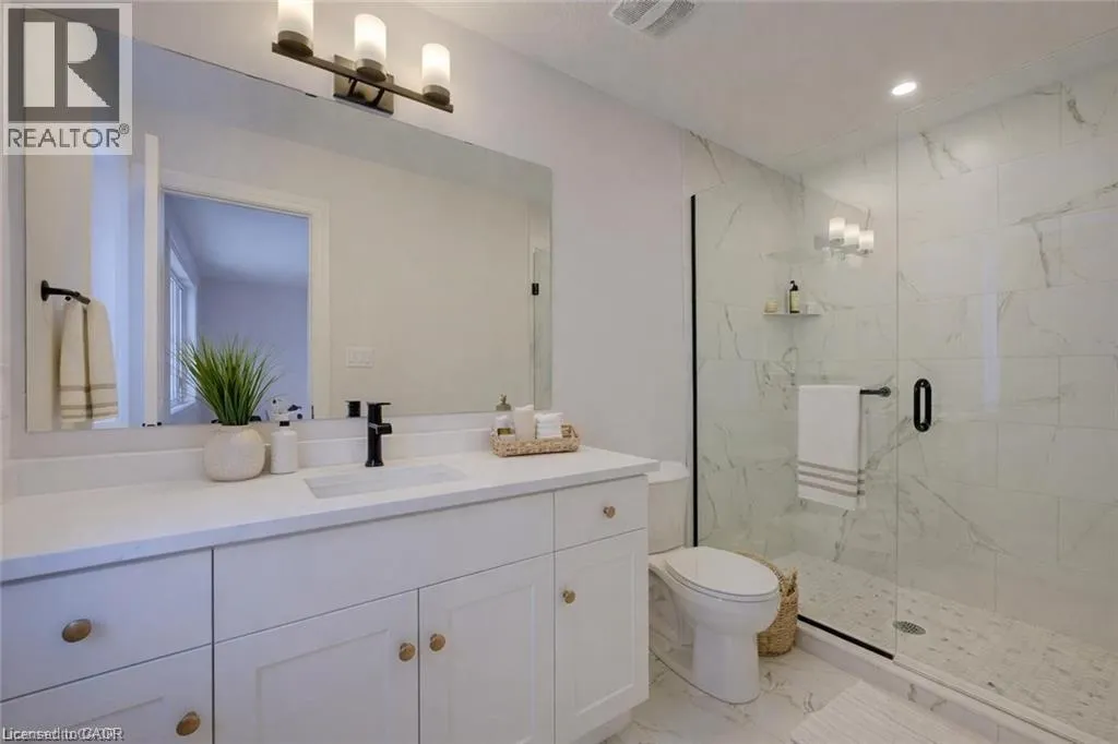 from Elora St S, turn onto Anne St W Step into easy living with this beautifully designed 1,799 sq ft interior unit, where modern farmhouse charm meets clean, contemporary finishes in true fashion. From the moment you arrive, the light exterior palette, welcoming front porch, and classic curb appeal set the tone for whats inside.The main level features 9' ceilings and a bright, functional layout starting with a generous foyer, powder room, and a flexible front room ideal for a home office, reading nook, or play space. The open concept kitchen, dining, and living area is filled with natural light and made for both everyday living and weekend entertaining. The kitchen is anchored by a quartz island with a breakfast bar overhang, perfect for quick bites and extra seating. Upstairs, the spacious primary suite includes a walk-in closet and sleek 3pc ensuite with beautiful time work and glass doors. Two additional bedrooms, a full family bath, and convenient second level laundry round out this floor with thoughtful design. The attached garage offers indoor access and extra storage, while the full basement is roughed in for a future 2-pc bath just waiting for your personal touch. Whether you're a first-time buyer, young family, or down sizer looking for low maintenance living without compromise, this home checks all the boxes. Ask about the full list of features or visit our fully furnished Model Home at 122 Bean Street and explore all your options at Maitland Meadows. Come Home To Calm in Harriston. (id:27476)