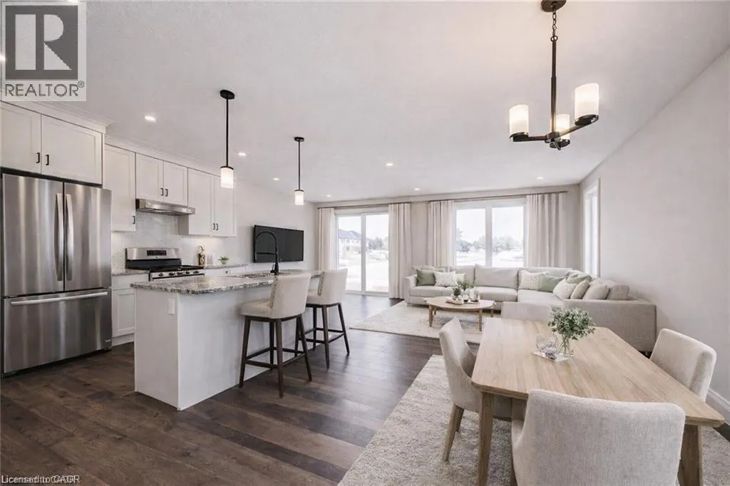 From Elora St S, turn onto Anne St W, left on John St, right on Bean St and then left onto Thackery. Welcome to Maitland Meadows, where modern design meets small town comfort. This brand new Woodgate model offers the perfect upgrade for young professionals or growing families who want more breathing room without the noise that usually comes with townhouse living. These homes are only connected at the garage wall, giving you the privacy and quiet you've been craving. Inside, you get that fresh, contemporary style everyone wants today. Bright, open spaces, thoughtful upgrades already included, and a full appliance package so move in day is truly turn key. Outside, you'll love the peaceful neighbourhood vibe: safe, quiet streets, friendly neighbours, and farmland sunsets you'll never get tired of. Commuting is easy with larger centres about an hour away, and you'll enjoy all the small town essentials - fibre optic internet, natural gas heat, and full municipal services. Quick closing is available so you can start your next chapter sooner. If you're looking for an affordable new build with style, space, and zero hassle, this is the one. Additional perks include: Oversized garage with man door and opener, paved driveway, fully sodded yard, soft close cabinetry, central air conditioning, Tarion Warranty and survey all included in the price. (id:27476)