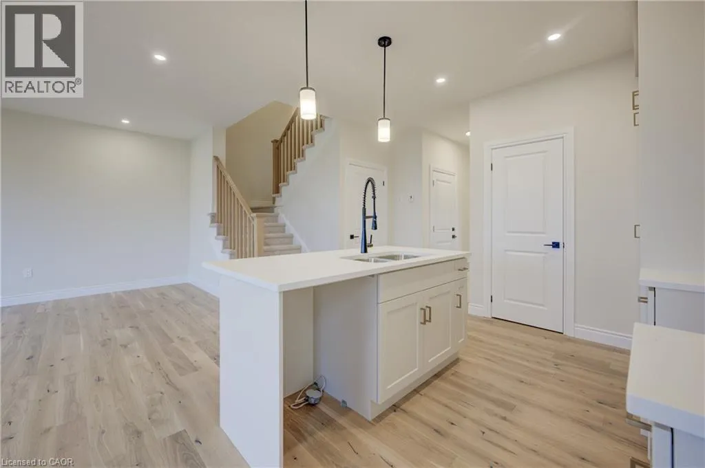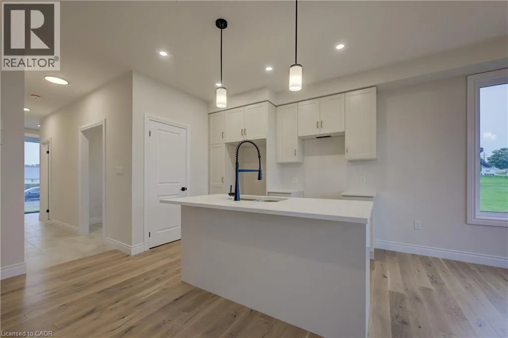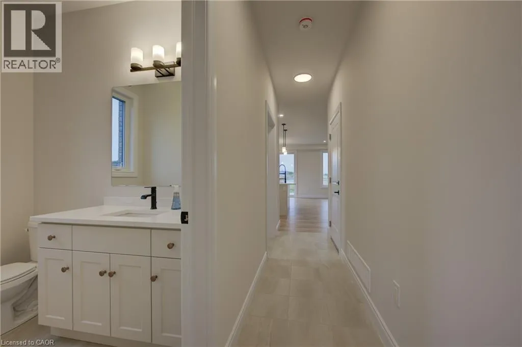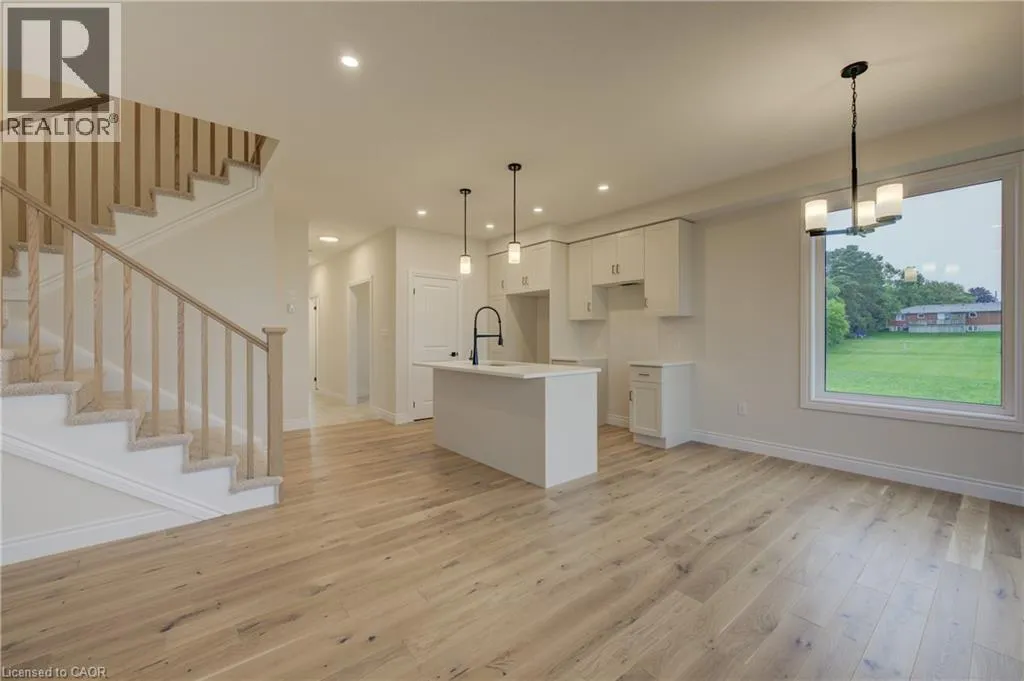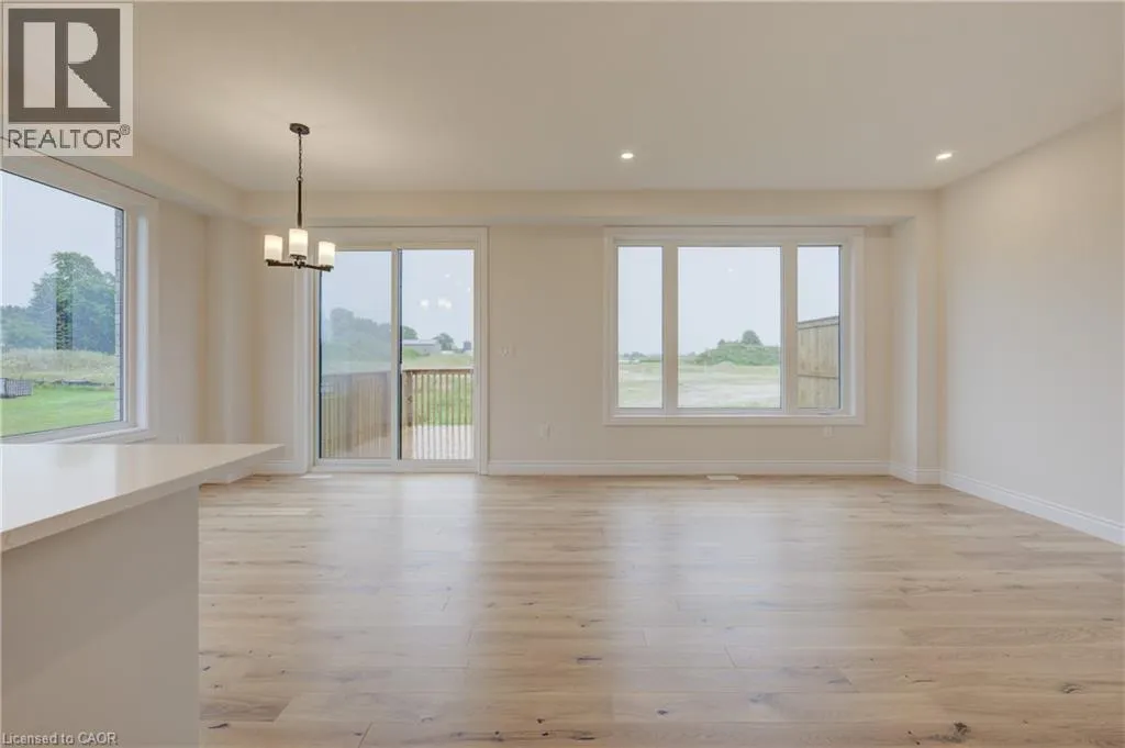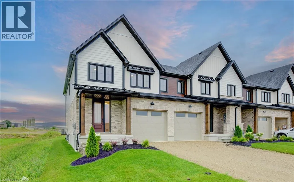 from Elora St S, turn onto Anne St W Welcome to The Town Collection at Maitland Meadows - The Homestead model is where modern farmhouse charm meets calm, connected living. This bright end unit offers 1,810 sq ft of thoughtfully designed space, filled with natural light and upscale finishes. With 9' ceilings and an open concept layout, the main floor feels airy and inviting - from the flexible front room (perfect for a home office or playroom) to the kitchen's quartz island that anchors the dining and living areas. Upstairs, the spacious primary suite features a walk-in closet and private ensuite, while two additional bedrooms and second floor laundry make family life effortless. Energy efficient construction helps keep costs low and comfort high, and the full basement offers room to grow. Complete with a deck and stylish finishes, this home is move-in ready, and if you're looking for that attached garage feature, it's here too! Designed for those who love the modern conveniences of new construction and the peaceful rhythm of small town life. For a full list of features and inclusions visit our Model Home located at 122 Bean Street in Harriston. (id:27476)