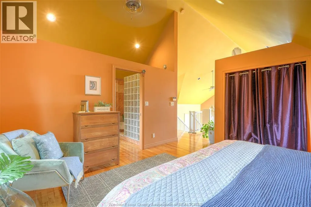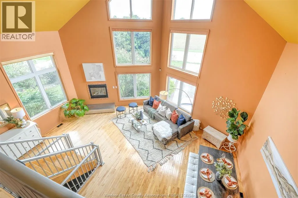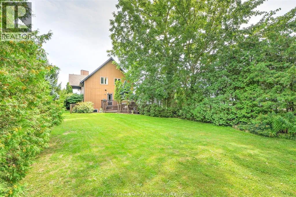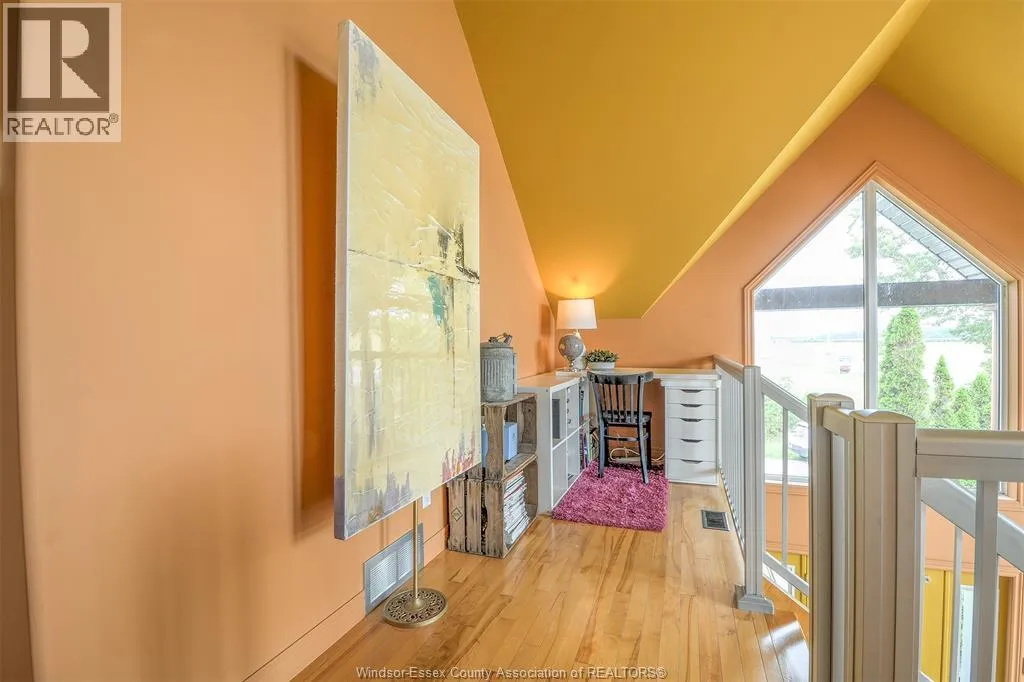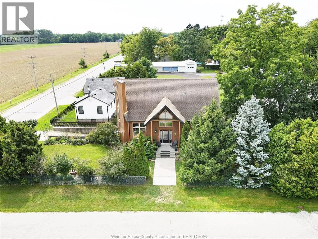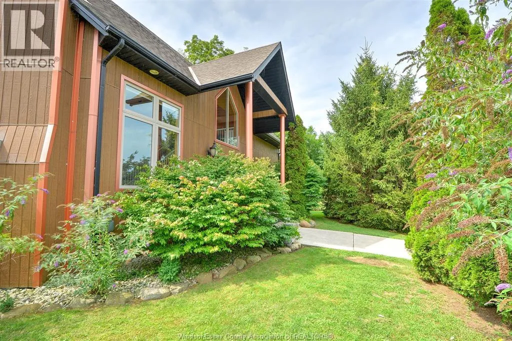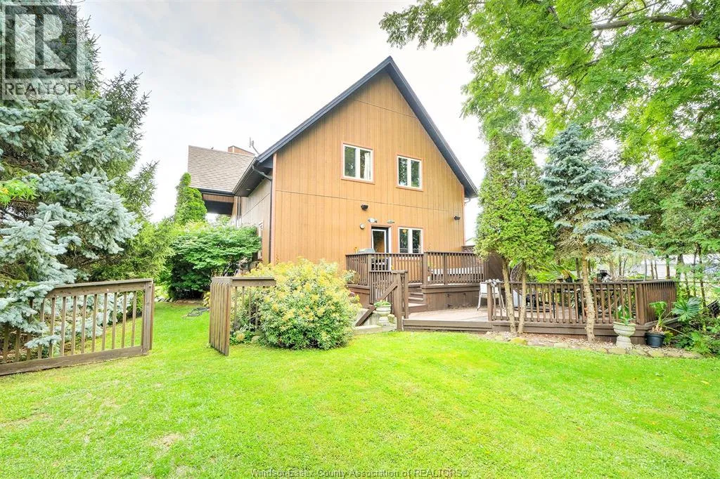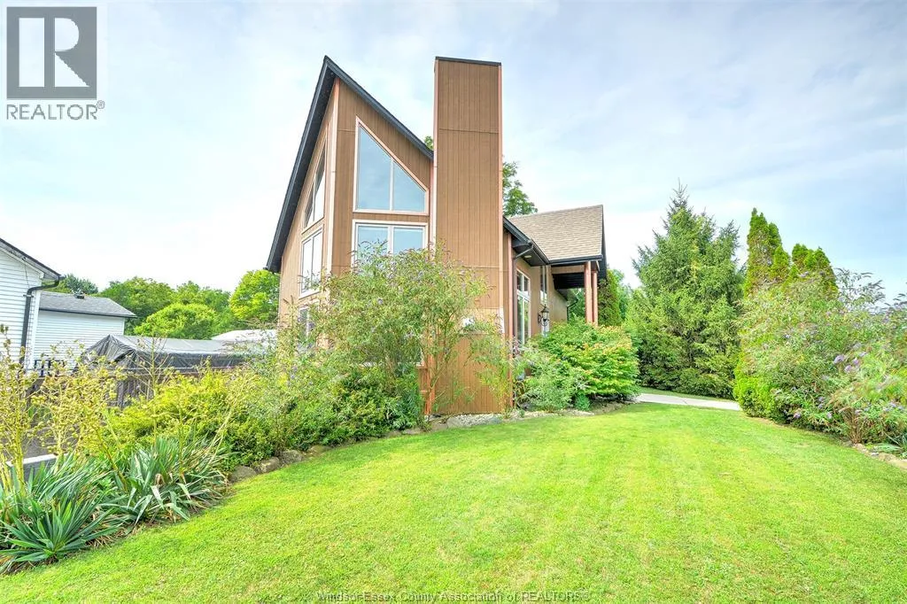 This impressive custom-built A-frame beauty is nestled in the charming town of Colchester, near Lake Erie beach and beautiful local vineyards. It features 2+1 bedrooms, 2 full bathrooms and a finished lower level with/ heated floors. As you enter, you will be greeted by soaring ceilings, an open-concept living room with a gas fireplace, a dining area, and a kitchen featuring stainless steel accents. Plenty of natural sunlight throughout. Main floor includes a bedroom that is currently used as an office and a 4-piece bathroom. A stunning open Tiger oak staircase leads to the upper floor, where you can relax in the den that overlooks the lower level. Elevate your senses with endless indoor and outdoor views from the floor-to-ceiling windows. The spacious primary bedroom features an en-suite with a walk-in shower. Lower level has heated floors, a 3rd bedroom, a family room, garage access, and a grade entrance that leads to a fenced backyard complete with a deck and a hot tub. Connected to Municipal sanitary sewer for your convenience. Come check it out! (id:27476)