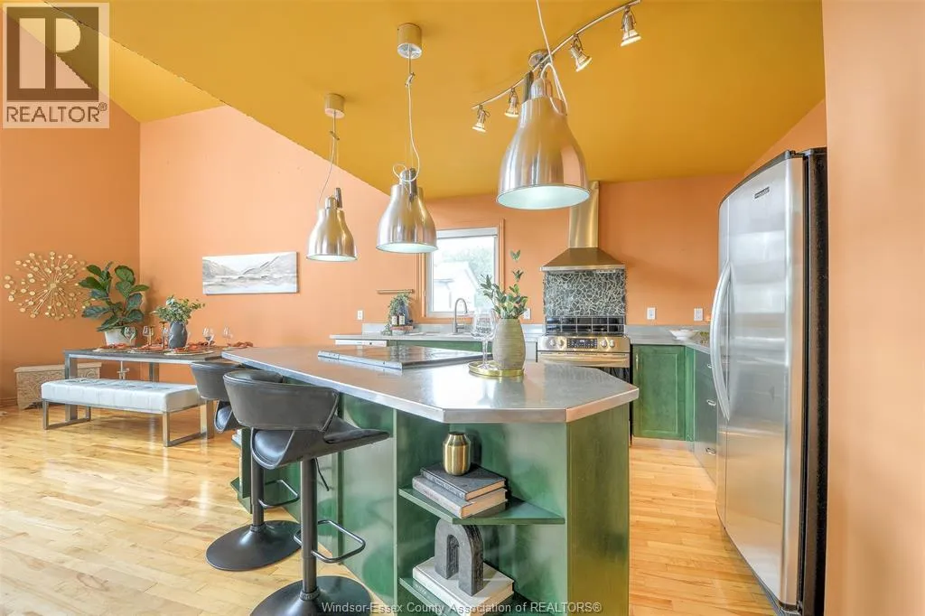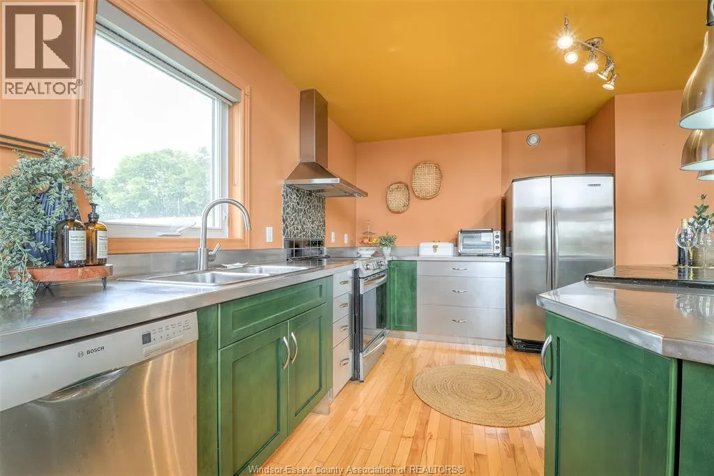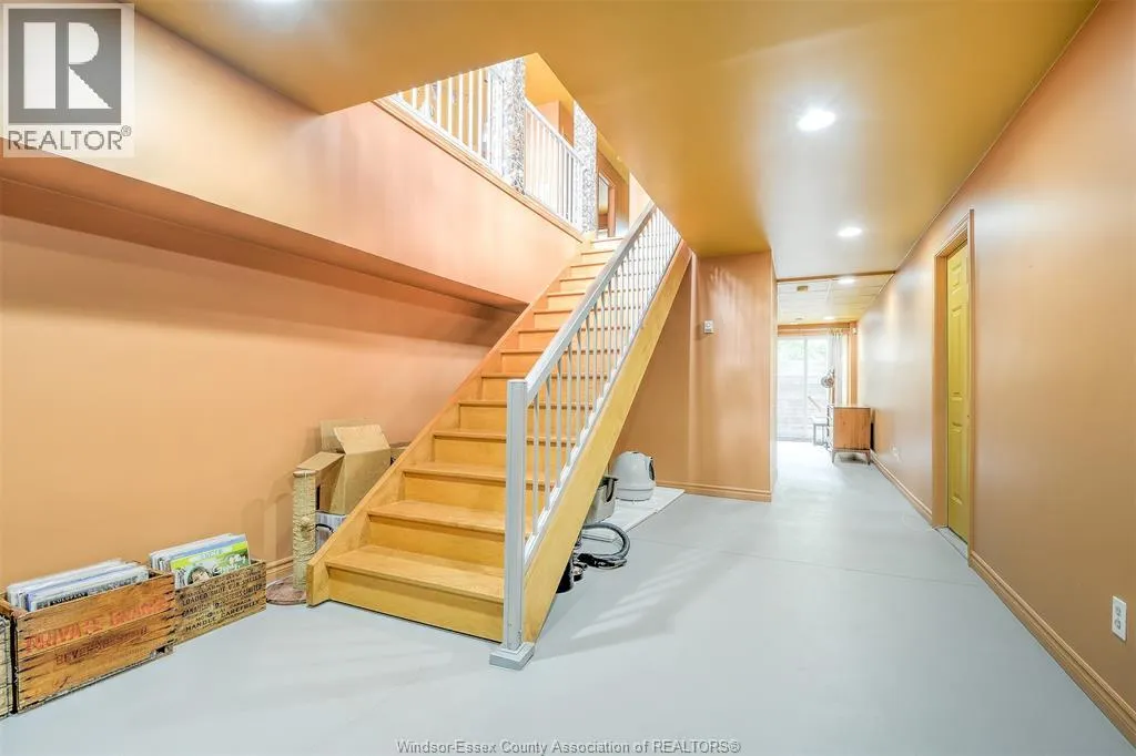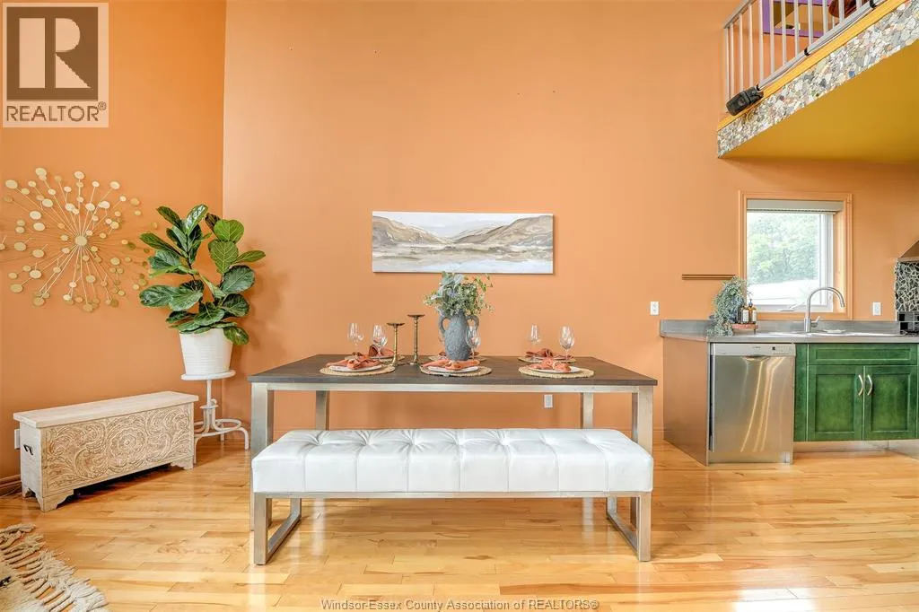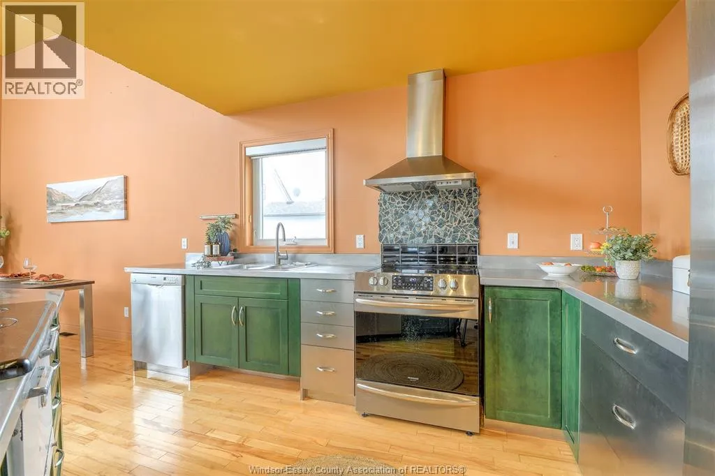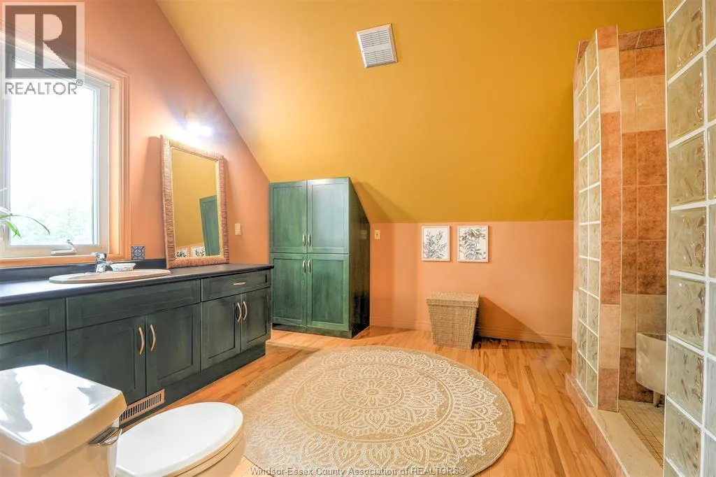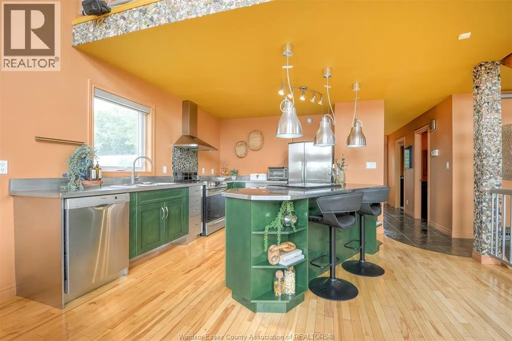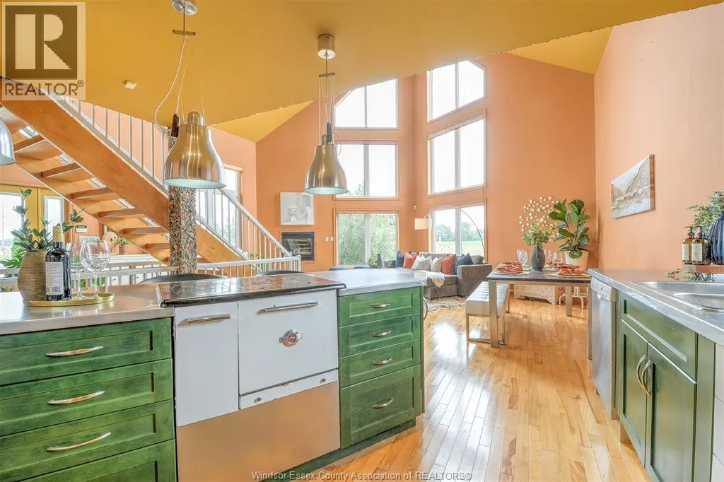 This impressive custom-built A-frame beauty is nestled in the charming town of Colchester, near Lake Erie beach and beautiful local vineyards. It features 2+1 bedrooms, 2 full bathrooms and a finished lower level with/ heated floors. As you enter, you will be greeted by soaring ceilings, an open-concept living room with a gas fireplace, a dining area, and a kitchen featuring stainless steel accents. Plenty of natural sunlight throughout. Main floor includes a bedroom that is currently used as an office and a 4-piece bathroom. A stunning open Tiger oak staircase leads to the upper floor, where you can relax in the den that overlooks the lower level. Elevate your senses with endless indoor and outdoor views from the floor-to-ceiling windows. The spacious primary bedroom features an en-suite with a walk-in shower. Lower level has heated floors, a 3rd bedroom, a family room, garage access, and a grade entrance that leads to a fenced backyard complete with a deck and a hot tub. Connected to Municipal sanitary sewer for your convenience. Come check it out! (id:27476)