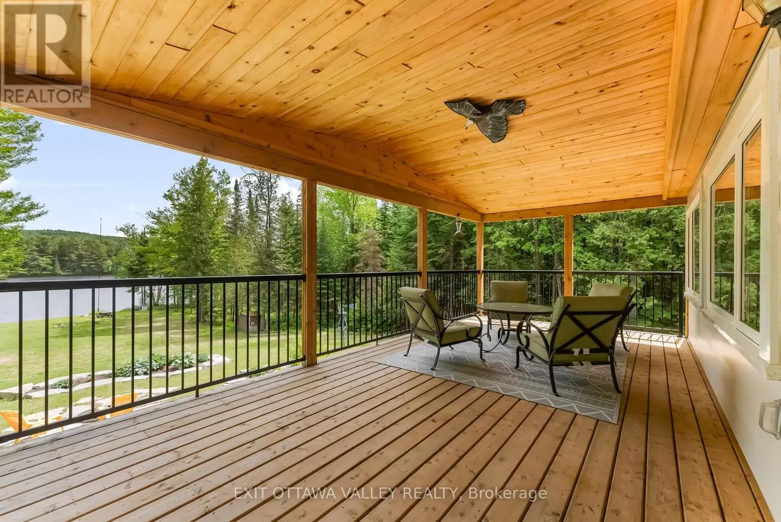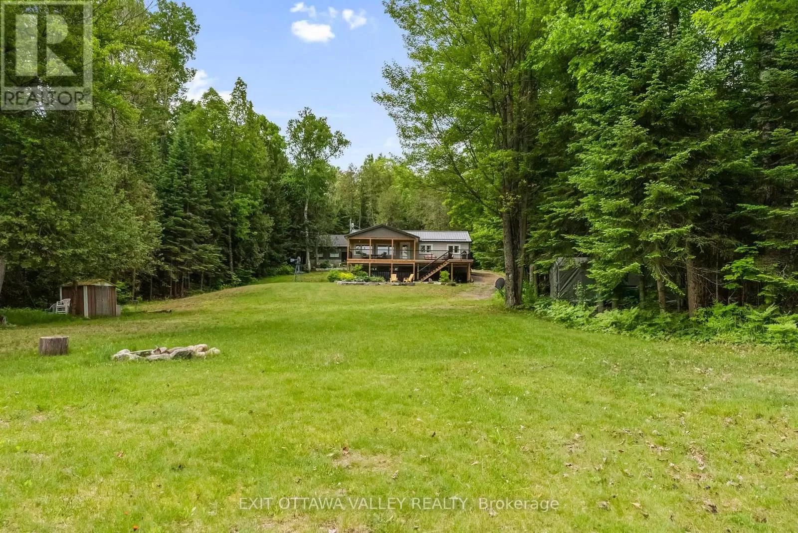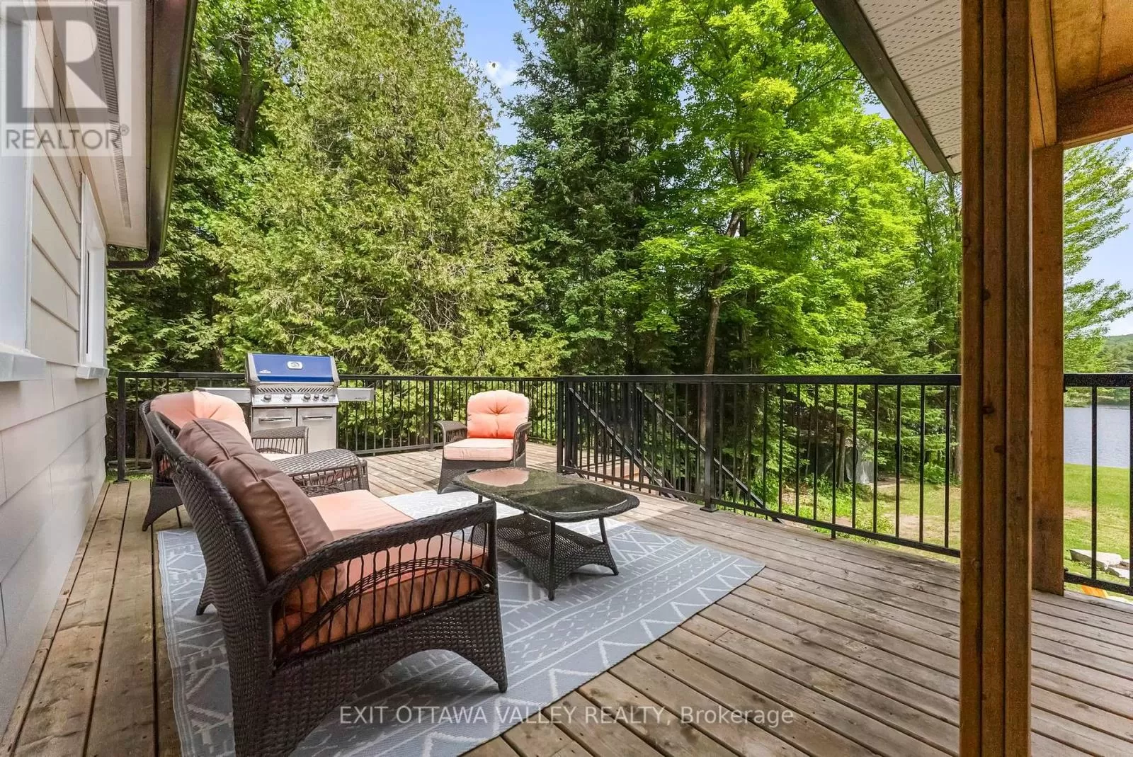 From Siberia rd take Kamaniskeg Lake rd. From Hwy 62 take Kamaniskeg Lake rd Welcome to your dream escape! 1478 Kamaniskeg Lake Rd is a beautifully renovated waterfront home that blends modern finishes with relaxed beach house charm! Nestled along the tranquil Madawaska River and just a short boat ride to the popular Kamaniskeg Lake, this property offers endless opportunities for boating, fishing, swimming, and exploring sandy beaches. Inside, you'll find a bright and airy open-concept main floor with engineered hardwood throughout. The space is perfect for entertaining or unwinding after a day on the water. The newly updated kitchen is finished with elegant stone countertops and equipped with stainless steel appliances, including a propane gas stove. The living area features walkout access to an elevated deck with a high-pitched roof, offering both sun and shade for relaxing or dining outdoors with a view. This home features three comfortable bedrooms and one stylish bathroom with a sleek glass stand-up shower. Step down from the deck into a beautifully landscaped yard, a cozy fire pit, and plenty of space for gathering under the stars. The finished basement adds even more living space, complete with a wood-burning stove, making it ideal for a rec room, guest space, or a quiet retreat during cooler evenings. For all your toys and gear, the double-car garage provides ample storage for motorized and off-road vehicles. Whether you're looking for a year-round residence or the perfect seasonal getaway, you don't want to miss out on this waterfront gem! (id:27476)