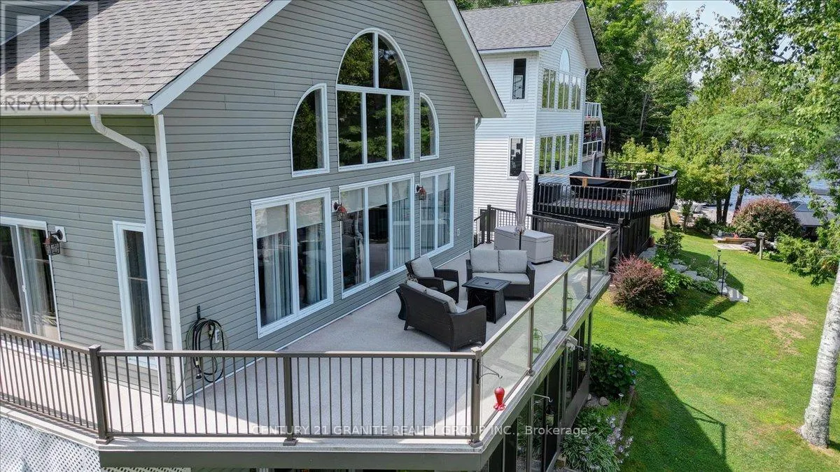 Cross Streets: South Baptiste Lake Rd & Fell Rd. ** Directions: From Bancroft. North on Hwy 62, left on Y Rd, left on South Baptiste Lake Rd. right on Fell Rd. Welcome to 183 Fell Road, a luxury waterfront residence on beautiful Baptiste Lake. Located just minutes from Bancroft, with direct water access to Elephant and Benoir Lakes, the property offers miles of scenic boating and access to Algonquin Park. This meticulously maintained four-bedroom, four-bathroom home, on a year round municipally maintained road, combines upscale comfort with timeless design. The open-concept main level features a spacious living, dining area with soaring cathedral ceilings, floor to ceiling windows that capture the incredible lake views, and direct access to the expansive outdoor deck area. The large kitchen is perfect for family gatherings, with beautiful stainless steel appliances and elegant finishes; off the kitchen is a mud/laundry room, a perfect place to drop everything cottage, family and pets. The main floor also features a beautiful private primary suite, complete with dual closets and a luxurious 4-piece ensuite bathroom. Upstairs, an open to below loft area serves as an office/den, while a large bedroom with 3-pc ensuite offers a quite and private retreat. A fully finished walk-out basement with 2 additional bedroom, 4 pc bath, rec room and utility room, offers additional living space and includes a full-width walk out sunroom, ideal for year-round enjoyment with stunning lake views. The property includes a 1-car garage with a cozy rear patio. This home, with quality furnishings and tasteful dcor throughout, is offered turn-key. The layout is ideal for hosting family and friends, with ample space and privacy. Excellent swimming, boating, and fishing are just steps from your door. Continually updated and upgraded over the years, this property is the perfect blend of comfort, function, and waterfront lifestyle. Whether you seek a permanent residence, executive retreat, or investment, this Baptiste Lake one of a kind luxurious property offers unmatched value and year-round appeal. (id:27476)