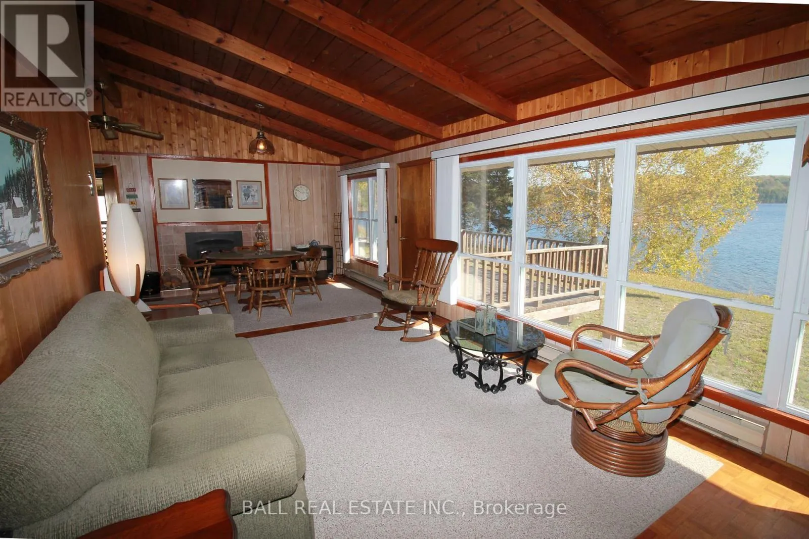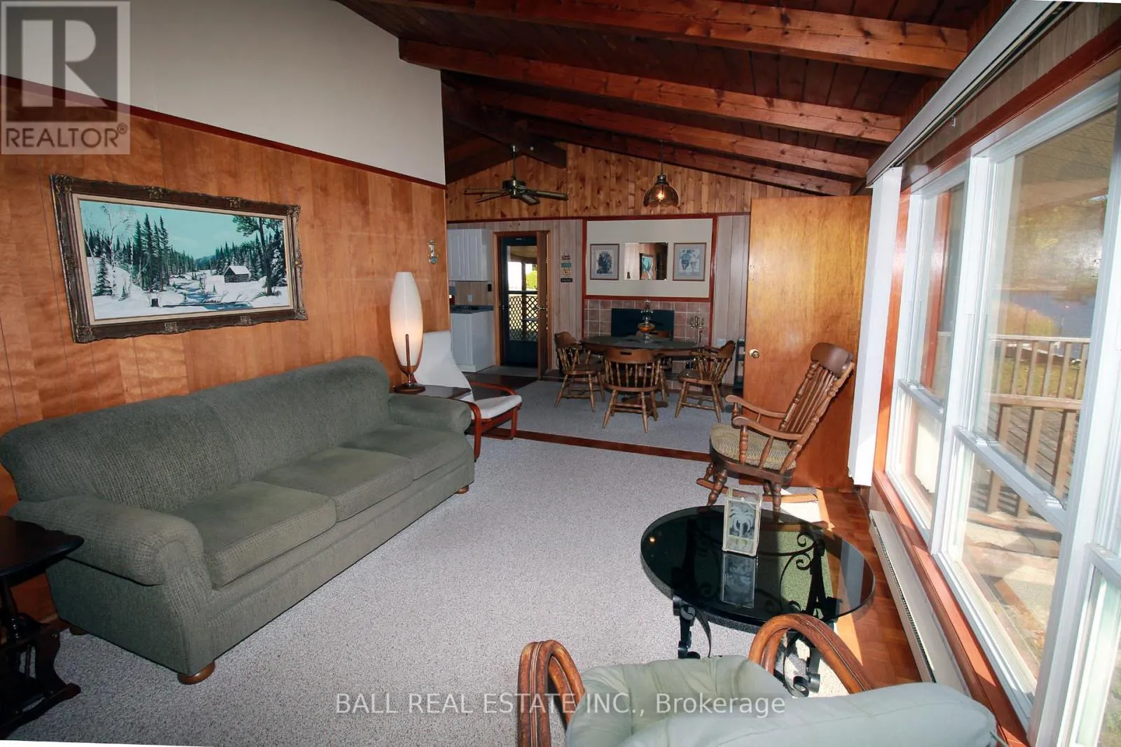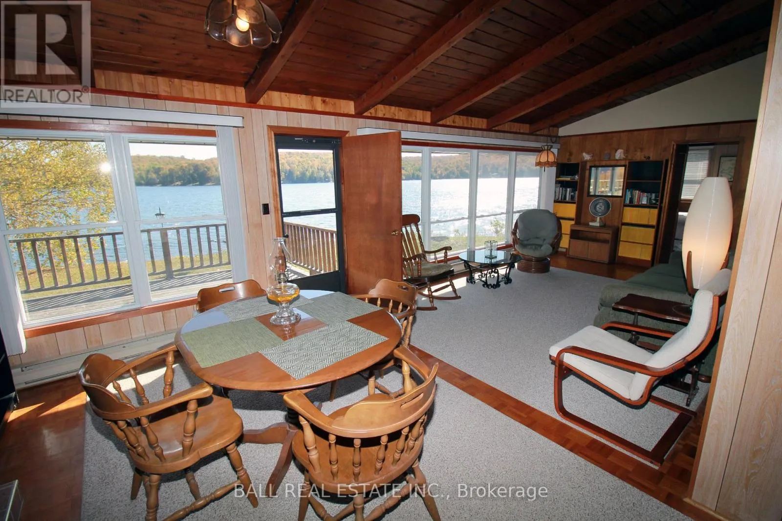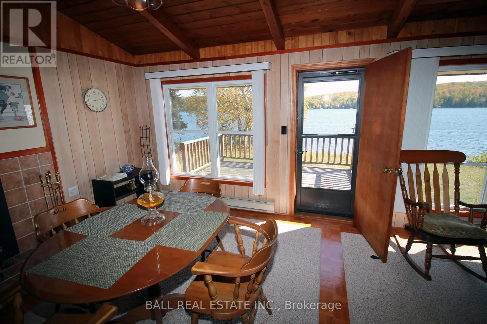 Cross Streets: South Baptiste Lake Road. ** Directions: South Baptiste Lake Rd to Russell Cres. Gem on Diamond Lake! This impressive, 166 Hectare lake in the heart of cottage country boasts crystal clear water, great boating and Trout and Bass fishing plus a boat launch and beach, gorgeous scenery and impressive rock cliffs for jumping and diving. On a level lot just steps from the paved municipal road you'll find this neat as a pin, turn-key, three bedroom cottage with many fine features including 3 bedrooms, a four piece bath, modern kitchen and open concept living room-dining area. Large, upgraded windows offer awesome views across the lake. Southern exposure makes it sunny all day at the 100 feet of clean sandy shoreline. Other fine features include hardwood floors, baseboard heat and a cozy wood fireplace, drilled well, carport and garden shed. Close to snowmobile/ATV trails and just 20 minutes to Bancroft for shopping and services. 40 minutes to Haliburton Village and 2 1/2 hours to the GTA. (id:27476)