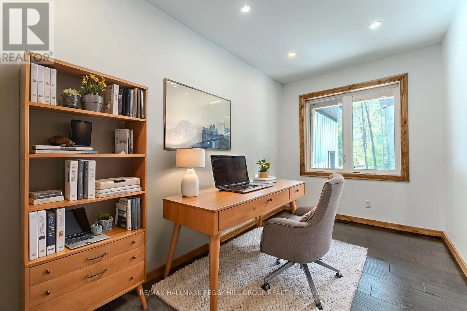 Cross Streets: ON-62 N/Buck Hill Rd. ** Directions: South Baptiste Lake Rd/ON-62 N/Buck Hill Rd. SHOWSTOPPING 2022-BUILT BUNGALOW ON A PRIVATE 1-ACRE LOT WITH A GARAGE THAT IMPRESSES! Set on a private one-acre property surrounded by nature, this remarkable bungalow, constructed in 2022, delivers modern design and quality craftsmanship in a peaceful setting. The striking exterior features stone and siding, peaked rooflines, black-framed windows, soffit lighting, and a large covered front porch finished with a stamped concrete pattern. A true highlight for hobbyists and enthusiasts, the triple-car garage spans over 1,500 sq ft and is heated, insulated, and drywalled, with 12-ft ceilings, LED strip lighting, three 220V welder plugs, 10-ft x 10-ft modern doors, and LiftMaster Wi-Fi openers. Outdoor living continues with a 600 sq ft deck designed for entertaining, complete with a seven-person hot tub, privacy panels, partial fencing, a shed, and a chicken coop. The spacious interior features 9-foot ceilings, hardwood flooring throughout, pot lights, and vaulted ceilings in the great room, which is filled with natural light by floor-to-ceiling windows. The kitchen showcases quartz countertops, an island, a tile backsplash, and newer stainless steel appliances. The primary bedroom offers a private ensuite with a soaker tub, walk-in shower, and dual-sink vanity, while a second full bath and powder room with laundry add functionality. The unfinished basement includes a separate entrance from the garage and a partially completed 3-piece bath, providing an opportunity for future living space. With its close proximity to restaurants, grocery stores, schools, medical services, and parks, and just under ten minutes from downtown Bancroft, this beautiful #HomeToStay combines privacy, modern features, and everyday convenience in one impressive package. (id:27476)
