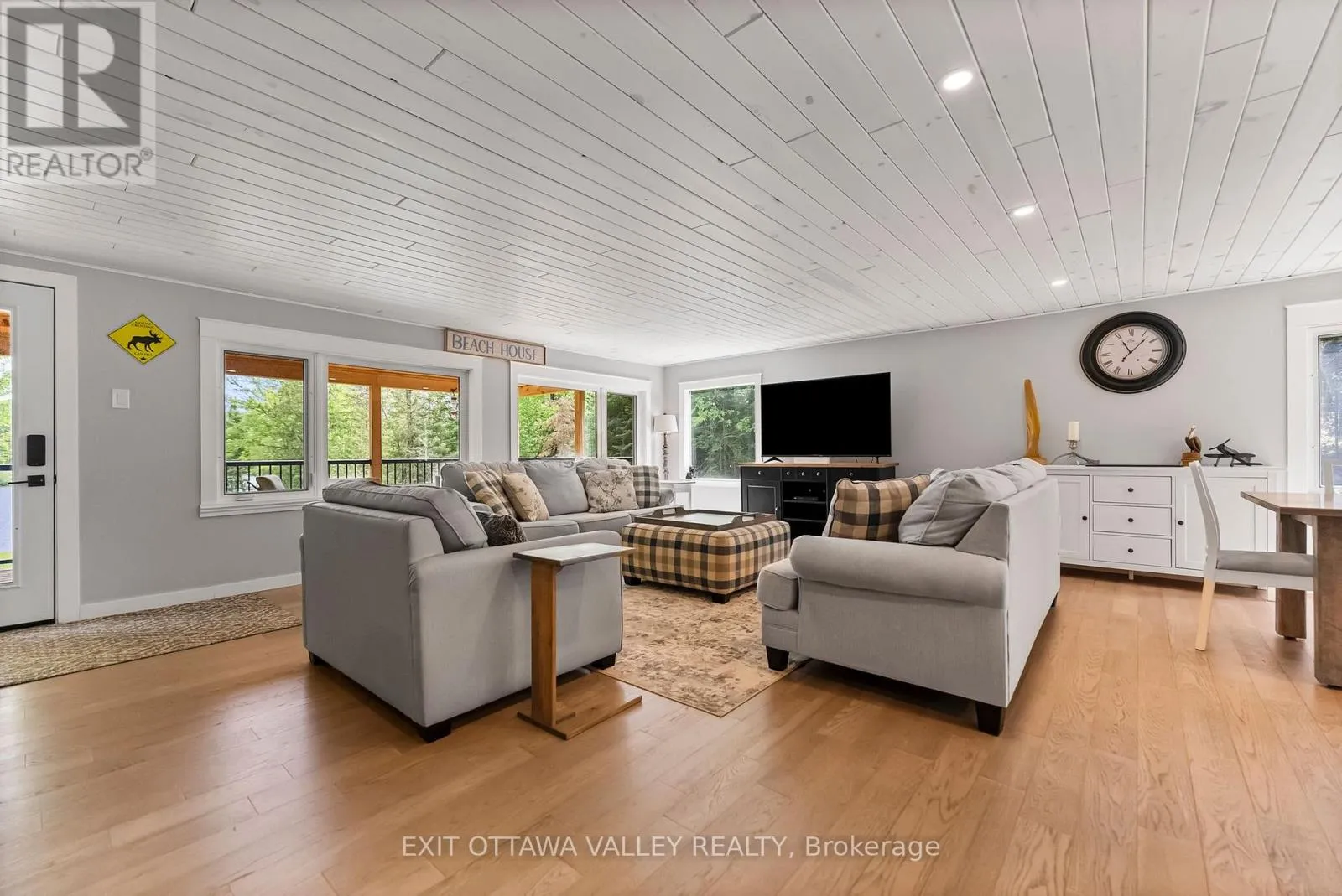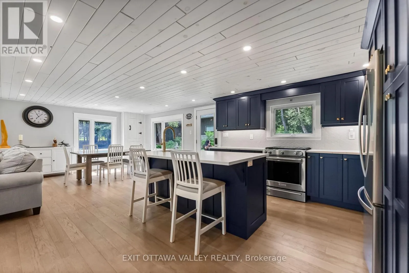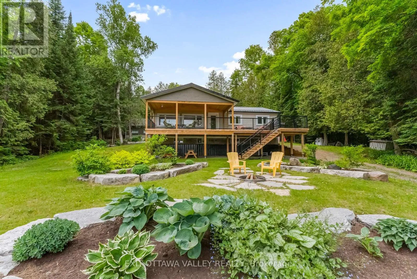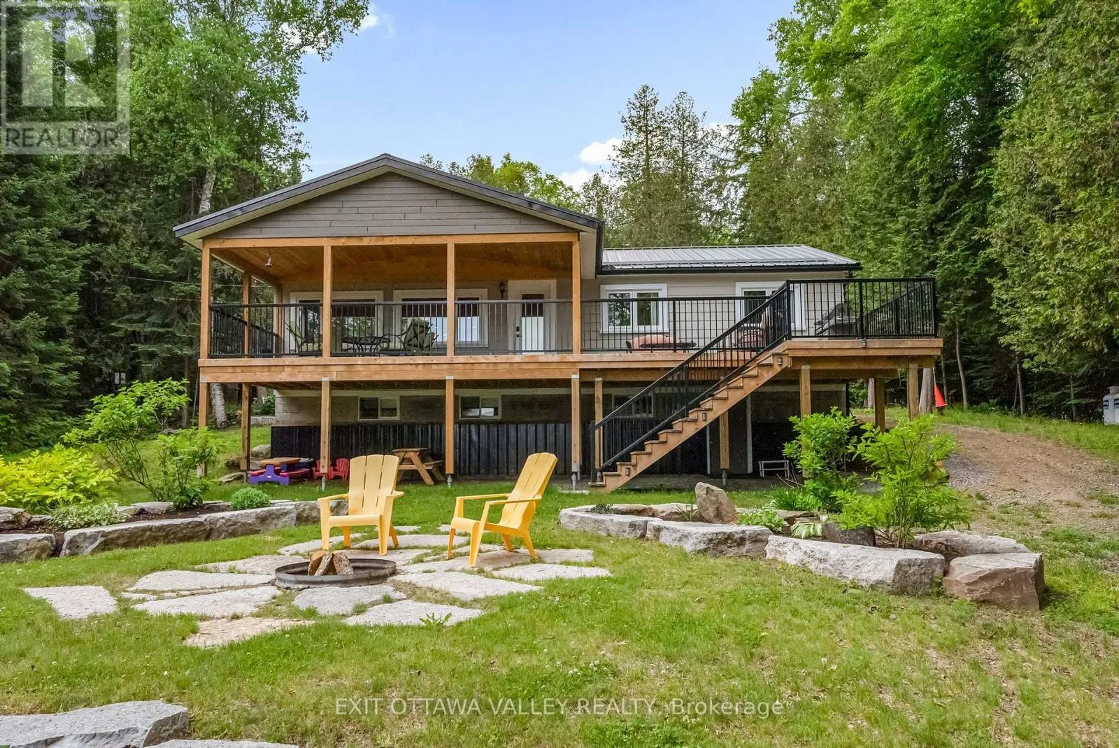 Cross Streets: Siberia And Kamaniskeg. ** Directions: Siberia to Kamaniskeg. Welcome to your dream escape! 1478 Kamaniskeg Lake Rd is a beautifully renovated waterfront home that blends modern finishes with relaxed beach house charm! Nestled along the tranquil Madawaska River and just a short boat ride to the popular Kamaniskeg Lake, this property offers endless opportunities for boating, fishing, swimming, and exploring sandy beaches. Inside, you'll find a bright and airy open-concept main floor with engineered hardwood throughout. The space is perfect for entertaining or unwinding after a day on the water. The newly updated kitchen is finished with elegant stone countertops and equipped with stainless steel appliances, including a propane gas stove. The living area features walkout access to an elevated deck with a high-pitched roof, perfect for relaxing or entertaining while taking in the peaceful surroundings This home features three comfortable bedrooms and one stylish bathroom with a sleek glass stand-up shower. Step down from the deck into a beautifully landscaped yard, a cozy fire pit, and plenty of space for gathering under the stars. The finished basement adds even more living space, complete with a wood-burning stove, making it ideal for a rec room, guest space, or a quiet retreat during cooler evenings. For all your toys and gear, the double-car garage provides ample storage for motorized and off-road vehicles. Whether you're looking for a year-round residence or the perfect seasonal getaway, you don't want to miss out on this waterfront gem! Located just 20 minutes from Barry's Bay, offering convenient access to shops, dining, and local amenities. A great opportunity for year-round living or the perfect cottage getaway. (id:27476)