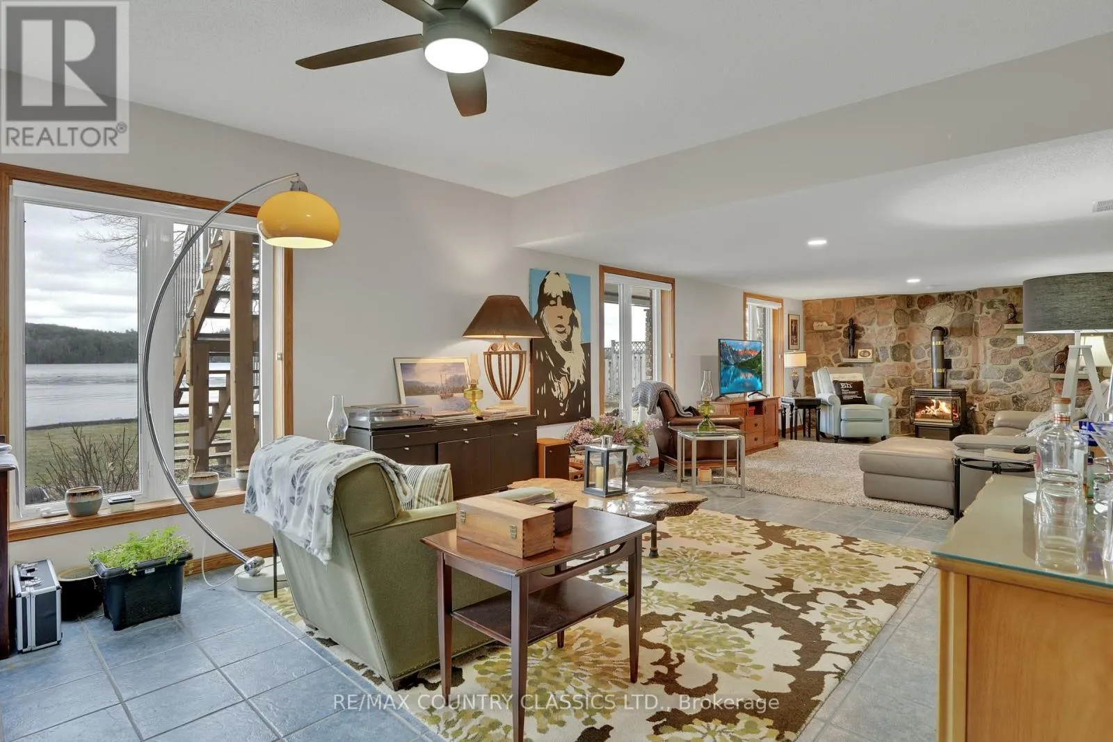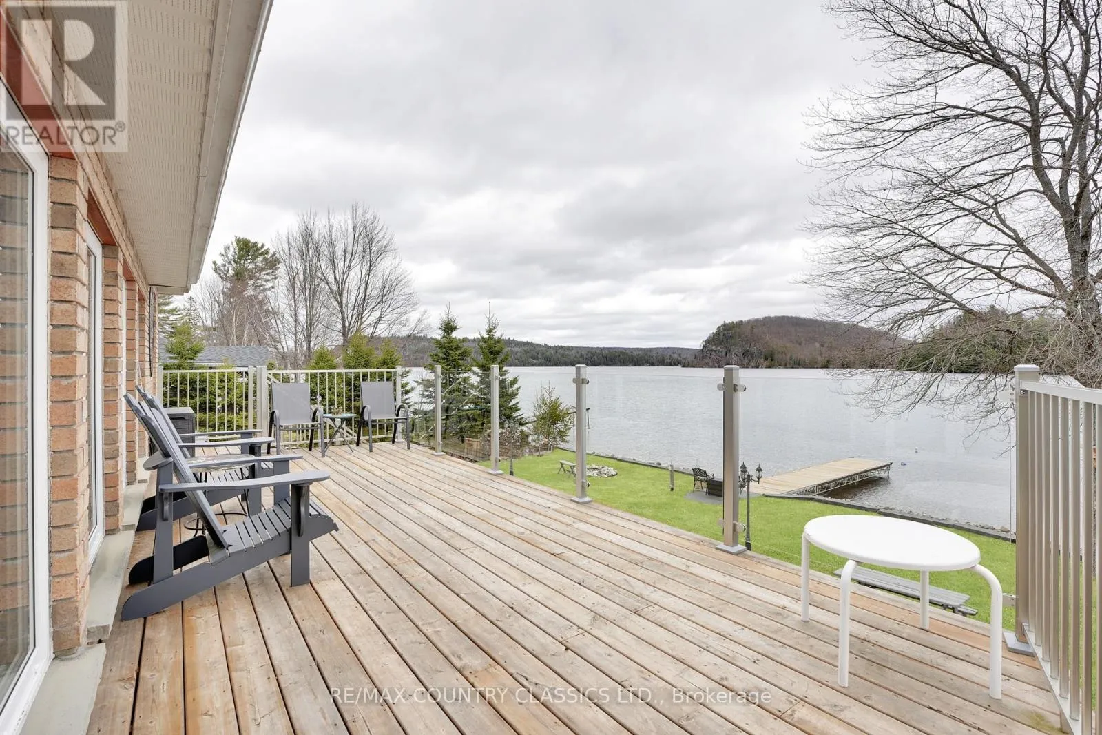 Cross Streets: Hwy. 62 and North Baptiste Lake Road. ** Directions: Hwy. 62 North to North Baptiste Lake Road, to 1787. Nestled on the shores of Baptiste Lake, this charming brick waterfront home offers stunning views and year-round enjoyment. The main floor features an open-concept kitchen (2016) and dining area flowing into a sunken living room with vaulted ceilings and new skylights (2022). Three spacious bedrooms each offer double closets and picturesque lake views. New flooring throughout (2021).The full walkout basement includes an exercise room, reading nook, and cozy propane stove. Major updates include a 200-amp panel with surge protection, propane furnace (2021), and a spring-fed dug well with UV filtration, plus new pressure and hot water tanks (March 2025).Enjoy outdoor living on the expansive deck with InvisiRail (2021) overlooking the lake or the lower-level patio. The pristine shoreline features a sandy beach, granite steps, and a refinished dock (2023) with over 90 ft of frontage. Partially fenced yard, detached 1.5-car garage, and access to nearby snowmobile trails and Crown land complete this ideal home, cottage, or investment property. (id:27476)