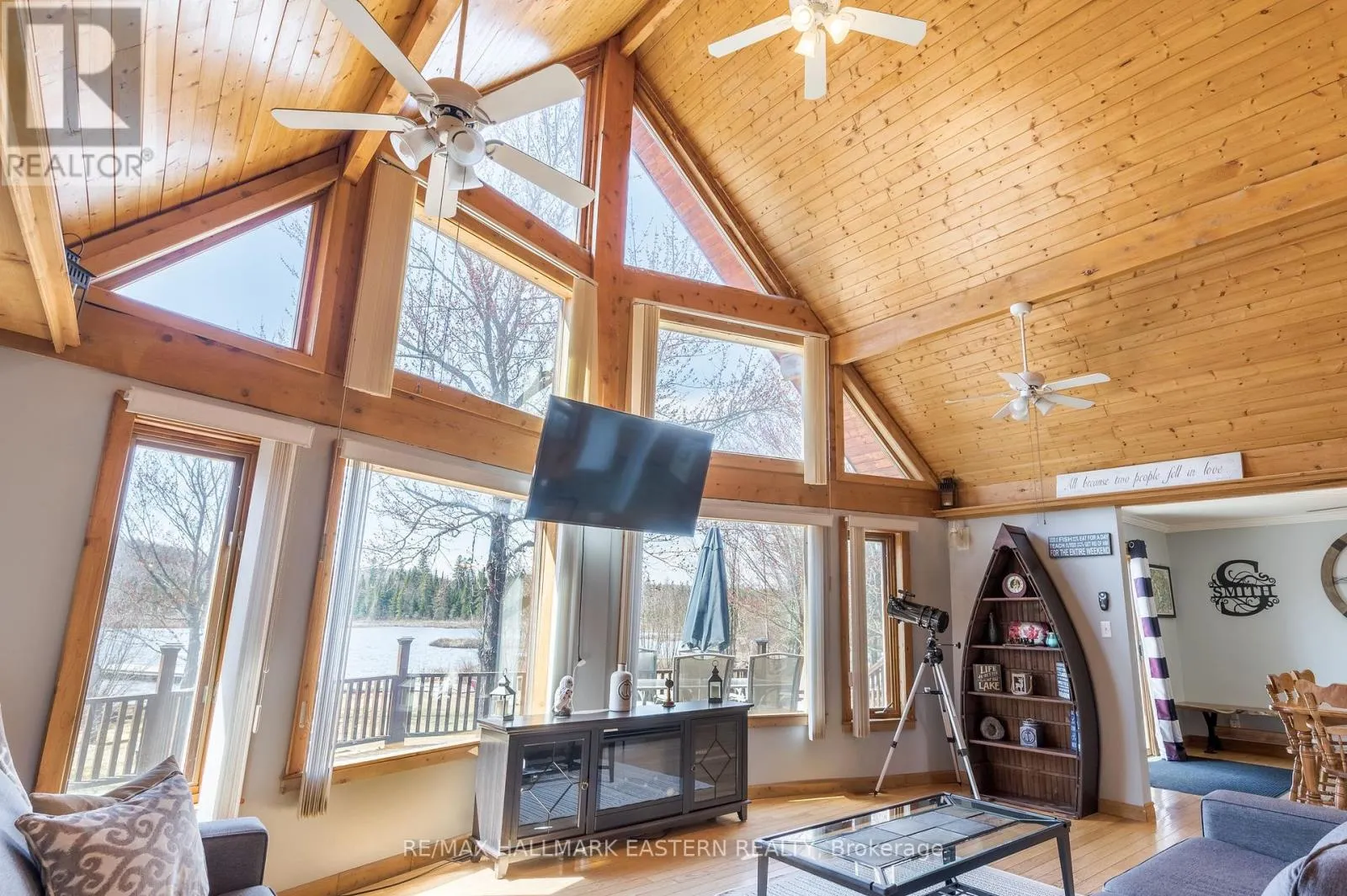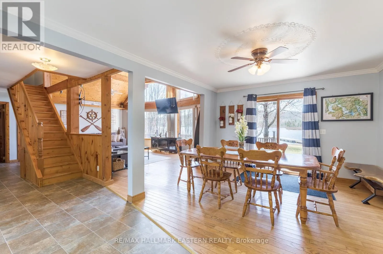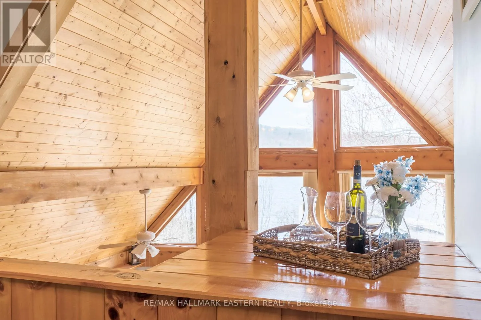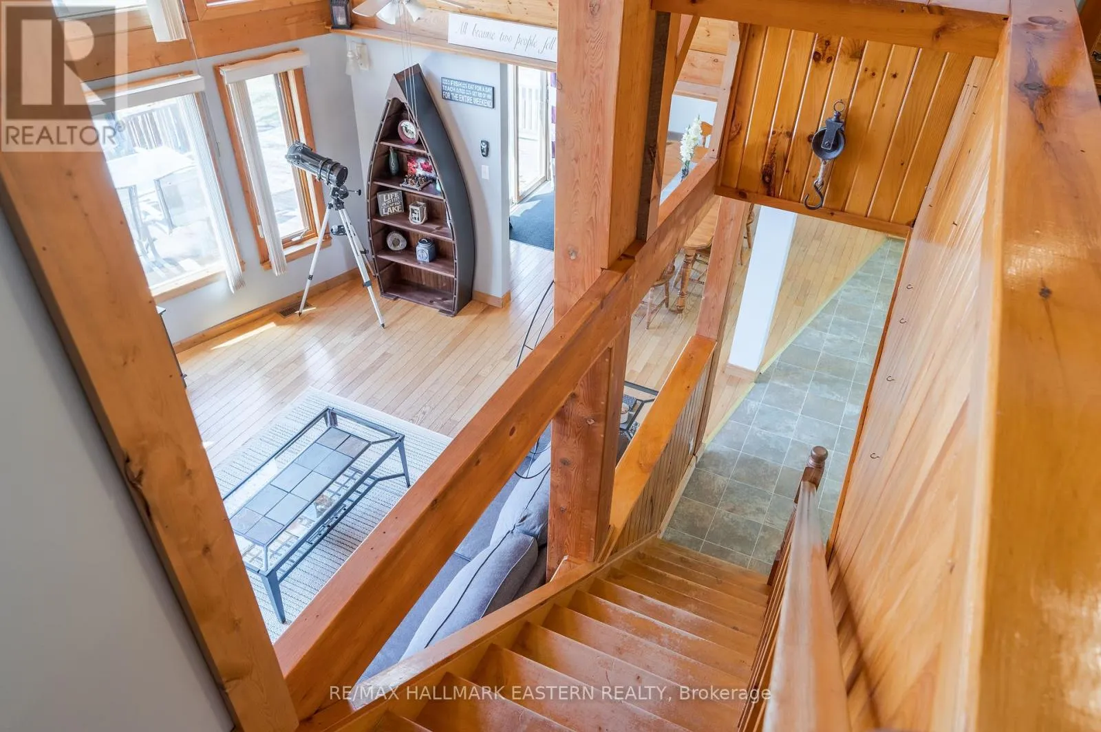 Cross Streets: North Baptiste Lake Rd. ** Directions: North Baptiste Lake Road to Paradise Landing. Welcome to your ideal lakeside retreat nestled on a spacious level lot with 132ft of shoreline along the shores of Baptiste Lake. This versatile property presents a charming 4 season home or cottage boasting an inviting open-concept layout that seamlessly integrates the kitchen, dining and living areas, all offering breathtaking views of the lake. On the main floor, discover 2 cozy bedrooms, a well appointed 5-piece bathroom, and convenient laundry facilities. Ascend to the master bedroom loft, where panoramic vistas of the lake await, 3-piece ensuite, a walk-in closet, and ample storage space. The property is equipped with 100 amp service to the garage, ensuring ample power for all your needs. A circle gravel driveway provides parking for up to 20 vehicles, while a lean-to garage extension offers additional storage options. Delight in waterfront living with a floating dock, perfect for launching aquatic adventures. Additional features include a barn style shed for storing outdoor equipment, raised garden beds equipped with a convenient watering system and the ultimate privacy amidst stunning water views, captivating sunsets, and abundant wildlife. Enjoy the myriad recreational opportunities afforded by the expansive Baptiste Lake, renowned for its excellent fishing and ideal for boating enthusiasts. The property's proximity to vast stretches of crown land invites exploration via ATV or snowmobile, while hunting enthusiasts will appreciate the abundant wildlife in the surrounding area. Whether you seek tranquil relaxation or thrilling outdoor adventures, this lakeside haven offers the perfect blend of comfort, convenience and natural beauty. (id:27476)