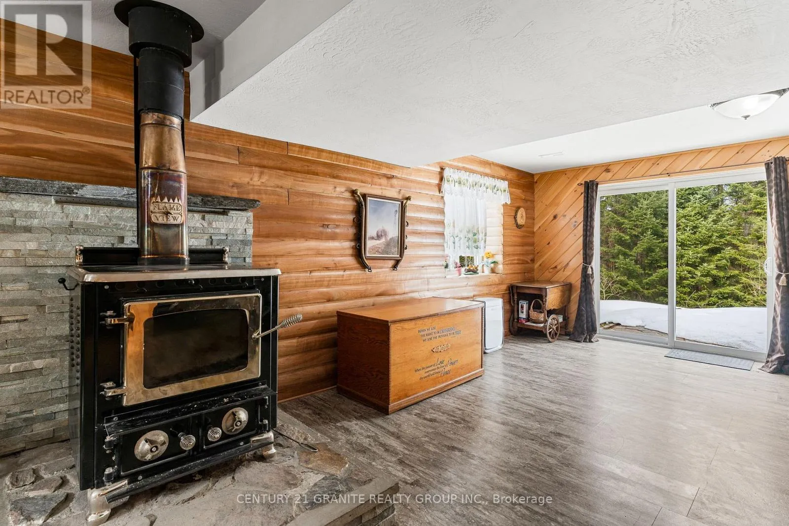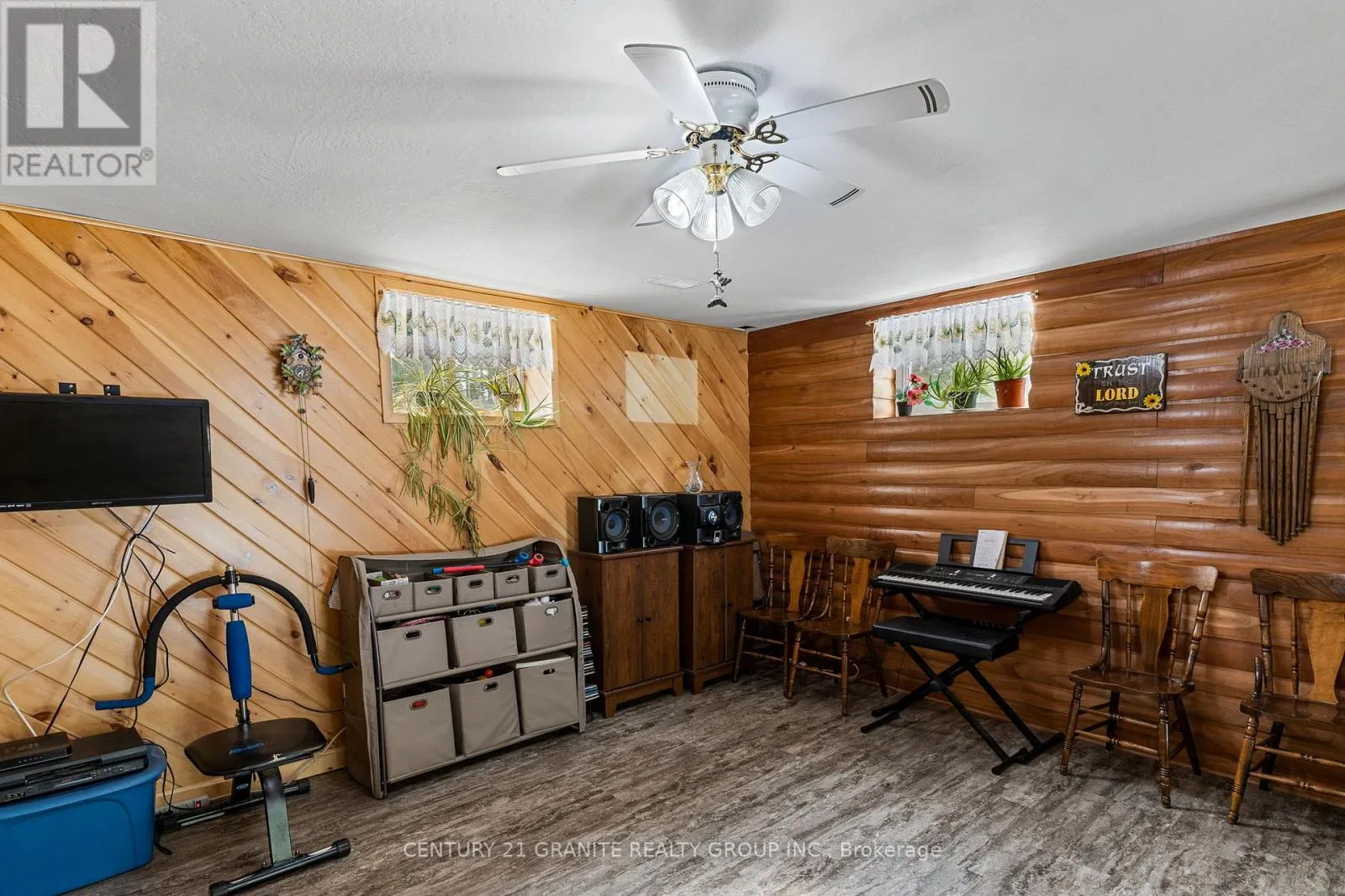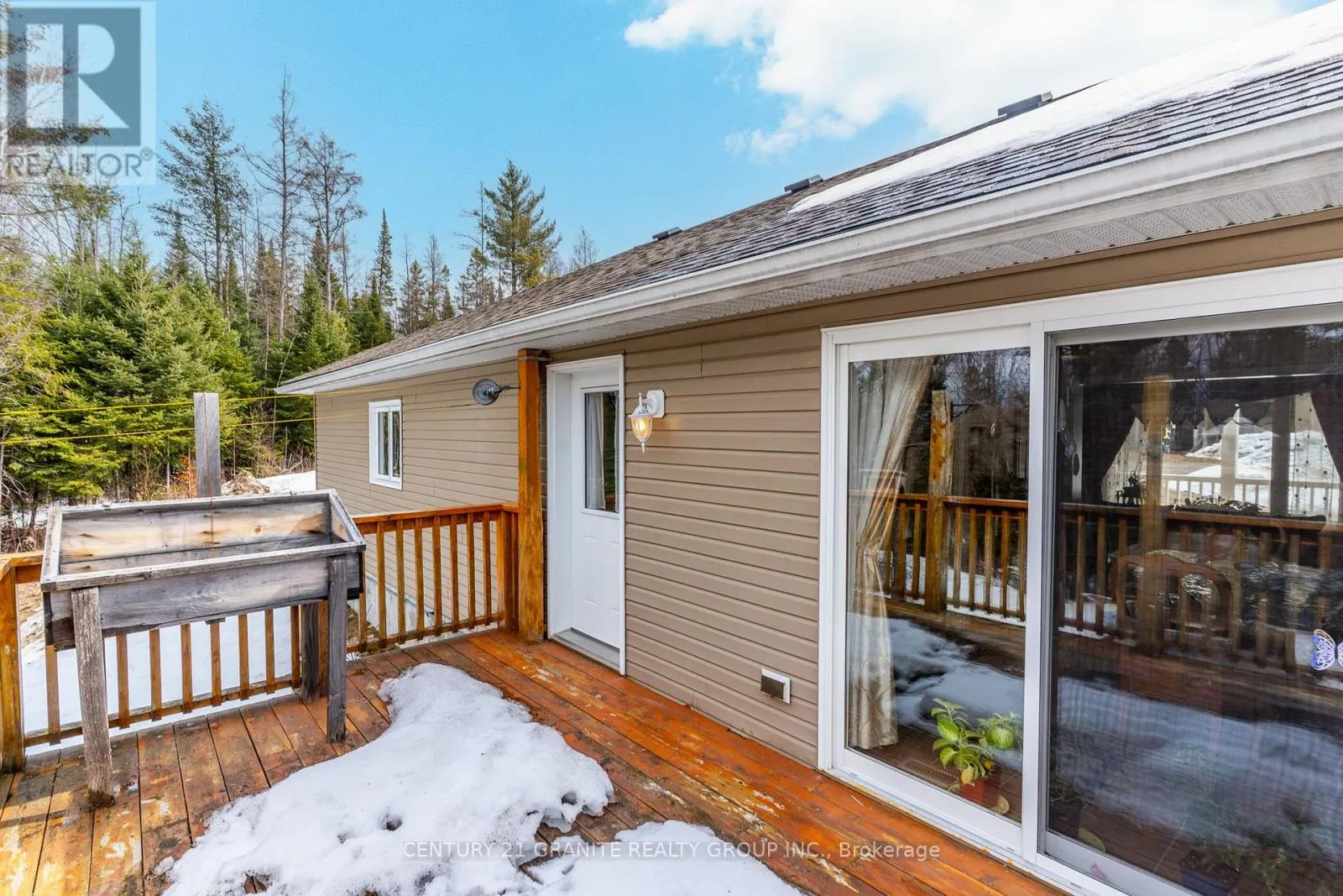 Cross Streets: Hwy 27 and Williams Lake Rd. ** Directions: From Maynooth drive north on the 127 for 2 km, turn left on Williams Lake Rd. Drive 4 km then property on the right. Rare opportunity to own 79 acres on Greenbark Lake with an impressive 2,100 feet of shoreline. Greenbark lake has no public access and only a few owners surround the lake, making for a very private waterfront setting and an outdoor persons dream. The 4-bedroom, 2-bathroom home is just 12 years old and features bright, open living spaces. A full finished basement includes a large rec room, providing plenty of additional space for family and entertaining. A walk out basement entrance leads to a patio, gazebo, vegetable gardens and flower beds. The property also includes a 25' x 30' shop, a small sugar shack, and a partially started log cabin right at the water's edge-ideal for a future getaway. A separate mobile home with its own well and septic system offers great fix-up potential for rental income or guest accommodations. A unique waterfront property with space, privacy, and multiple possibilities. (id:27476)