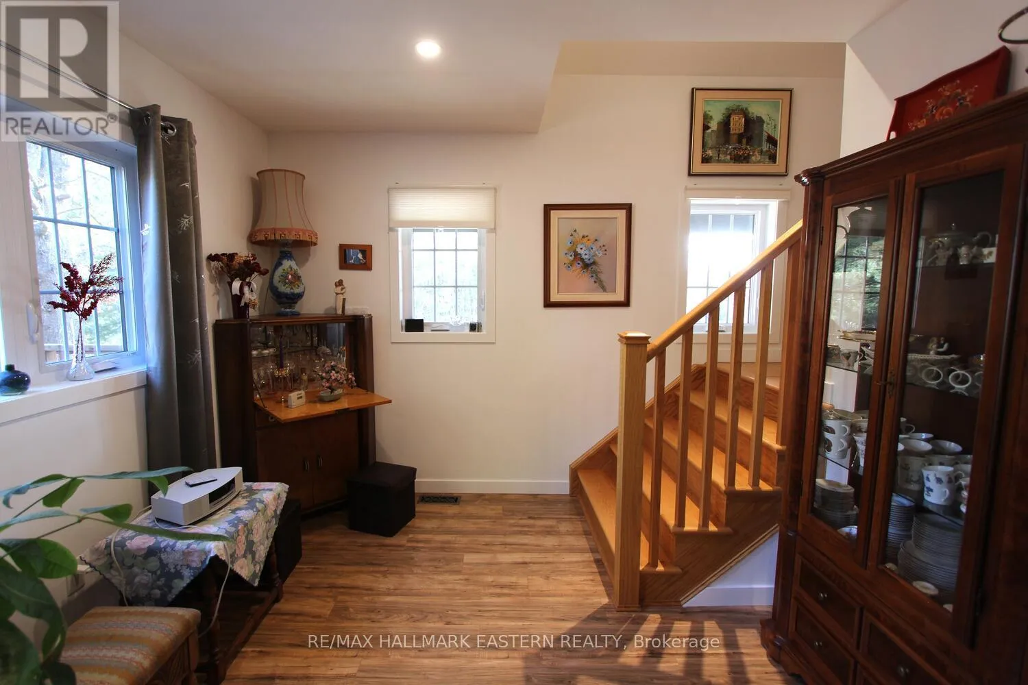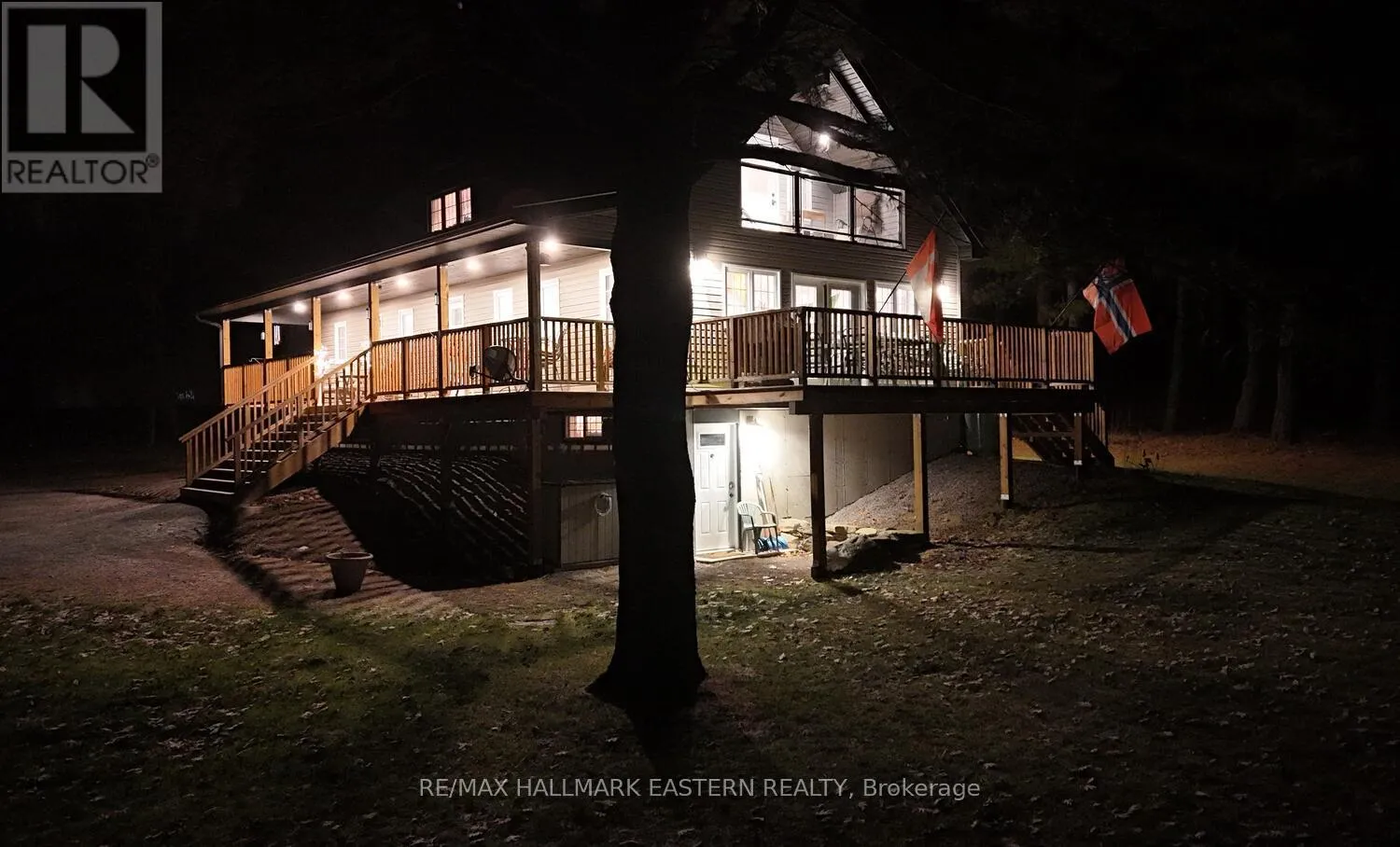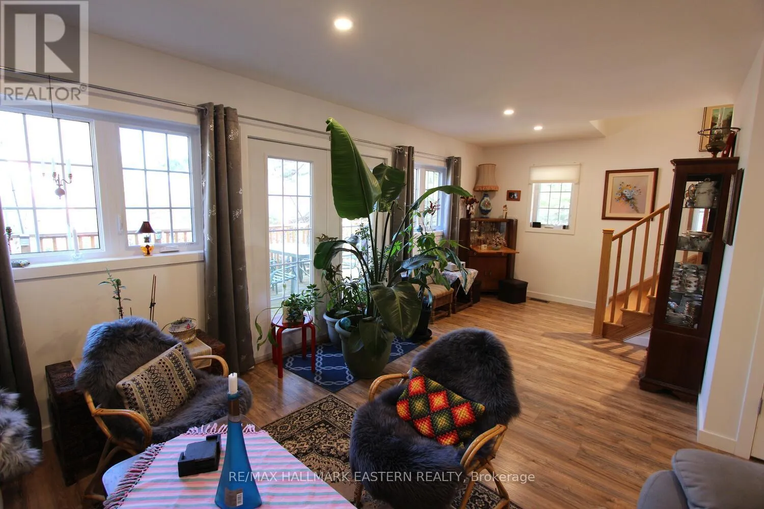Cross Streets: Blairton Road & Blairton Tent & Trailer Park Road. ** Directions: EAST from HAVELOCK on TC-HWY 7 to BLAIRTON ROAD. NORTH on BLAIRTON ROAD. EAST on BLAIRTON TENT & TRAILER PARK ROAD and follow to #20 on LEFT. Sign on Property. **Google has labeled \"BLAIRTON TOWN & TOWNSHIP ROAD\"**. | HAVELOCK | Inspired by the timeless A-frame architecture of Norway, this custom-built storey-and-a-half offers 1,816 sq. ft. of thoughtful design, quiet comfort, and efficiency. The welcoming front porch opens to a smartly designed foyer/mudroom with half bath, leading to a bright eat-in kitchen, office and living room. The main-floor primary suite features an ensuite and private walkout. Upstairs, a cozy family room with treetop views opens to a covered porch; perfect for morning coffee or evening unwinding. A second bedroom and full bath complete the level. An unfinished walkout basement offers potential space to grow. Situated on a 150' x 200' lot surrounded by mature pine trees and only a short stroll to the Crowe Lake boat launch. Located 10 minutes east of Havelock and 40 minutes from Peterborough. This could be your escape, tucked amongst the pines. (id:27476)