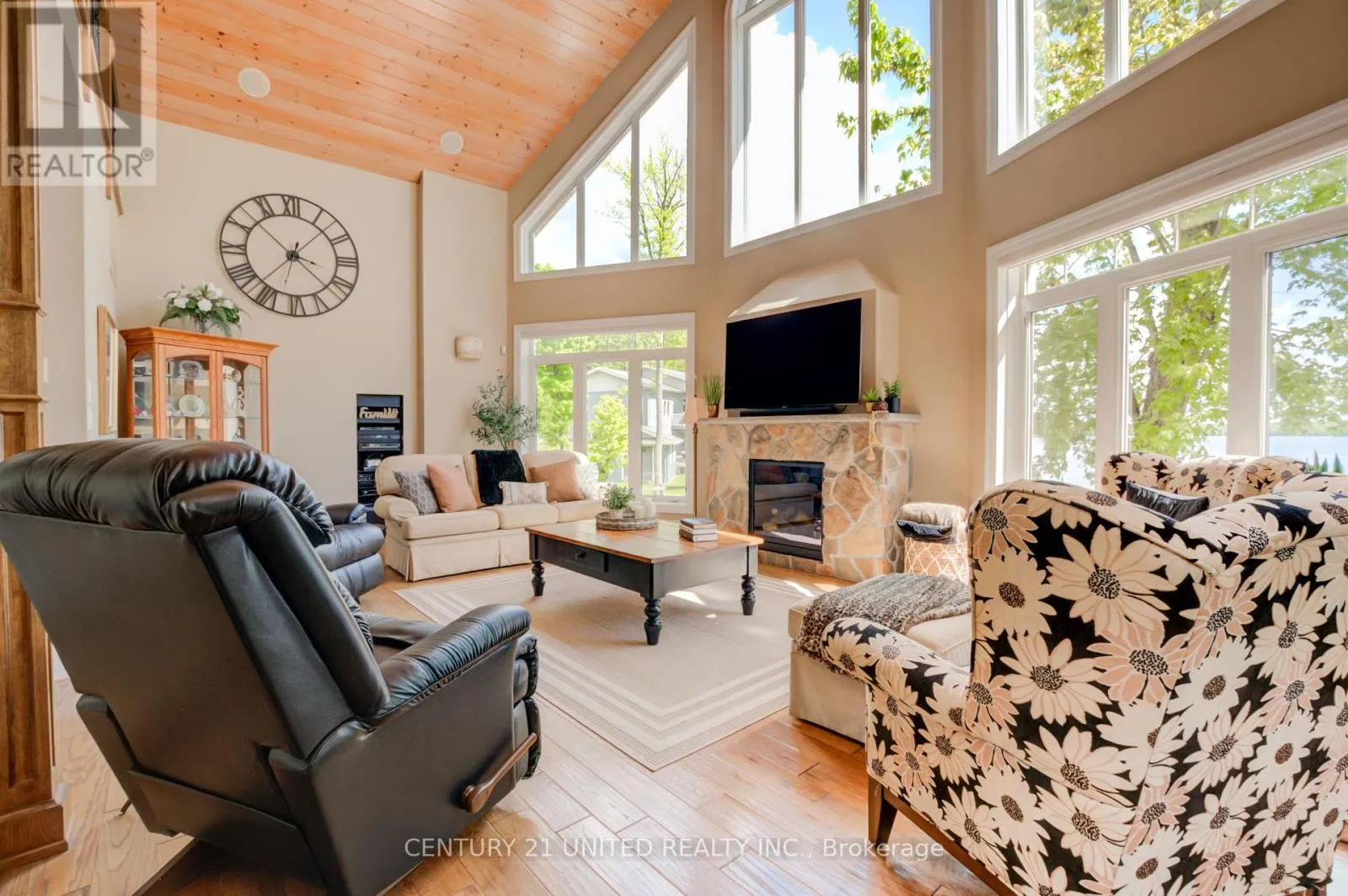 Hwy 7 & 6th Line Belmont This impressive home must be seen to be fully appreciated. If you've been searching for a stunning, year-round waterfront oasis just 1.5 hours from the GTA, your search ends here.Set in a private, serene setting, near the end of a quiet road, where neighbours respect the natural beauty and peaceful enjoyment of the area, this thoughtfully designed 13-year-old home was built by a legacy family who have cherished the lake since the 1950s.The residence offers four bright bedrooms and three well-appointed bathrooms, along with a gourmet island kitchen featuring granite countertops-perfect for entertaining. The open-concept design showcases breathtaking lake views, complemented by gleaming hardwood and travertine floors that flow gracefully throughout the home.The family room impresses with a soaring 24-foot ceiling and a dramatic wall of windows, capturing the coveted southwestern exposure and filling the space with natural light. Enjoy dining indoors overlooking the water, or step outside to the expansive Trex composite deck, complete with a Sun-Shade awning, integrated sound system, and low-voltage lighting-creating an ideal setting for effortless entertaining.The grounds are equally exceptional, featuring extensive armour stone, landscaping, and irrigation system, with a large fire pit finished with Bear Cut flagstone-perfect for gathering under the stars and creating lasting memories.Additional features include a custom Rainbow children's play centre and an impressive 36 x 32 ft two-storey, three-car heated garage. Above the garage, a beautifully finished games room or guest suite with a gas fireplace provides flexible living space. A second 24 x 32 ft detached 1.5-car garage is equipped with both propane and electric furnaces, along with 100-amp service, while the home also offers an attached single-car drive-through garage.Near the boat launch, a 24 x 12 ft dry boathouse-finished and heated-offers the perfect space for a studio or peaceful meditation retreat. (id:27476)