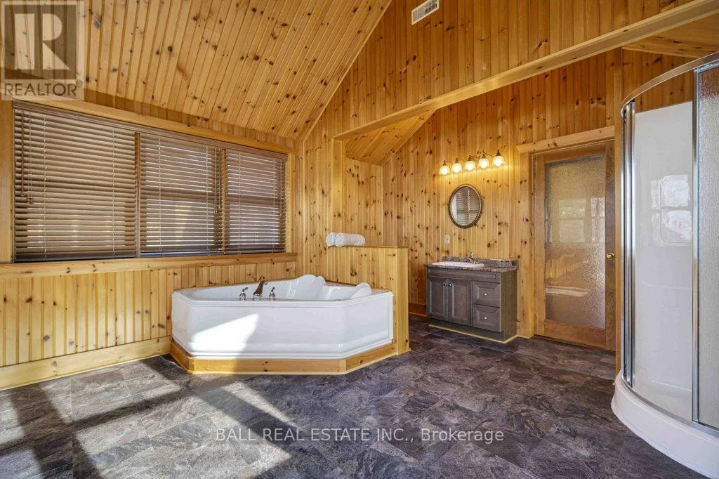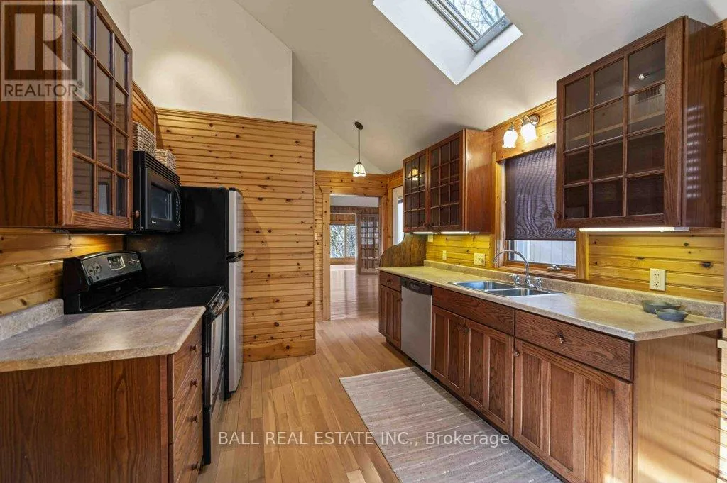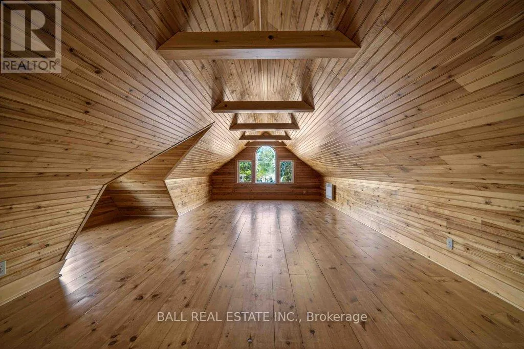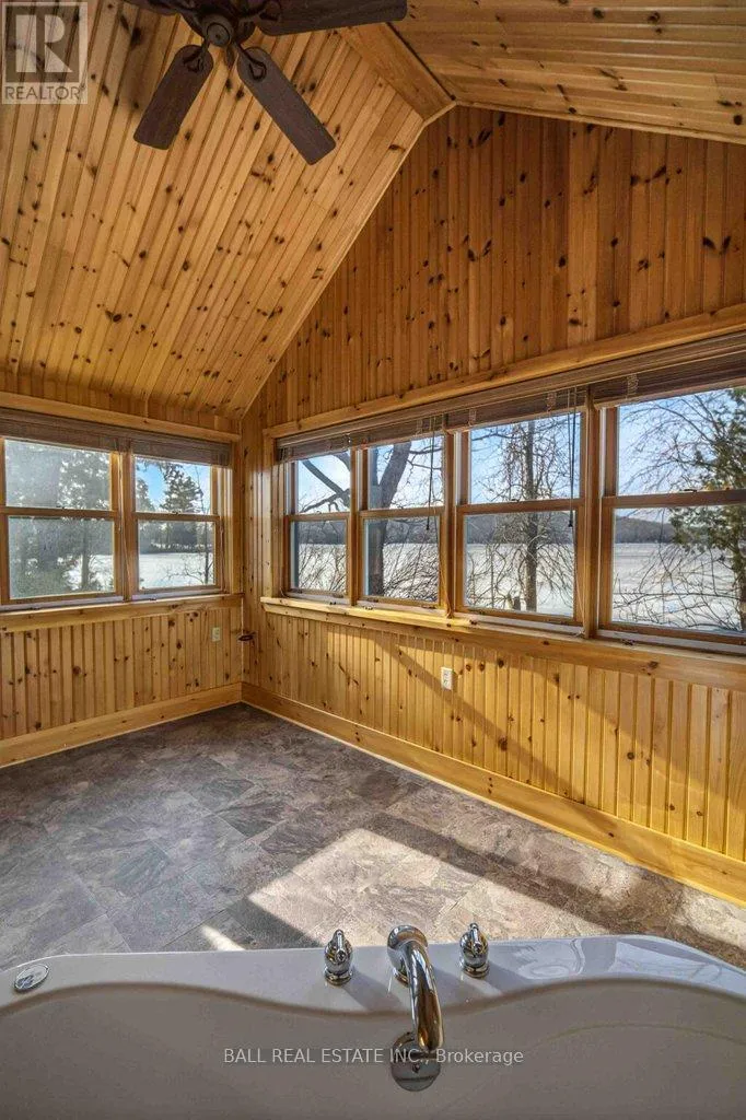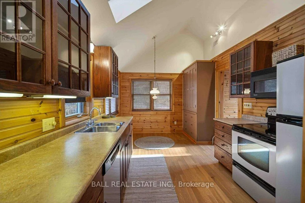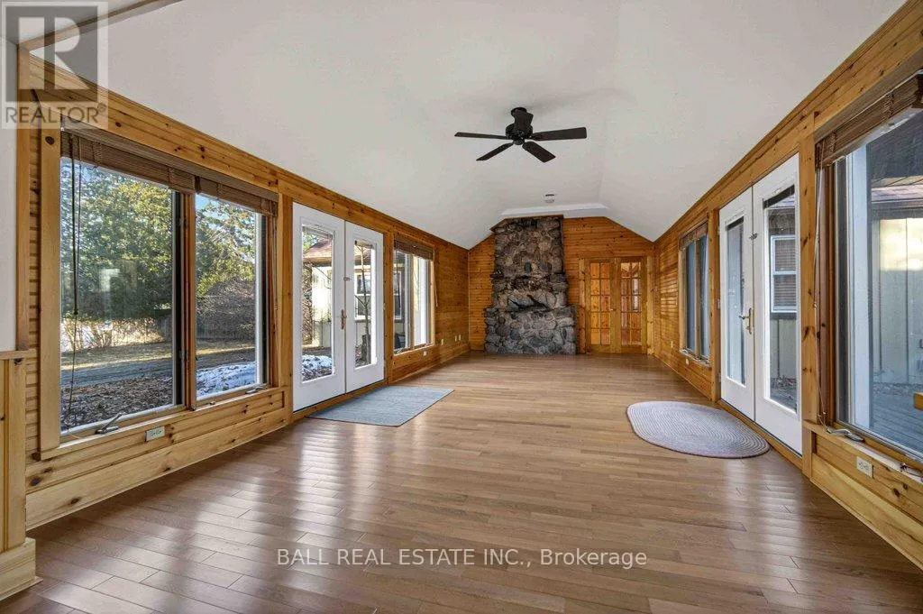 Cross Streets: Mile of Memories and Fire Route 33. ** Directions: https://maps.app.goo.gl/RFCuAgur1NLP1Lc99. | The Ultimate Waterfront Retreat on Belmont Lake | Experience the rare harmony of luxury and lakefront living with this stunning Belmont Lake estate. Boasting a staggering 170+ feet of north-westerly frontage, this property offers front-row seats to the region's most breathtaking sunsets. Whether you're wading into the crystalline waters via custom stone stairs or cruising by boat to the local sandbar and the iconic Belmont Lake Brewery, the lifestyle here is unparalleled. Designed with meticulous craftsmanship, this 2,000+ sq. ft. bungalow features an expansive, all-one-level layout. The interior strikes a sophisticated balance between rustic charm and modern elegance, showcasing vaulted beamed ceilings, rich hardwood floors, and a grand stone fireplace that anchors the living space. The intelligent floor plan separates the primary living areas from a dedicated bedroom wing for ultimate privacy. Currently configured as a spacious two-bedroom, two-bathroom home, the flexible den offers an easy transition into a third bedroom if desired. Outside, the level lot leads to a detached double garage featuring a finished studio loft, perfect for a creative workspace or a guest bunkie. Located just 10 minutes from town amenities and 45 minutes from Peterborough, this home offers the peace of the cottage with the convenience of a primary residence. Complete with forced-air propane heat, central air, and a drilled well, this is quality you can feel in a setting you'll never want to leave. (id:27476)