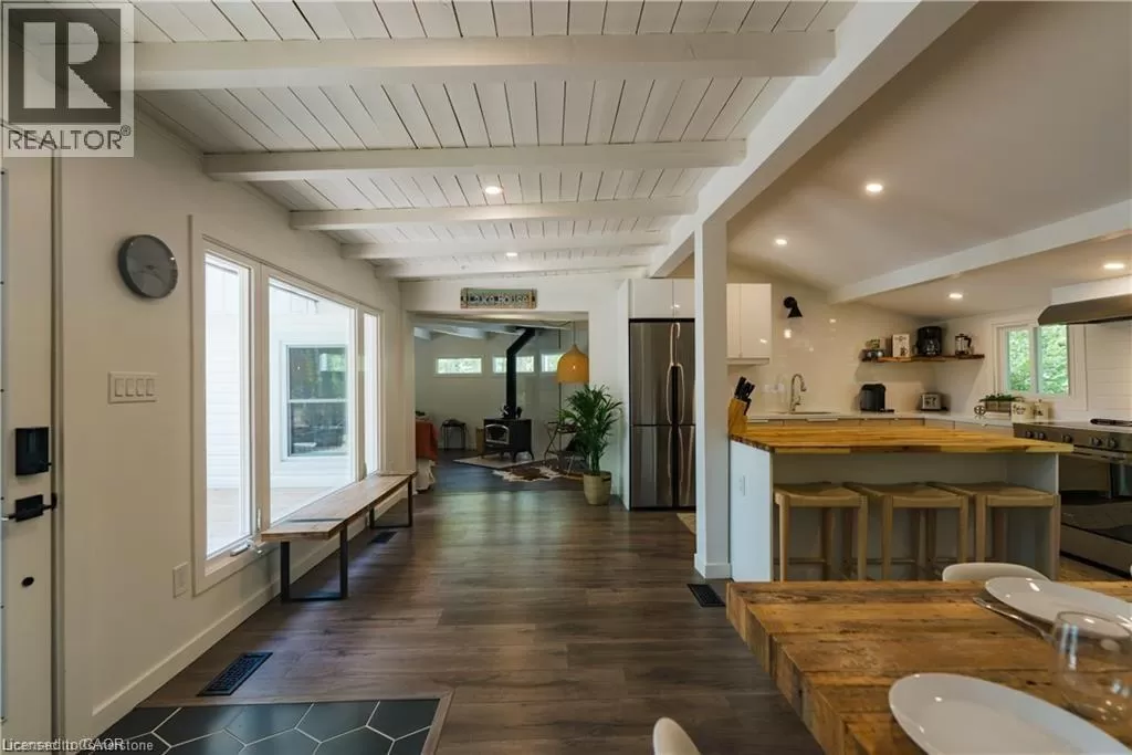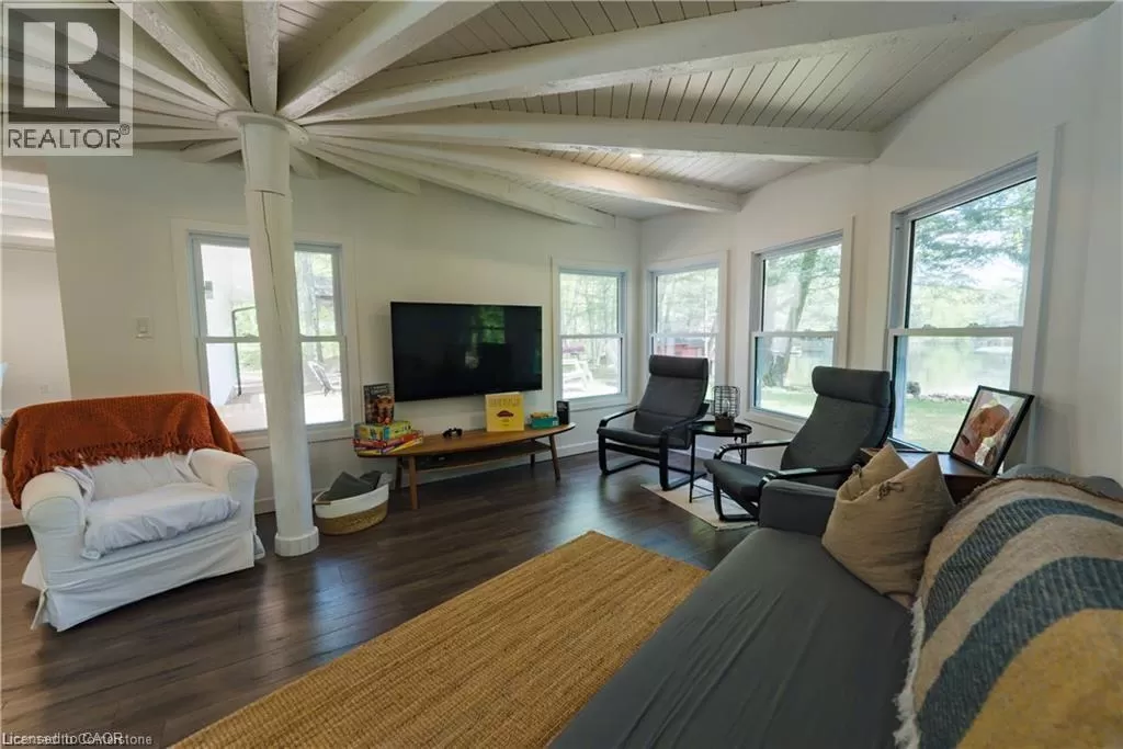 From the intersection of CR 6 & CR 40. Continue North on CR 6 for approx 10 kms. Turning right onto West Kosh Road. Follow signs, property will be on the right hand side. Welcome to your perfect four-season retreat on Kasshabog Lake in Lakefield, Ontario! Nestled in a quiet bay with 150 feet of desirable waterfront, this fully renovated, custom-designed cottage blends modern luxury with rustic charm. Step inside to a bright, open-concept layout with expansive windows showcasing breathtaking lake views. A cozy woodstove adds warmth, while the sleek design ensures both style and functionality. With three spacious bedrooms and a luxurious bathroom with heated floors, comfort is a priority. Accessible year-round via a municipally maintained road, this cottage is perfect for any season. Boating and swimming in summer, fireside relaxation and Sauna in winter. The boathouse and lakeside wood-burning sauna with a sitting area overlooking the bay create an unmatched waterfront experience. Enjoy stunning sunrise views from your deck, surrounded by nature. Just a short drive from the GTA, this is the ideal family getaway or full-time lakeside home. Its also a proven income-generating rental with strong demand in the area. RENOVATED top to bottom, updates include NEW shingles, siding, propane furnace, central A/C, windows, insulation, dry wall, electrical, plumbing, a UV water filtration system, and a heated-line well pump for year-round reliability. Outdoor lovers will enjoy boating, fishing, hiking, biking, and snowmobiling. The nearby Marina is great for a quick ice cream stop, while the area offers wineries, farms, berry picking, day spas, and cozy restaurants. Explore the historic Trent-Severn Waterway lock system nearby. This vibrant lake community hosts year-round events, bringing neighbours together. Whether you seek adventure or relaxation, this cottage is the perfect place to make unforgettable memories! (id:27476)