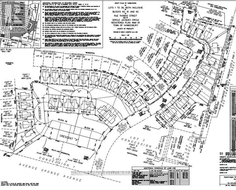 Spence Ave and Cameron Street Outstanding opportunity for developers, builders, and investors! An exceptional infill opportunity in the most prestigious Mountrock Neighbourhood in Hawkesbury Town. Approximately 10 acres of subdivision with Municipal Services at the Lot Line (to be extended as part of the site servicing). The Draft plan and Zoning approved for 107 Residential dwelling, combination of 5 Single detached, 48 Semi-Detached, 30 Free hold Towns, and 2 low-rise blocks with 12 dwelling units in each block. The detail design submission is almost ready for approval. The next steps are land servicing and build houses. Minutes walk to Walmart, hospital, public transports, and many amenities. (id:27476)
