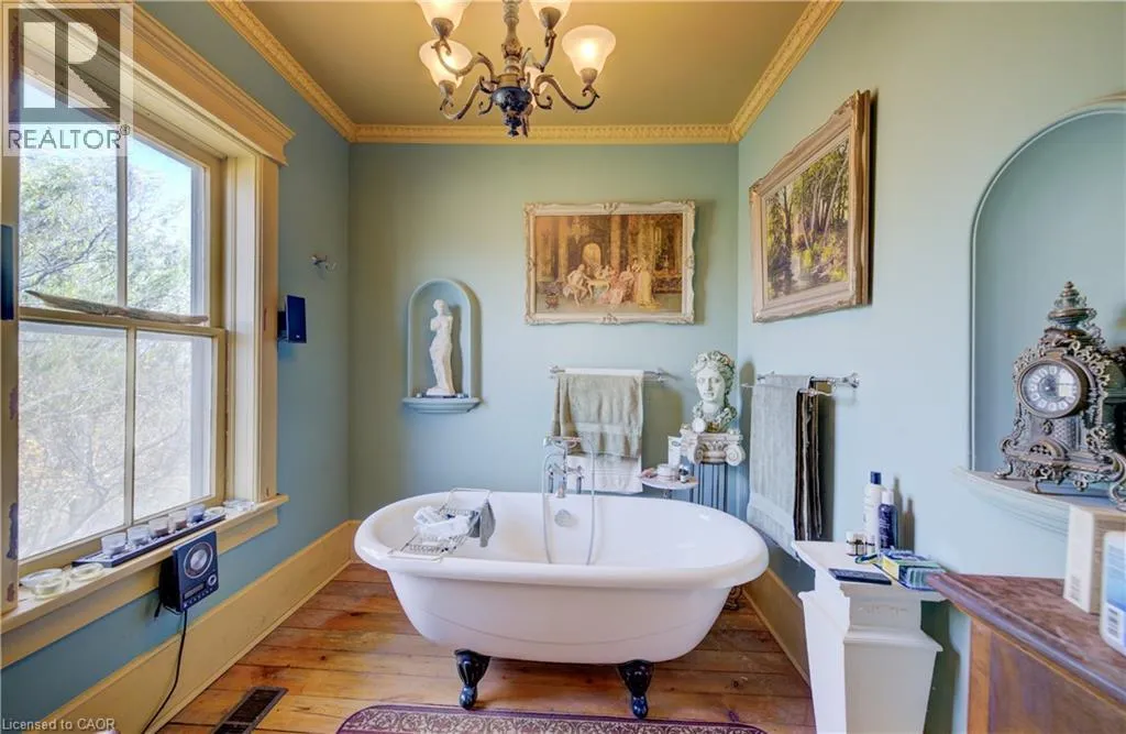WALKER RD TO HURON RD Welcome to Haysville! The possibilities are endless in this 1840s built yellow brick home with almost 5000 sq ft of living space. In the past this building has been a stage coach stop, a general store and a meat market. The main floor lends itself well to a commercial venture (although you would need to investigate a rezone possibility) with soaring ceilings and a large open space. Or remodel the area and have a huge home for a large family. Large kitchen, main floor laundry and a 2 piece bathroom. Upstairs features 3 bedrooms and a terrific bathroom, plus a self contained one bedroom apartment with a separate entrance. One of a kind basement that is decked out for halloween! Wonderful yard overlooking the Nith River, perfect for entertaining family and friends. (id:27476)
