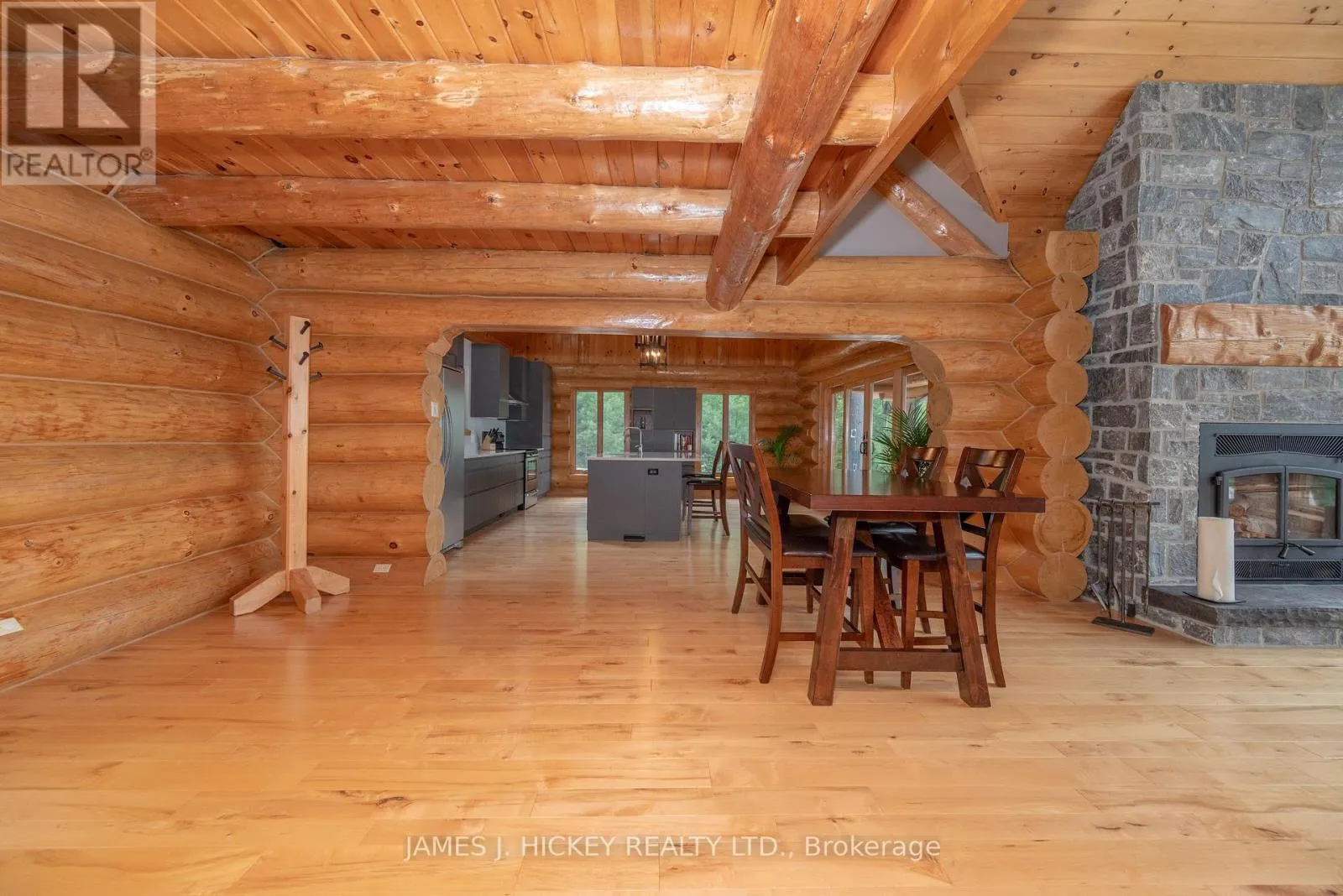 Cross Streets: Highway 17 & Colton Creek Road. ** Directions: Highway 17 west of Rolphton to Colton Creek Road. Experience serene riverfront living with this stunning log home set on 19.7 private acres, offering over 1,500 feet of frontage along the majestic Ottawa River. Perfectly positioned to capture breathtaking views, this beautifully crafted residence welcomes you with an inviting foyer leading to a spacious living room, complete with cathedral ceilings and a striking stone airtight fireplace. The custom quality kitchen is designed for both function and style, featuring quartz countertops and a generous island ideal for meal prep or casual dining. Sliding patio doors open to an expansive two-level deck, perfect for entertaining or simply relaxing as you soak in the natural beauty surrounding you. The open loft provides a cozy retreat or the perfect space for a home office. The main floor primary bedroom offers a peaceful haven with a luxurious 4-piece ensuite and a deep soaker tub. Downstairs, the lower-level features three additional bedrooms, a full bath, ideal for the whole family or guests, laundry room and a utility room with its own exterior entrance. Outside, a pristine sand beach and quality custom dock, a remarkable 3-bay garage includes a heated workshop and loft storage, offering ample space for all your tools, toys and recreational gear. Whether you're seeking a year-round residence or a luxurious getaway, this one-of-a-kind riverfront property delivers comfort, privacy, and breathtaking scenery. Terrific fishing and hunting, minutes to the main snowmobile and ATV trail system, Dont miss your chance to own this exceptional retreat call today. Please allow a minimum 24-hour irrevocable on all offers. (id:27476)