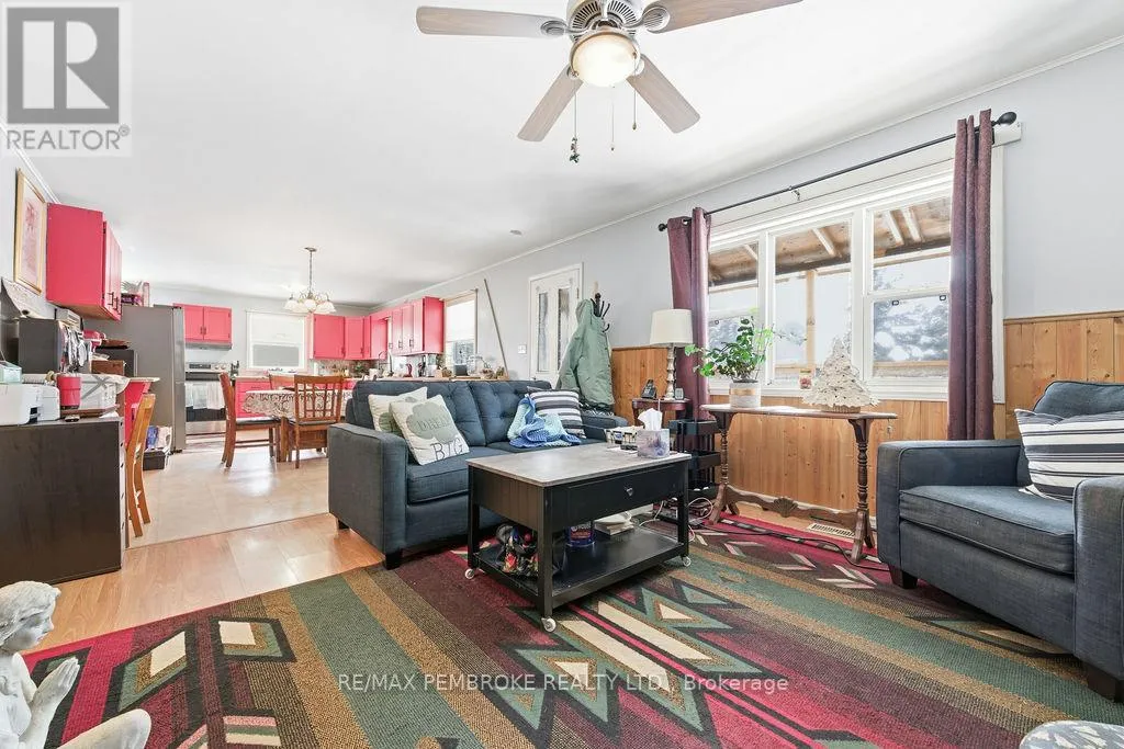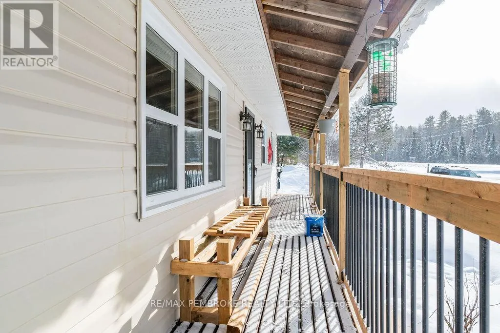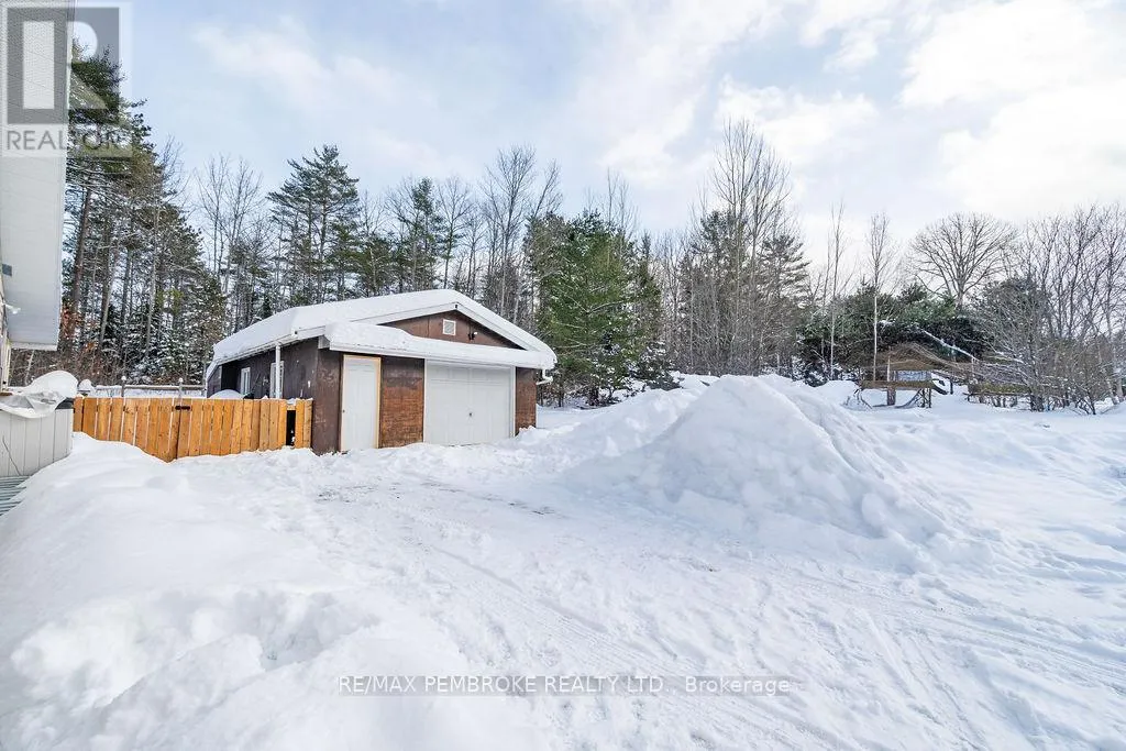 Cross Streets: Highway 17. ** Directions: Take Highway 17 heading west towards Stonecliffe, the property will be on your left. Welcome to this peaceful 2-bedroom home set on a picturesque 2.88-acre lot, offering the perfect balance of rural living and everyday convenience. Located just a 20 minute drive from the Town of Deep River, this property provides privacy, space, and access to nearby amenities. Designed for comfortable main-floor living, the home offers all essential living spaces on one level-ideal for those seeking ease of movement without the hassle of stairs. Enjoy your morning coffee on the inviting front porch or relax in the fully enclosed back porch while taking in the quiet, natural surroundings. A detached 2 car garage provides ample space for vehicles, storage, or hobbies, while a large fenced area offers added functionality for children or pets. The oil/wood combination furnace, installed in 2024, adds efficiency and peace of mind. A handy shed provides additional outdoor storage. Outdoor enthusiasts will appreciate the proximity to public boat launches and the natural beauty of nearby Driftwood Provincial Park, making this an excellent location for those who enjoy boating, hiking, and year-round recreation. Whether you're searching for a full-time residence or a peaceful rural retreat, this property offers comfort, practicality, and a lifestyle connected to nature, all within an easy drive to town. (id:27476)