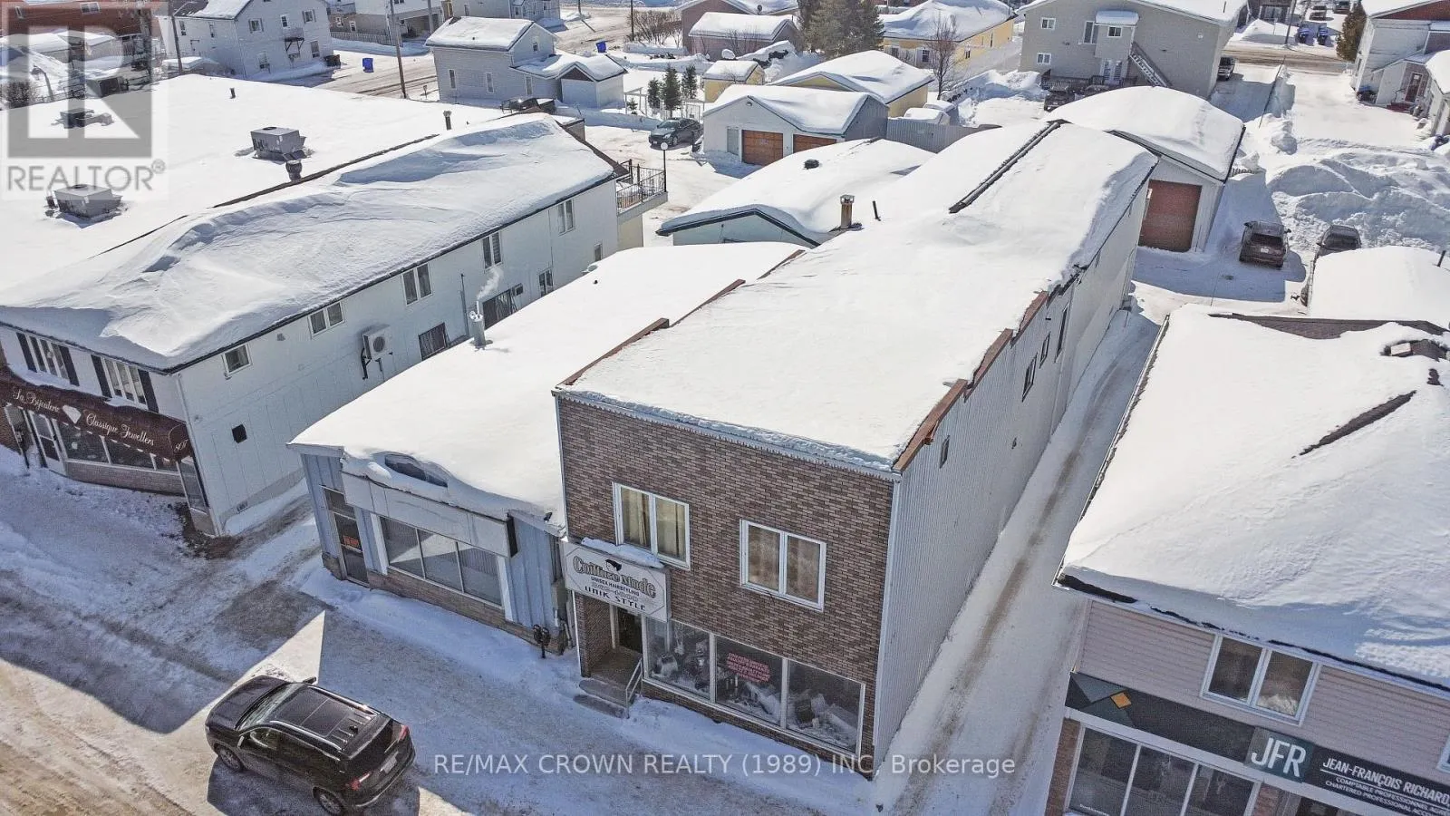 Cross Streets: George. ** Directions: From HWY 11 turn on 8th then turn on George. Opportunity quietly meets possibility in a space that feels ready for its next chapter. The main floor, currently home to a hair salon, welcomes you with an open layout that can easily adapt to your vision, whether that is a cozy restaurant, a professional office, or a service based business looking for strong visibility and flow. It is the kind of space where ideas can take shape, where clients walk in and instantly feel at ease, and where your business can naturally grow into its surroundings. Toward the back, a private driveway leads to parking for two vehicles, adding everyday convenience, while a large garage offers practical space for those who work with their hands or need room for tools, equipment, or inventory. Upstairs, a two bedroom apartment has been roughed in with certain windows and walls already installed, offering a strong starting point for someone ready to complete the space to their needs, whether for personal use or future income. (id:27476)