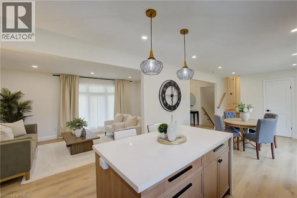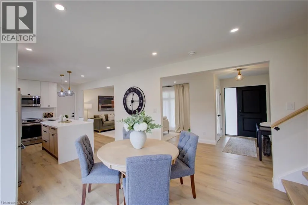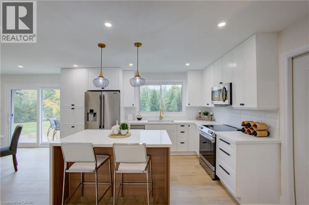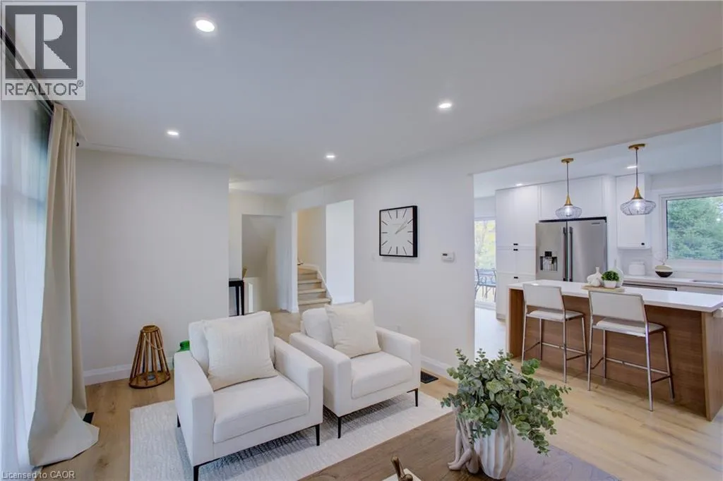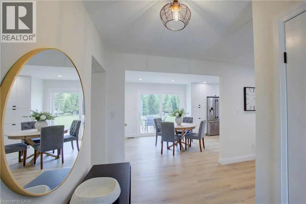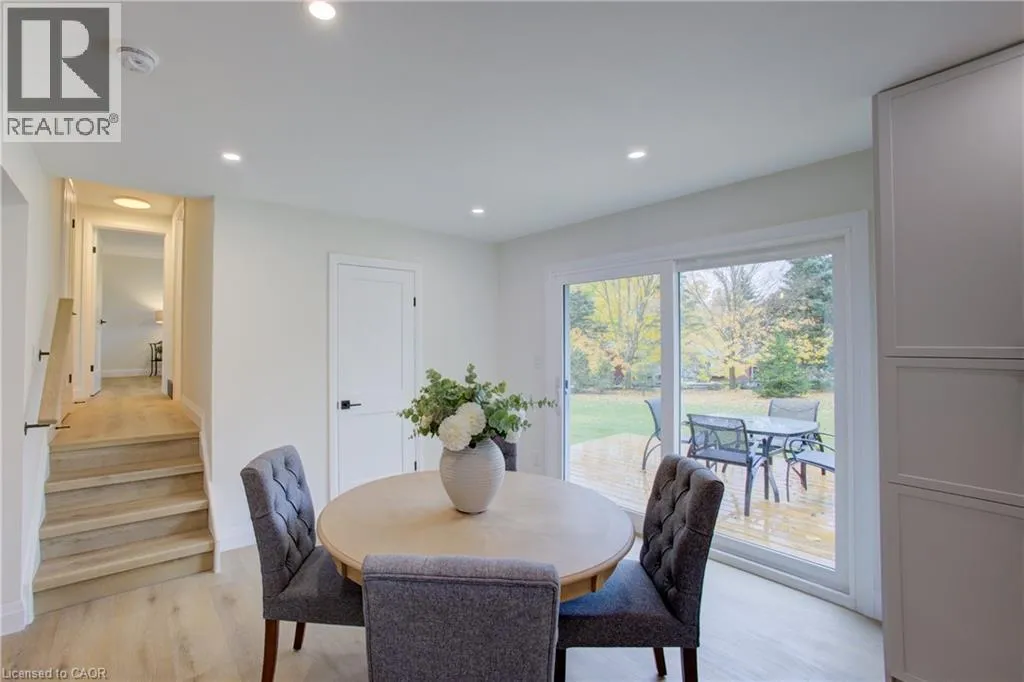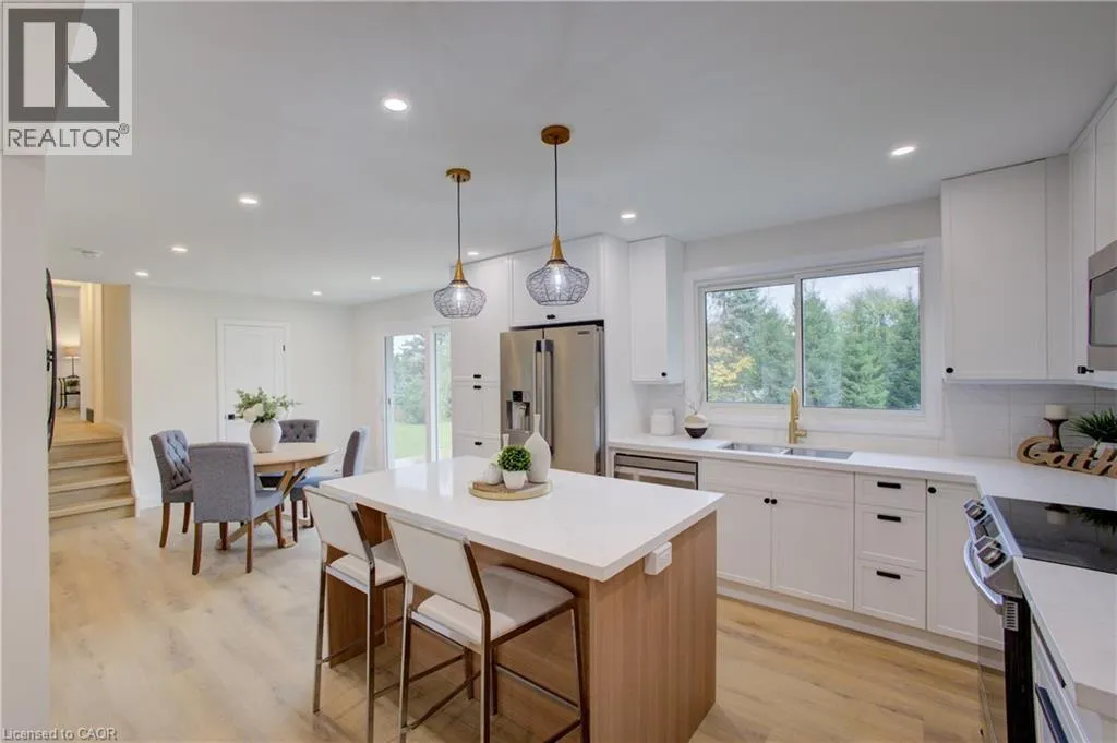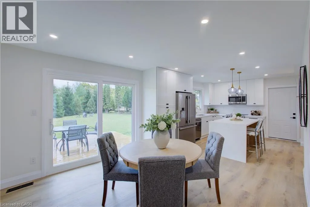 Apollo Drive to Trillium Court Charming Move in Ready Side Split on a Private Court in Heidelberg Nestled on a quiet court in Heidelberg, this beautifully extensively renovated side split sits on a stunning property lined by evergreens and within view of a farmerâs field â offering rare privacy and peaceful country charm, yet all the town amenities. Perfect size home, the setting, yard, and location make it truly special. Inside, youâre welcomed by a bright and inviting living room, perfect for entertaining family and friends. The central kitchen features modern updates and adjoins a comfortable dining area. Upstairs, youâll find three spacious bedrooms and a stylishly updated family washroom. The lower level adds versatility with a fourth bedroom or den with look-out windows, a nice size family room, and a convenient 4-piece bath. The basement level provides even more space â ideal for a games room, home gym, or media theatre area, with electrical already in place for a projection screen. Step outside to enjoy the deck and expansive backyard â a blank canvas for your garden, play area, pool or future outdoor retreat. A full double garage with access to the rear yard completes this charming property. Renovations in (2024 and 2025) include, upgraded insulation, windows, and doors, concrete walk-way and drive way, roof shingles, washrooms, kitchen, lighting, hardware, doors and trim, flooring, paint, electrical panel, sump-pump, landscaping, and so much more. Move in ready. Properties like this rarely come available in this sought-after community. Just minutes from St. Jacobs Farmersâ Market and North Waterloo, this home offers the perfect blend of small-town charm, privacy, and convenience.* 3photos are virtually staged photos. (id:27476)