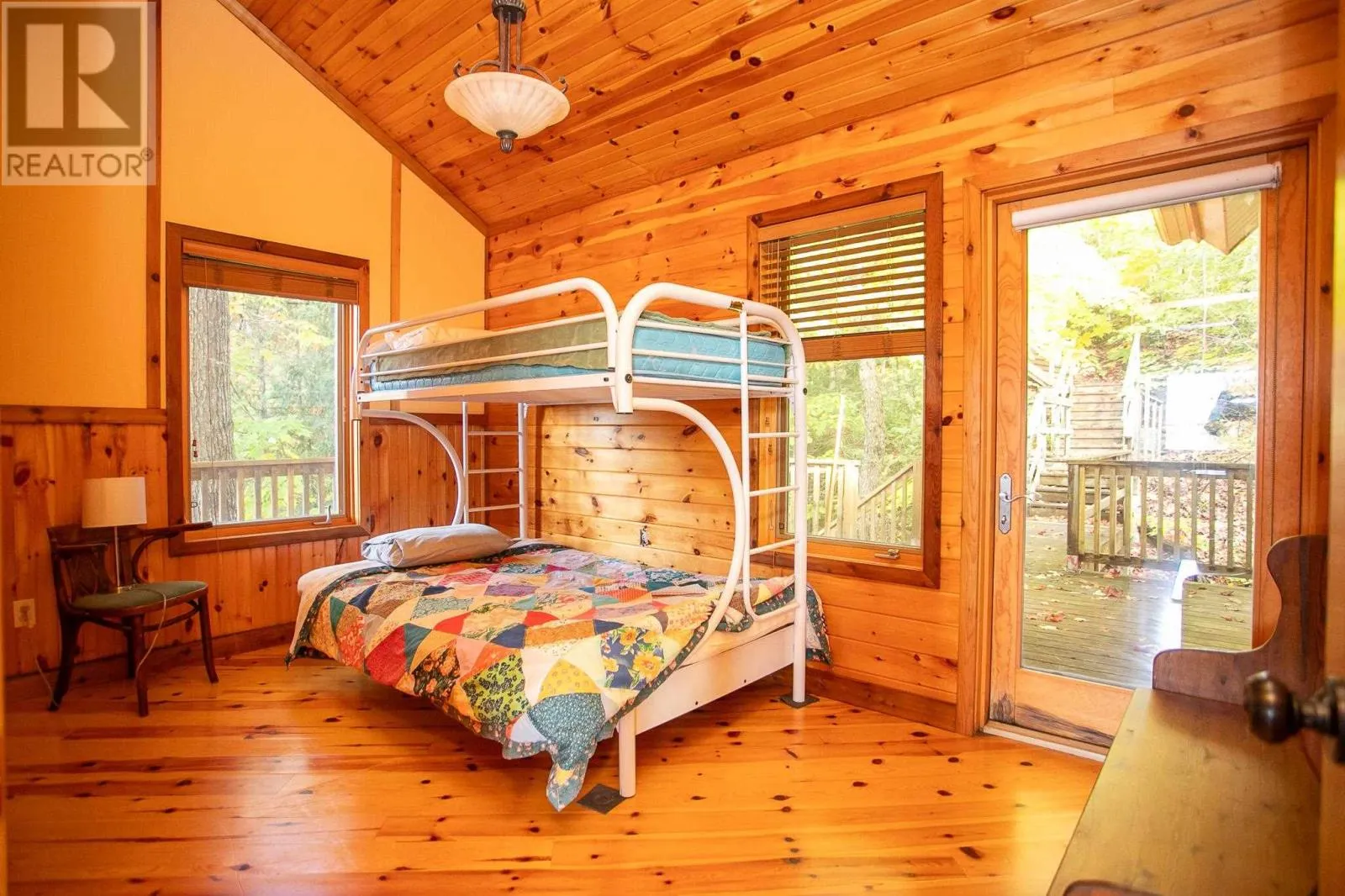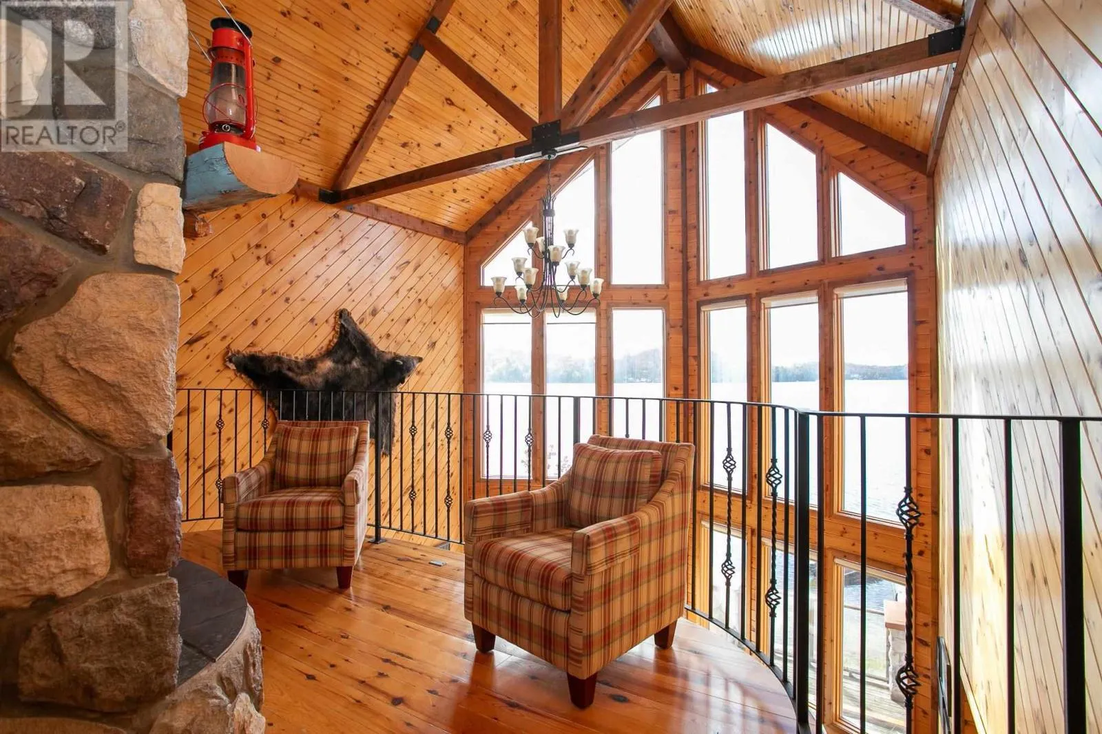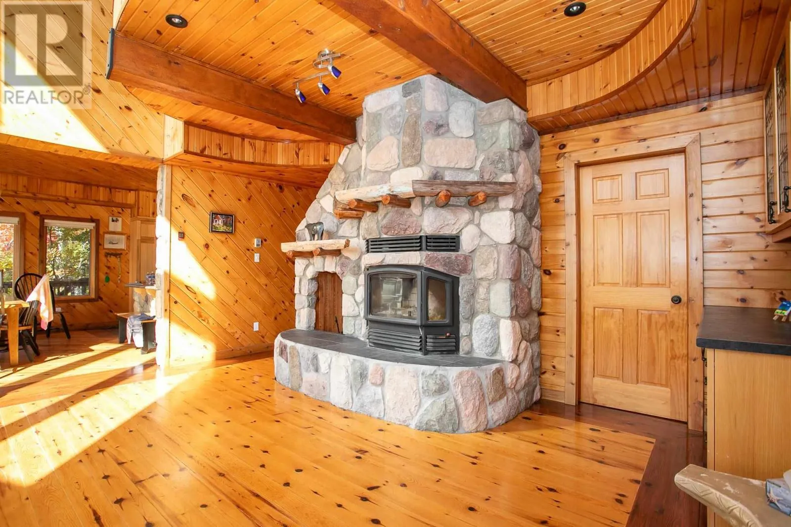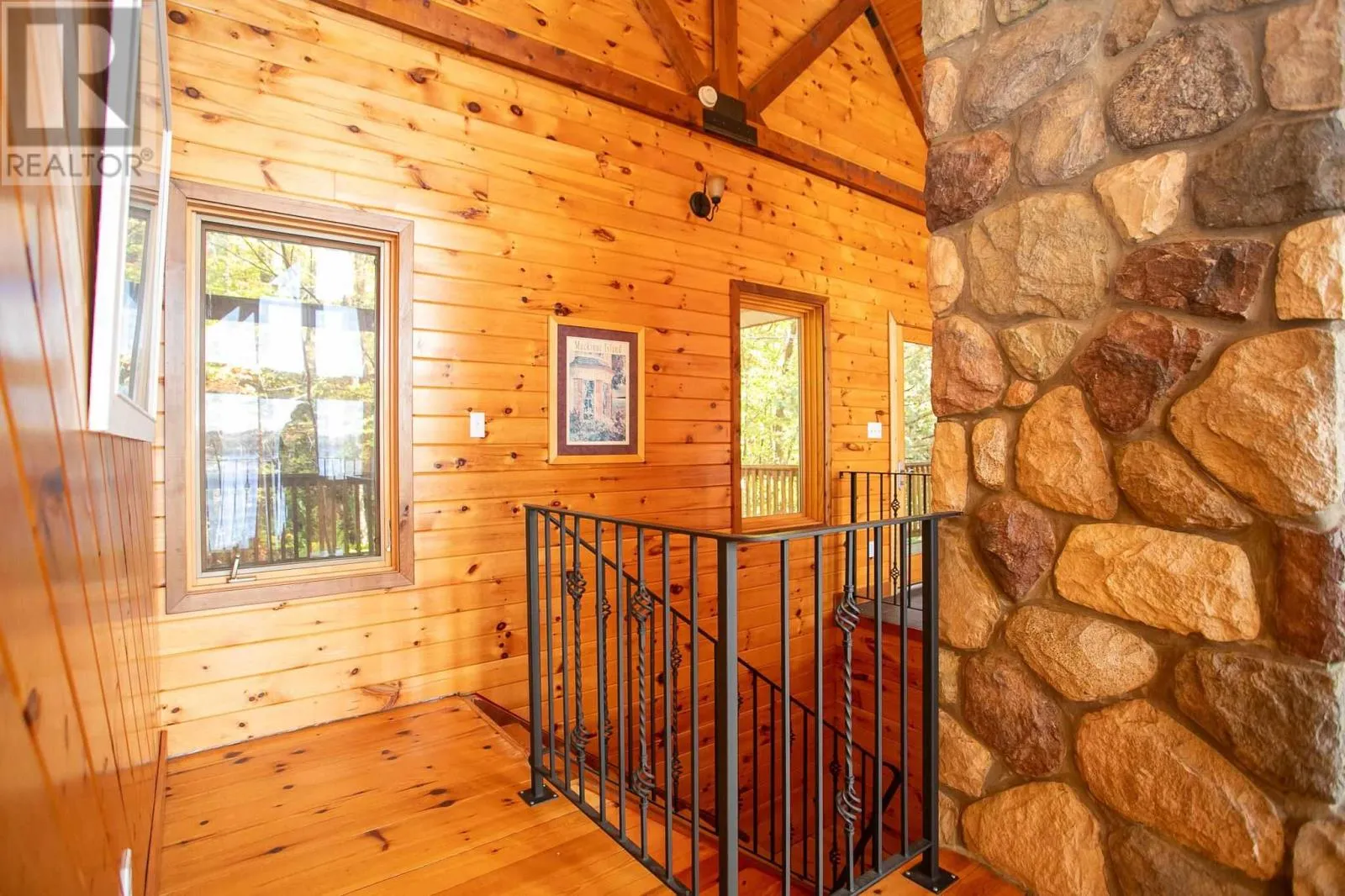 Highway 17 North, turn right onto Trout Lake Road, left on Marina Road. Water Access Retreat with Breathtaking Views & Endless Potential. Welcome to your dream lakeside getaway â a meticulously crafted, approx. 2,100 sq. ft. custom-built two-storey cottage featuring timeless pine interiors, hardwood flooring throughout, custom wrought iron railings, high-end hardie board exterior siding and charming architectural details that perfectly blend rustic warmth with elevated comfort. This four-bedroom retreat boasts garden doors and private balconies off every bedroom, vaulted ceilings in the upper bedrooms and living room, and stunning stone wood-burning fireplaces on both levels. The spacious main floor primary suite offers a walk-in closet and a private 3-piece ensuite. Enjoy a true open-concept layout anchored by a handcrafted pine kitchen and ceramic-tiled wet areas. The second-floor bathroom includes in-suite laundry, with a 3-piece setup. A steel roof ensures durability on the main cottage, sauna, and bunkie, while expansive front and covered rear decks invite seamless indoor-outdoor living. Guest & Lifestyle Features: Two-bedroom bunkie with 3-piece bath, utility room with 16-battery solar storage, generator, and solar panel system, Traditional wood-fired sauna with change room, Private dock for waterfront enjoyment with sand beach, Vaulted loft with steel rod railings offering additional living or recreational space. Boat storage/garage at main level with full garage door for outdoor item storage Systems & Lot Highlights: 100 amp electrical panel, Septic system with bed and two tanks, Water intake present, Surrounded by crown land to the left and behind property, Public sand beach close by, Quiet end of the lake with tons of privacy. Perfectly positioned to capture peaceful waterfront views and designed for multi-generational enjoyment, this exceptional property offers both off-grid independence and timeless cottage charm. A rare opportunity to own a waterfront haven with incredible potential for personal use or future investment. (id:27476)
