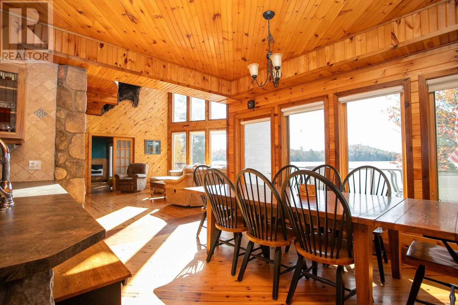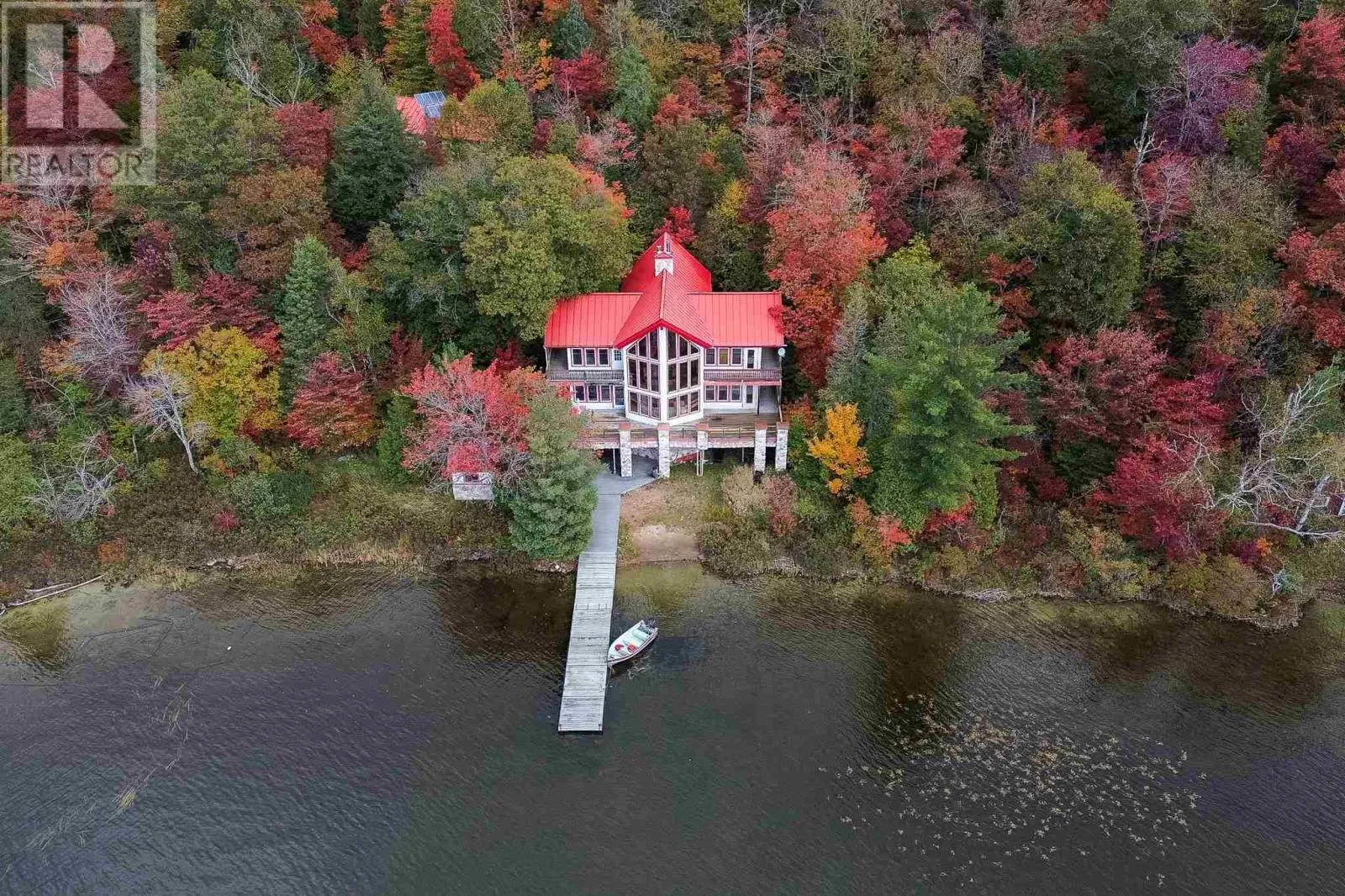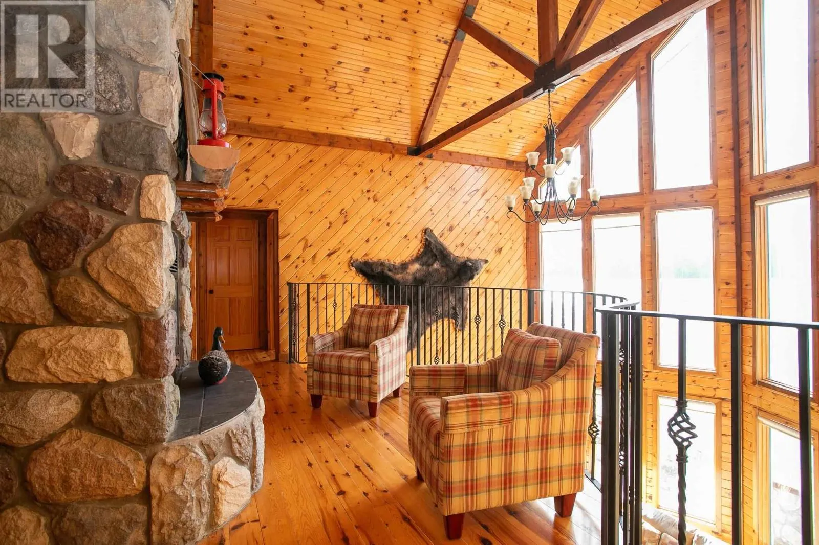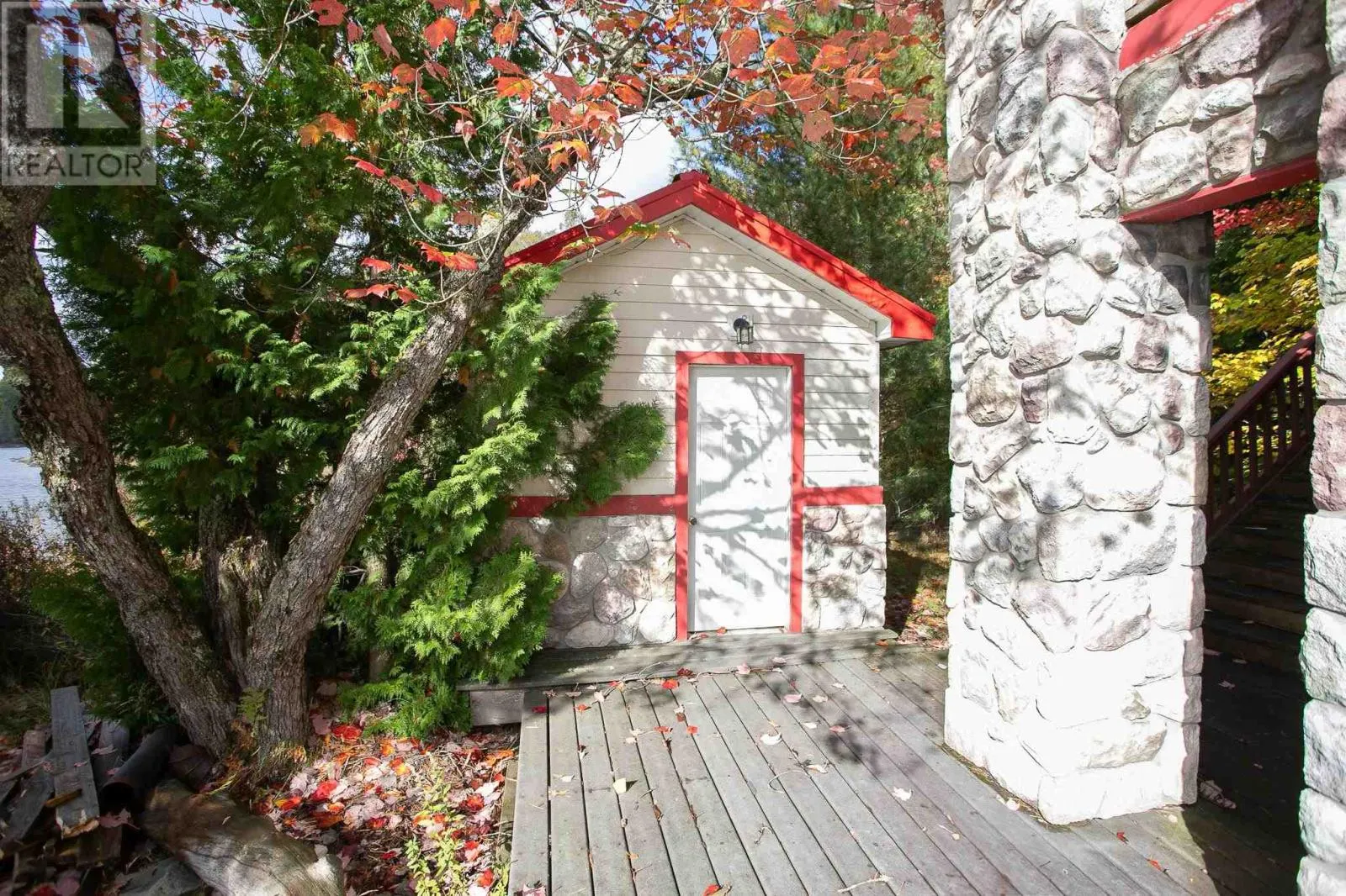 Highway 17 North, turn right onto Trout Lake Road, left on Marina Road. Water Access Retreat with Breathtaking Views & Endless Potential. Welcome to your dream lakeside getaway â a meticulously crafted, approx. 2,100 sq. ft. custom-built two-storey cottage featuring timeless pine interiors, hardwood flooring throughout, custom wrought iron railings, high-end hardie board exterior siding and charming architectural details that perfectly blend rustic warmth with elevated comfort. This four-bedroom retreat boasts garden doors and private balconies off every bedroom, vaulted ceilings in the upper bedrooms and living room, and stunning stone wood-burning fireplaces on both levels. The spacious main floor primary suite offers a walk-in closet and a private 3-piece ensuite. Enjoy a true open-concept layout anchored by a handcrafted pine kitchen and ceramic-tiled wet areas. The second-floor bathroom includes in-suite laundry, with a 3-piece setup. A steel roof ensures durability on the main cottage, sauna, and bunkie, while expansive front and covered rear decks invite seamless indoor-outdoor living. Guest & Lifestyle Features: Two-bedroom bunkie with 3-piece bath, utility room with 16-battery solar storage, generator, and solar panel system, Traditional wood-fired sauna with change room, Private dock for waterfront enjoyment with sand beach, Vaulted loft with steel rod railings offering additional living or recreational space. Boat storage/garage at main level with full garage door for outdoor item storage Systems & Lot Highlights: 100 amp electrical panel, Septic system with bed and two tanks, Water intake present, Surrounded by crown land to the left and behind property, Public sand beach close by, Quiet end of the lake with tons of privacy. Perfectly positioned to capture peaceful waterfront views and designed for multi-generational enjoyment, this exceptional property offers both off-grid independence and timeless cottage charm. A rare opportunity to own a waterfront haven with incredible potential for personal use or future investment. (id:27476)