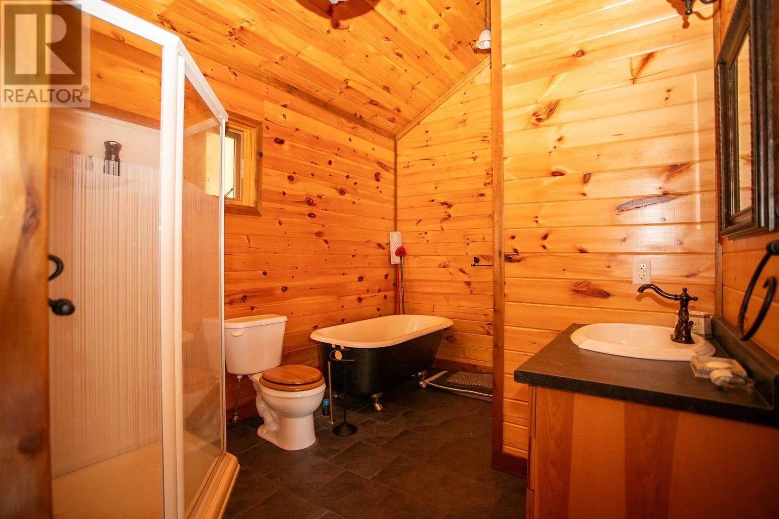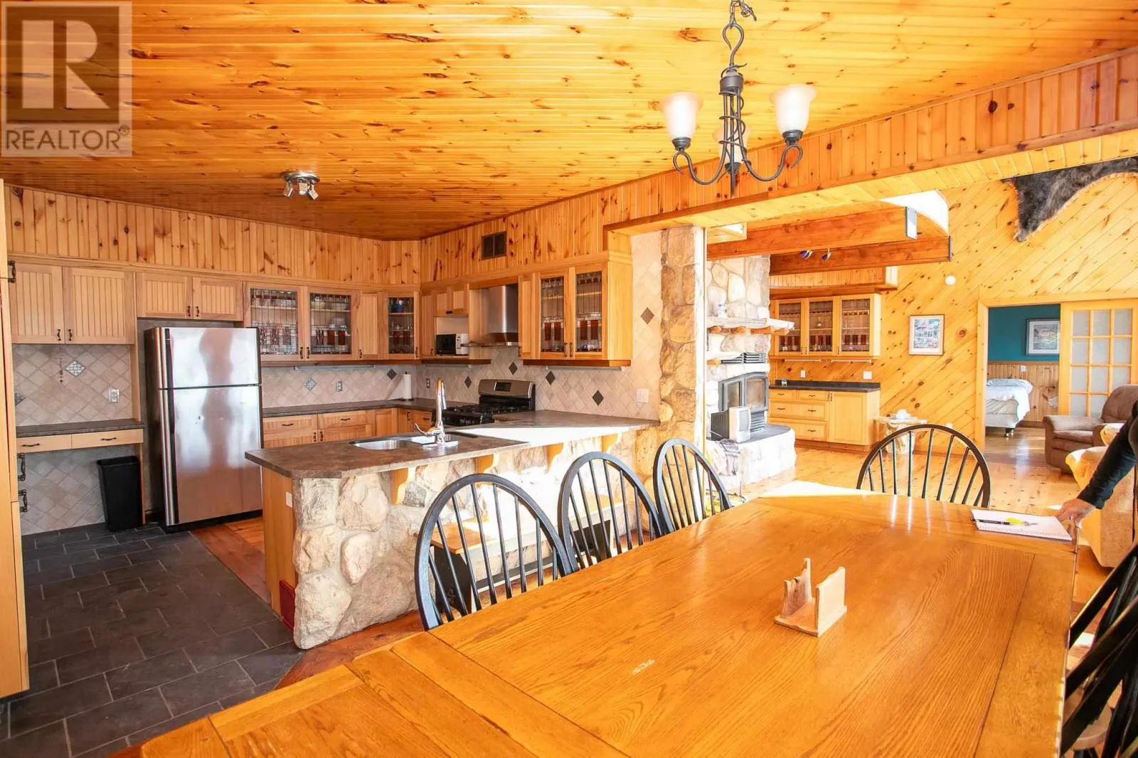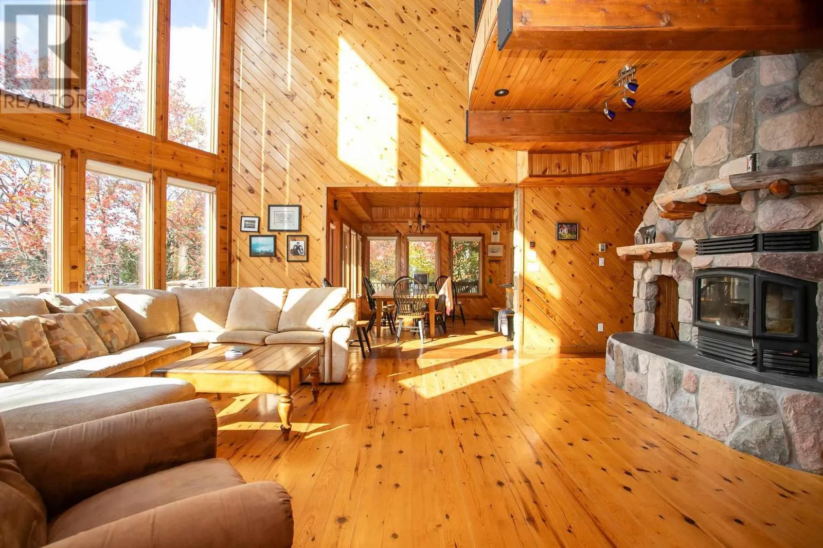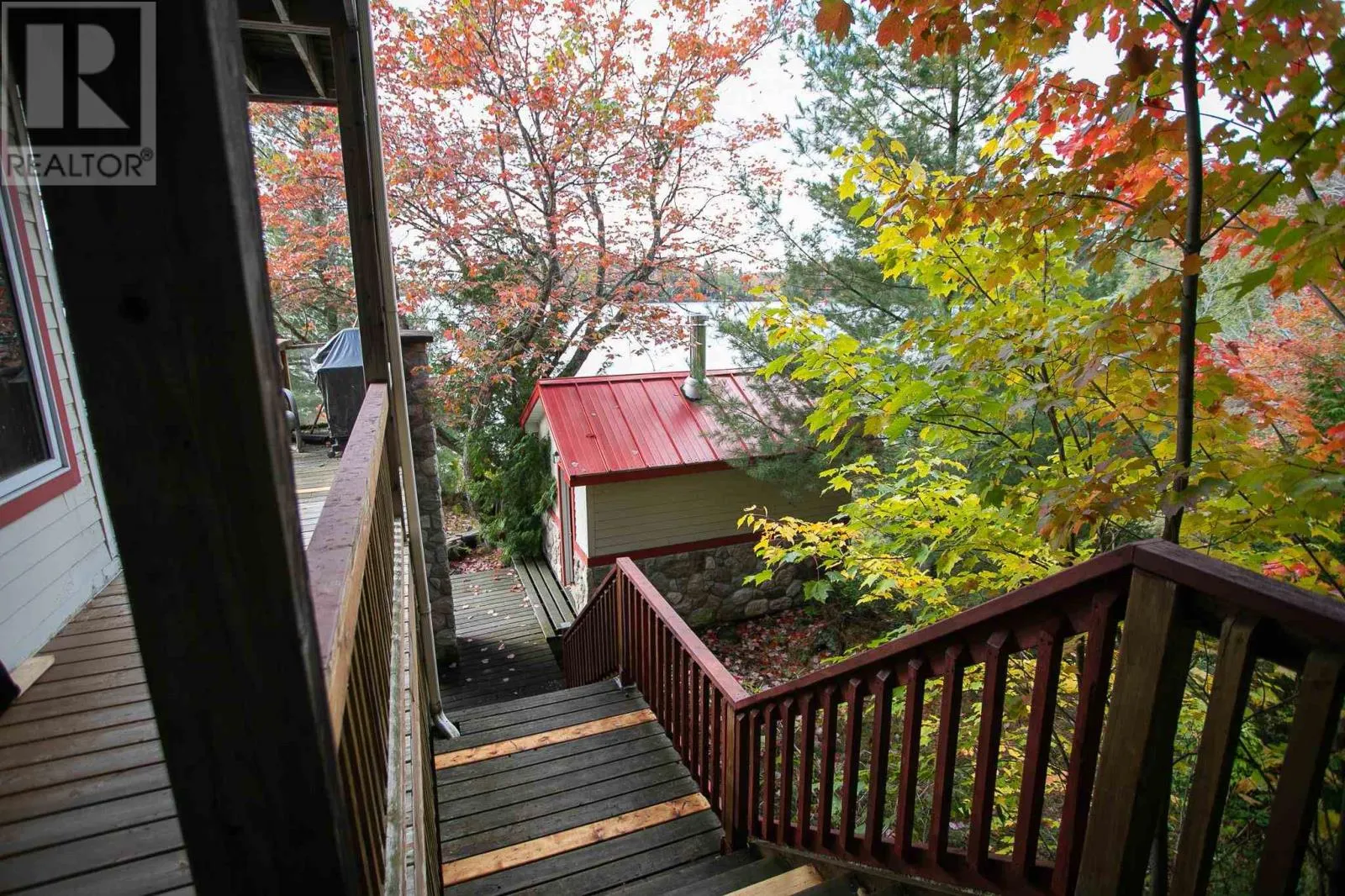 Highway 17 North, turn right onto Trout Lake Road, left on Marina Road. Water Access Retreat with Breathtaking Views & Endless Potential. Welcome to your dream lakeside getaway â a meticulously crafted, approx. 2,100 sq. ft. custom-built two-storey cottage featuring timeless pine interiors, hardwood flooring throughout, custom wrought iron railings, high-end hardie board exterior siding and charming architectural details that perfectly blend rustic warmth with elevated comfort. This four-bedroom retreat boasts garden doors and private balconies off every bedroom, vaulted ceilings in the upper bedrooms and living room, and stunning stone wood-burning fireplaces on both levels. The spacious main floor primary suite offers a walk-in closet and a private 3-piece ensuite. Enjoy a true open-concept layout anchored by a handcrafted pine kitchen and ceramic-tiled wet areas. The second-floor bathroom includes in-suite laundry, with a 3-piece setup. A steel roof ensures durability on the main cottage, sauna, and bunkie, while expansive front and covered rear decks invite seamless indoor-outdoor living. Guest & Lifestyle Features: Two-bedroom bunkie with 3-piece bath, utility room with 16-battery solar storage, generator, and solar panel system, Traditional wood-fired sauna with change room, Private dock for waterfront enjoyment with sand beach, Vaulted loft with steel rod railings offering additional living or recreational space. Boat storage/garage at main level with full garage door for outdoor item storage Systems & Lot Highlights: 100 amp electrical panel, Septic system with bed and two tanks, Water intake present, Surrounded by crown land to the left and behind property, Public sand beach close by, Quiet end of the lake with tons of privacy. Perfectly positioned to capture peaceful waterfront views and designed for multi-generational enjoyment, this exceptional property offers both off-grid independence and timeless cottage charm. A rare opportunity to own a waterfront haven with incredible potential for personal use or future investment. (id:27476)