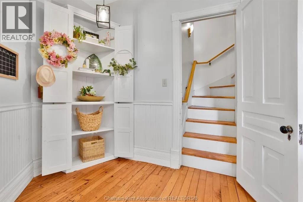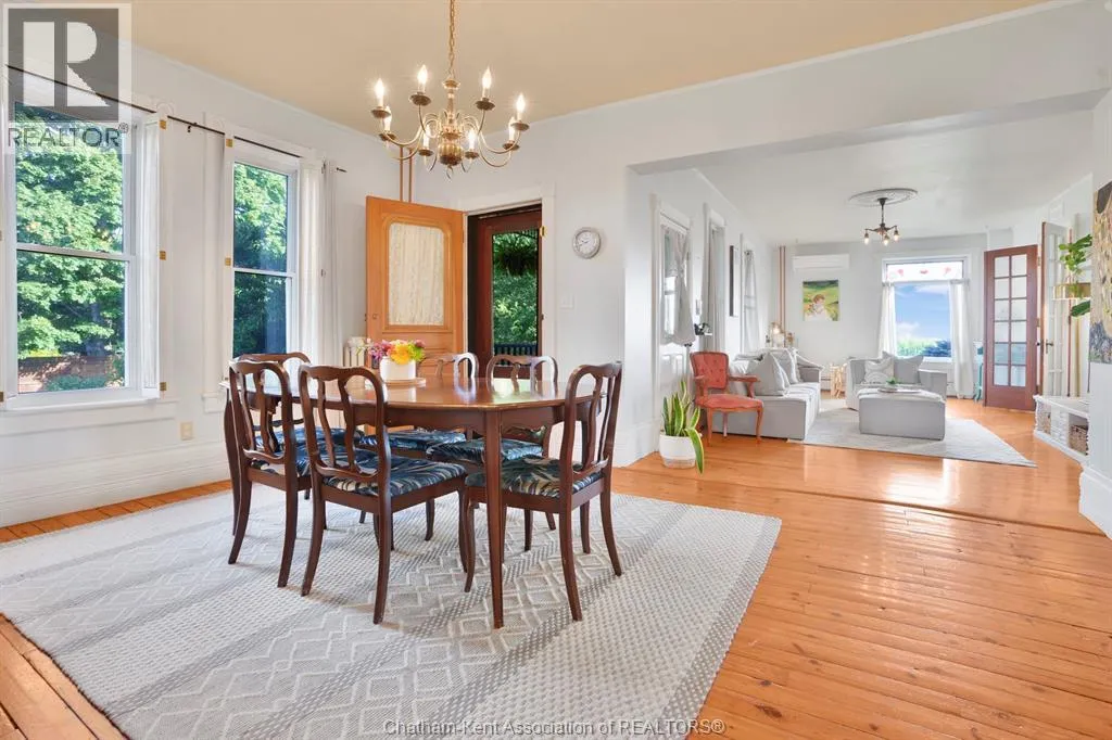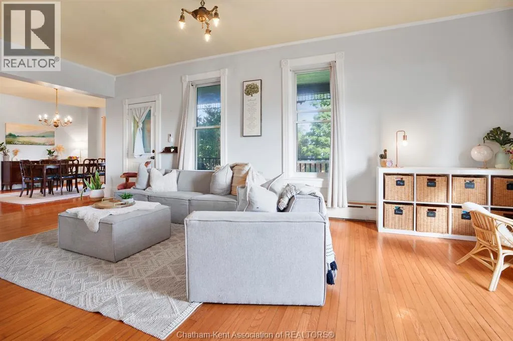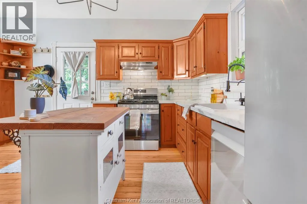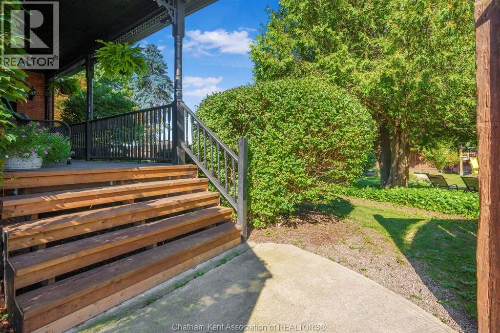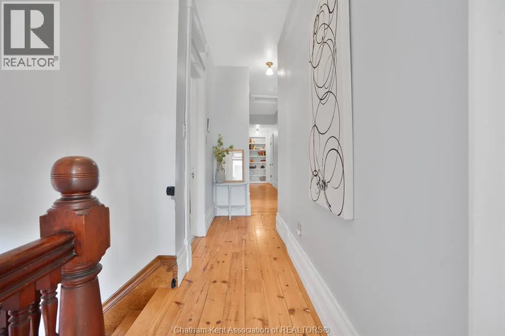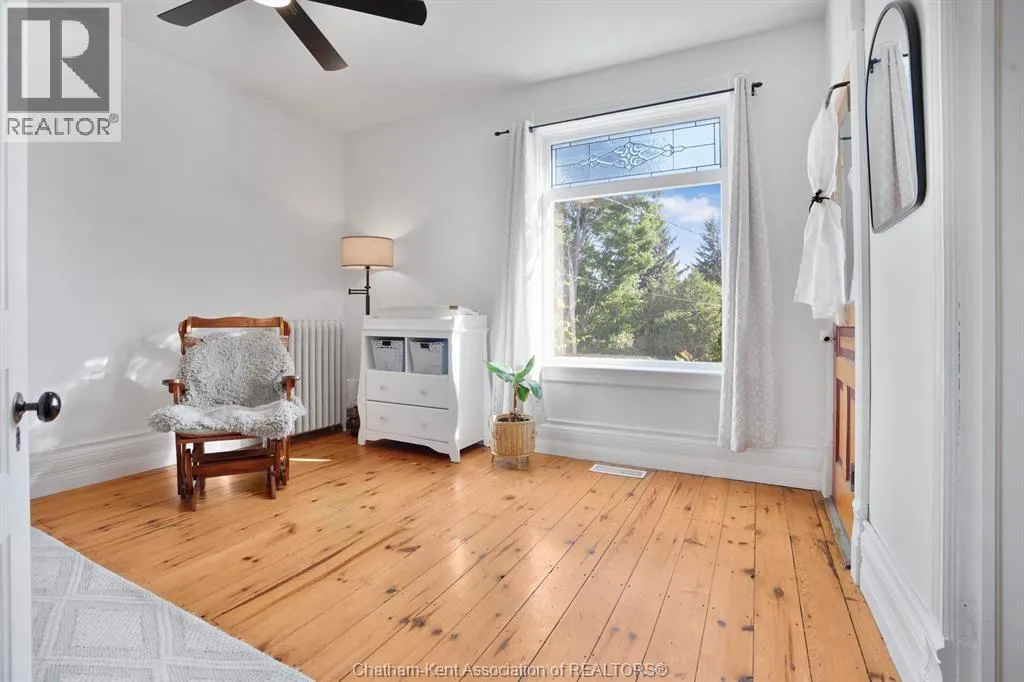 This remarkable Victorian home, built in 1890, blends timeless architecture with thoughtful updates. Constructed of original terracotta brick, it sits proudly on a double lot, fully enclosed by a custom 7-foot reclaimed barn beam fence. Mature trees surround the property, including magnolia, silver maple, and an extraordinary Japanese maple. From the west corner, enjoy breathtaking sunsets over farmland, while the Juliet balcony on the east side offers a perfect view of the sunrise. The grounds are a gardenerâs dream, featuring fruit trees (apple, pear, cherry), berry bushes, and a 50-foot perennial garden with asparagus, strawberries, raspberries, and grapes. A large shop/garage and custom-built chicken coop with permit complete the outdoor amenities. The original wraparound porch greets you with ornate details, while from King Street, the homeâs 30-foot height and original stained-glass picture windows make a striking impression. Inside, the foyer showcases a grand staircase, leading into open-concept living and dining areas with 12-inch trim, crown molding, decorative medallions, and early 1900s Toronto-made cast-iron radiators. The updated kitchen combines charm and function with a farmhouse sink, timeless backsplash, and countertops, plus a new double-door fridge (2021), gas range (2025), and dishwasher (2025). The original butlerâs stairs remain intact. Offering 4+1 bedrooms, this home features 10-foot ceilings on both levels and a repointed fieldstone foundation, even allowing generous headroom in the laundry area (new dryer 2024). The primary suite includes a private dressing room, while the upper bath offers an original reglazed clawfoot tub (2021). With a Hy-Grade steel roof, this property combines heritage character, modern updates, and small-town charmâa rare opportunity to own a true Victorian masterpiece. (id:27476)