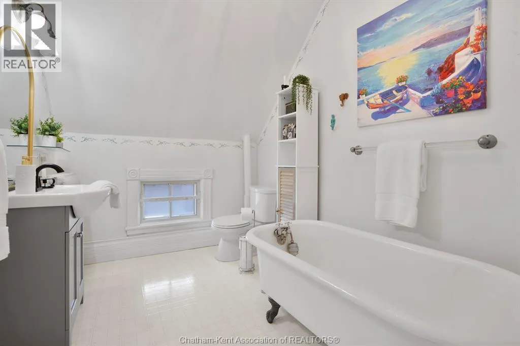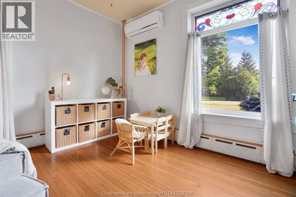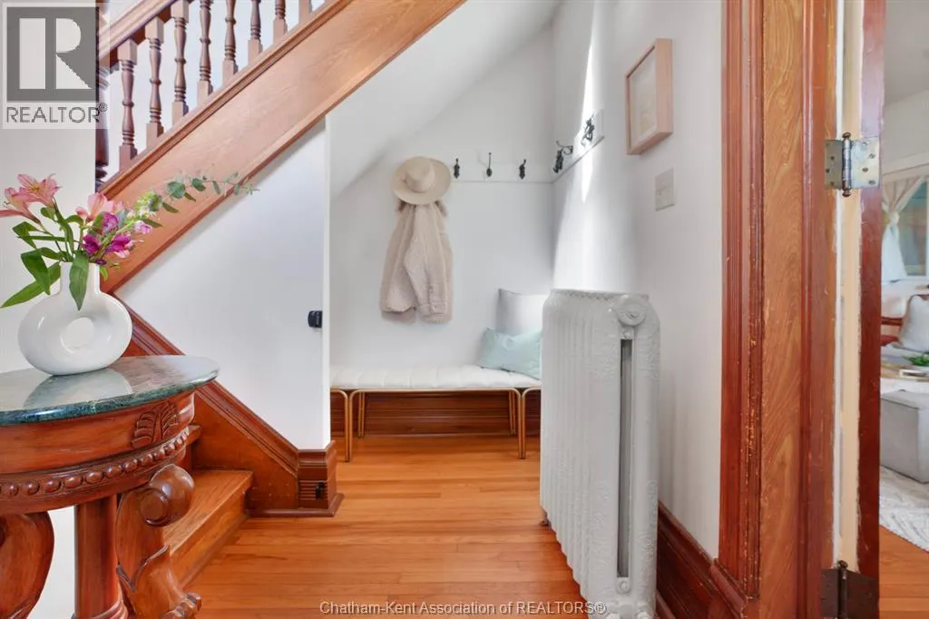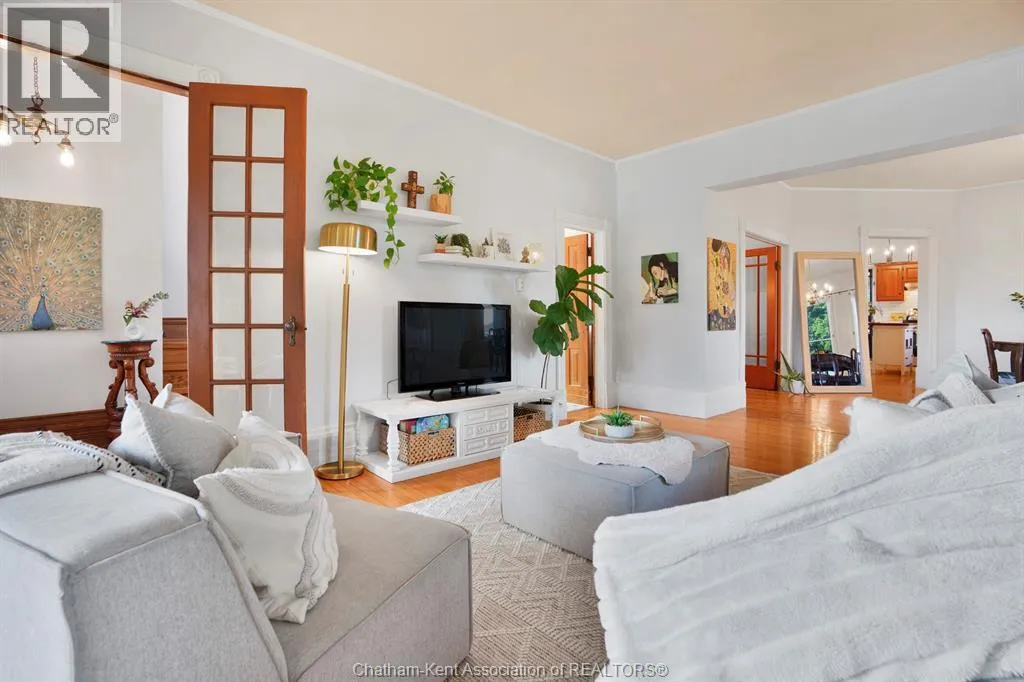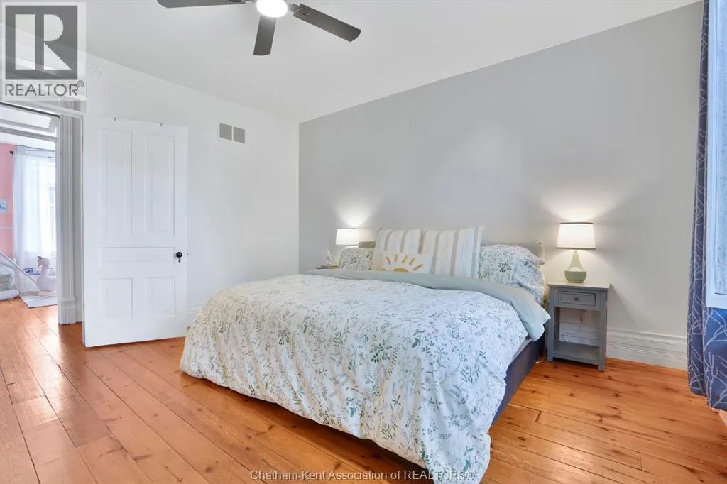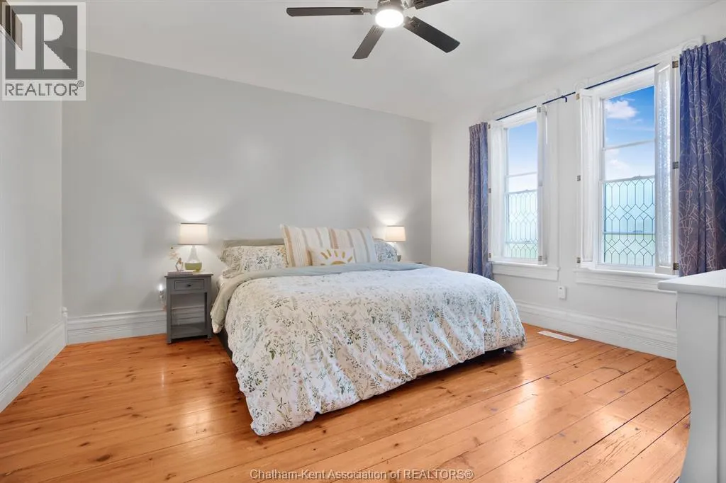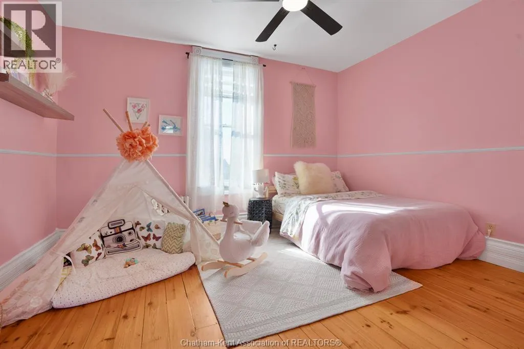 This remarkable Victorian home, built in 1890, blends timeless architecture with thoughtful updates. Constructed of original terracotta brick, it sits proudly on a double lot, fully enclosed by a custom 7-foot reclaimed barn beam fence. Mature trees surround the property, including magnolia, silver maple, and an extraordinary Japanese maple. From the west corner, enjoy breathtaking sunsets over farmland, while the Juliet balcony on the east side offers a perfect view of the sunrise. The grounds are a gardenerâs dream, featuring fruit trees (apple, pear, cherry), berry bushes, and a 50-foot perennial garden with asparagus, strawberries, raspberries, and grapes. A large shop/garage and custom-built chicken coop with permit complete the outdoor amenities. The original wraparound porch greets you with ornate details, while from King Street, the homeâs 30-foot height and original stained-glass picture windows make a striking impression. Inside, the foyer showcases a grand staircase, leading into open-concept living and dining areas with 12-inch trim, crown molding, decorative medallions, and early 1900s Toronto-made cast-iron radiators. The updated kitchen combines charm and function with a farmhouse sink, timeless backsplash, and countertops, plus a new double-door fridge (2021), gas range (2025), and dishwasher (2025). The original butlerâs stairs remain intact. Offering 4+1 bedrooms, this home features 10-foot ceilings on both levels and a repointed fieldstone foundation, even allowing generous headroom in the laundry area (new dryer 2024). The primary suite includes a private dressing room, while the upper bath offers an original reglazed clawfoot tub (2021). With a Hy-Grade steel roof, this property combines heritage character, modern updates, and small-town charmâa rare opportunity to own a true Victorian masterpiece. (id:27476)