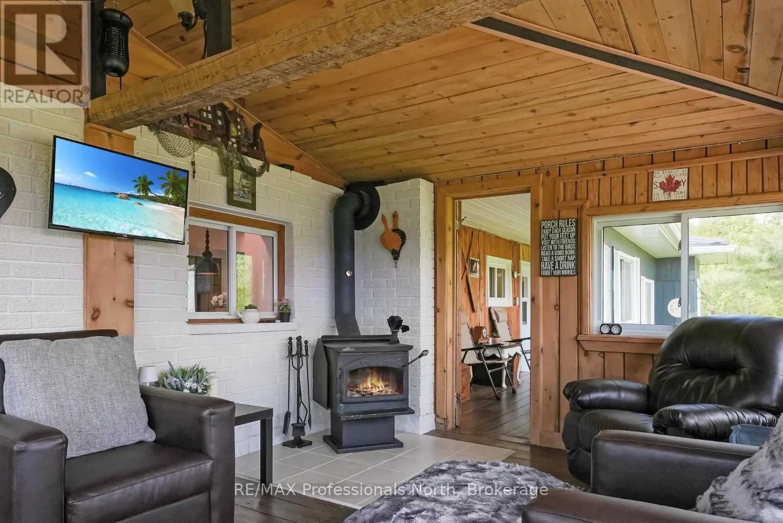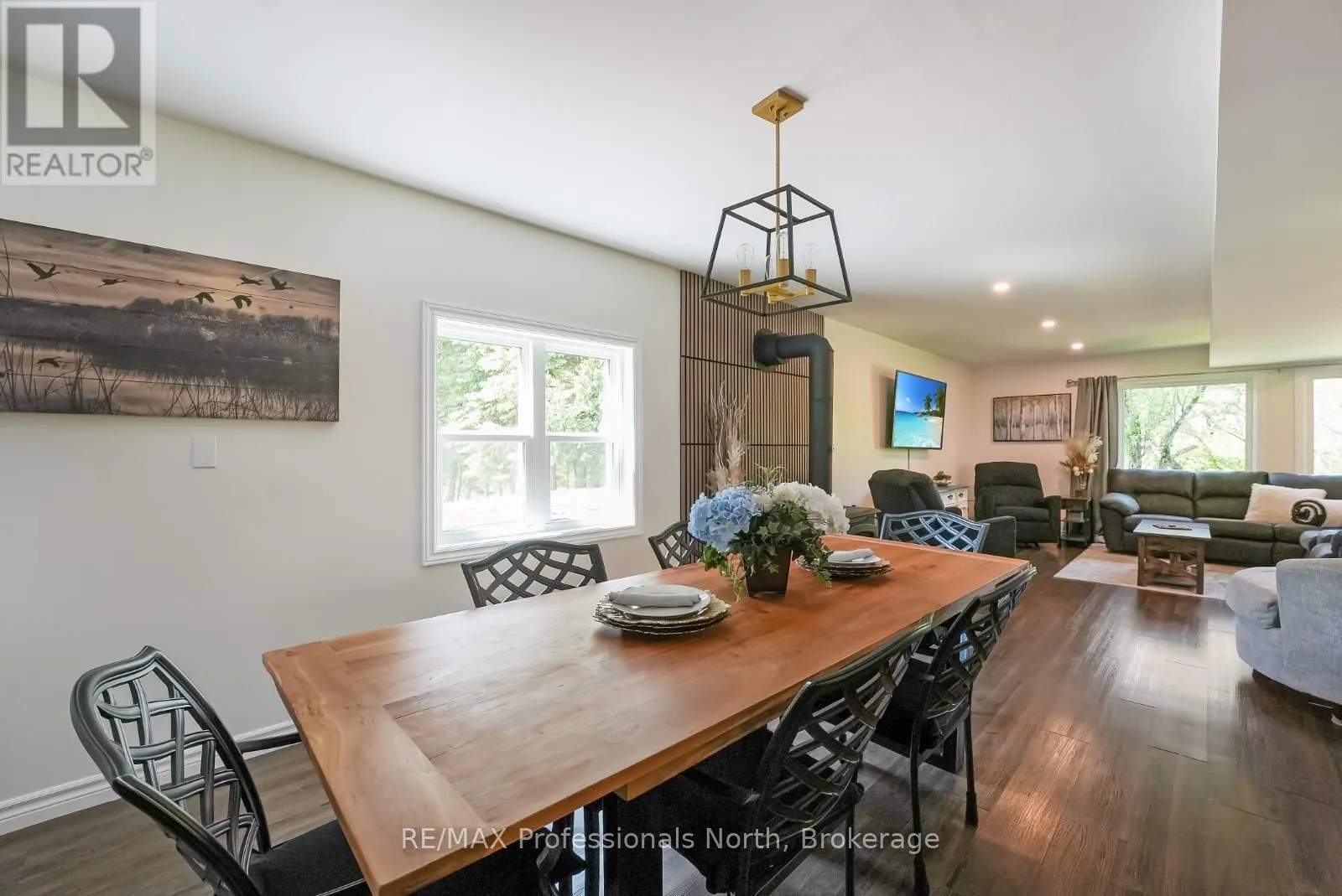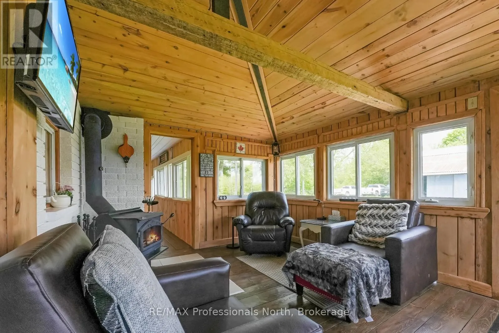 ON-118E to Paynes road Classic homestead farm property set on 77 acres, offering expansive views of stunning sunrises, sunsets, and star-filled nights. From the moment you walk through the door, this home welcomes you with a warm, family-oriented atmosphere that truly feels like home. The fully refinished 2,500 sq ft interior features an updated kitchen and an open-concept main floor combining kitchen, dining, and living areas. Also on the main level are a 3-piece bathroom, laundry room, mudroom, plus two additional rooms ideal for guests, an office, or a den. A sunroom with a fireplace provides a cozy space for cooler evenings. Attached to the home are a wood shed and garage. The second floor offers six spacious bedrooms and a large 3-piece bathroom, perfect for accommodating family and guests. Outside, multiple outbuildings enhance the property's functionality, including a sawmill, a barn with a hayloft, and dedicated snowmobile and toy storage. Across the road behind the property, there is potential to purchase additional land with three recently severed lots available: Part 1 is 14.6 acres, Part 2 is 31.8 acres, and Part 3 is 40 acres providing opportunities for expansion or investment. This is a rare opportunity to own a classic family farm with room to grow and create lasting memories. (id:27476)