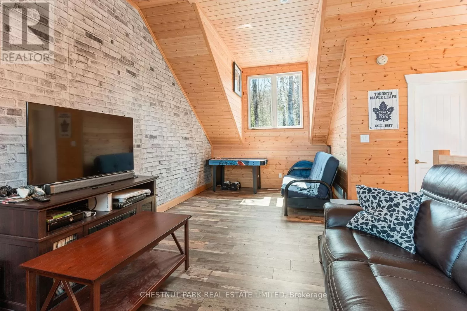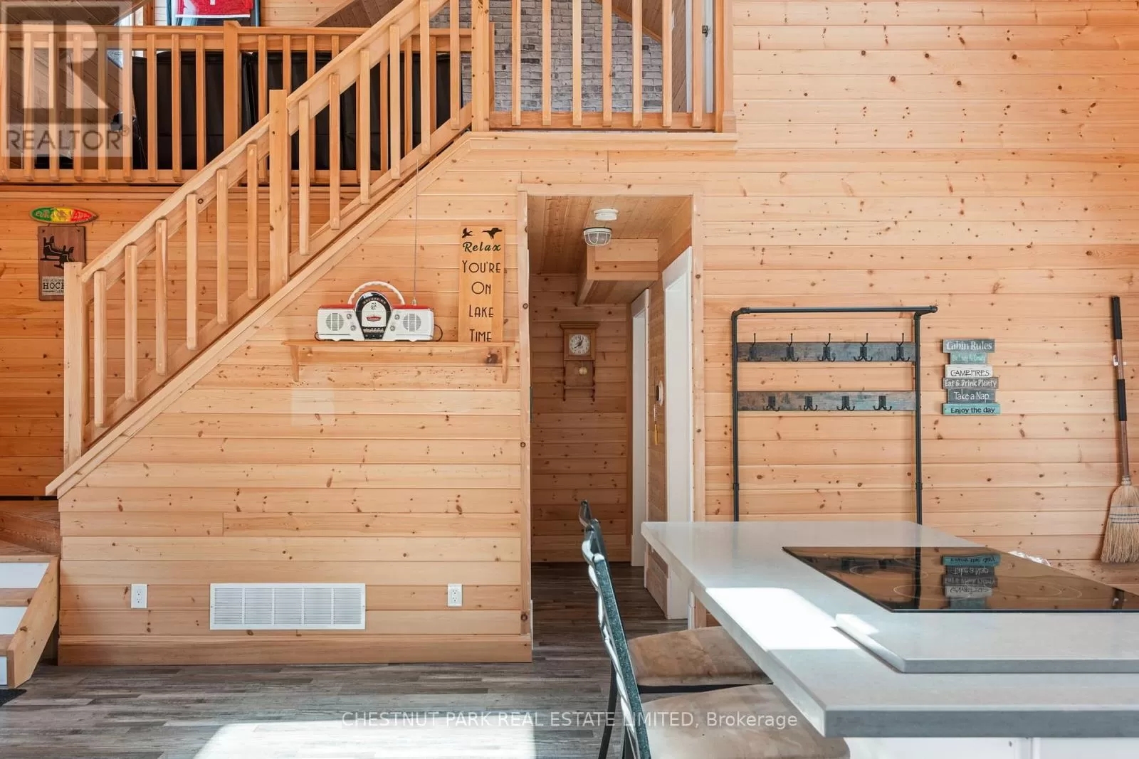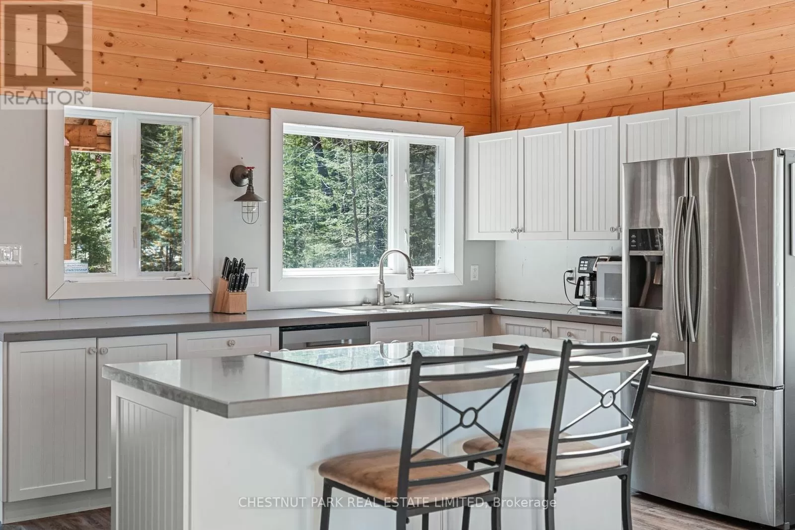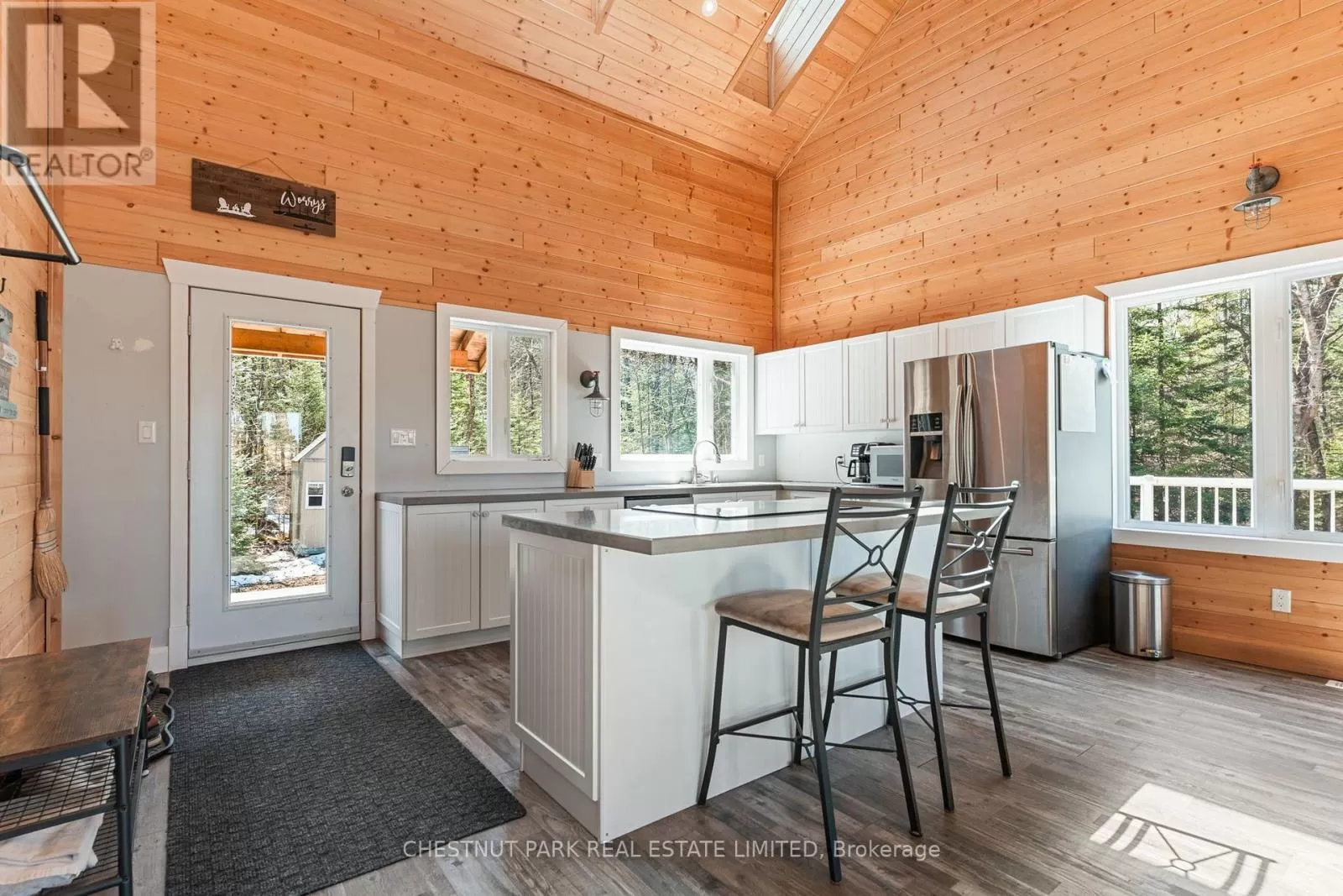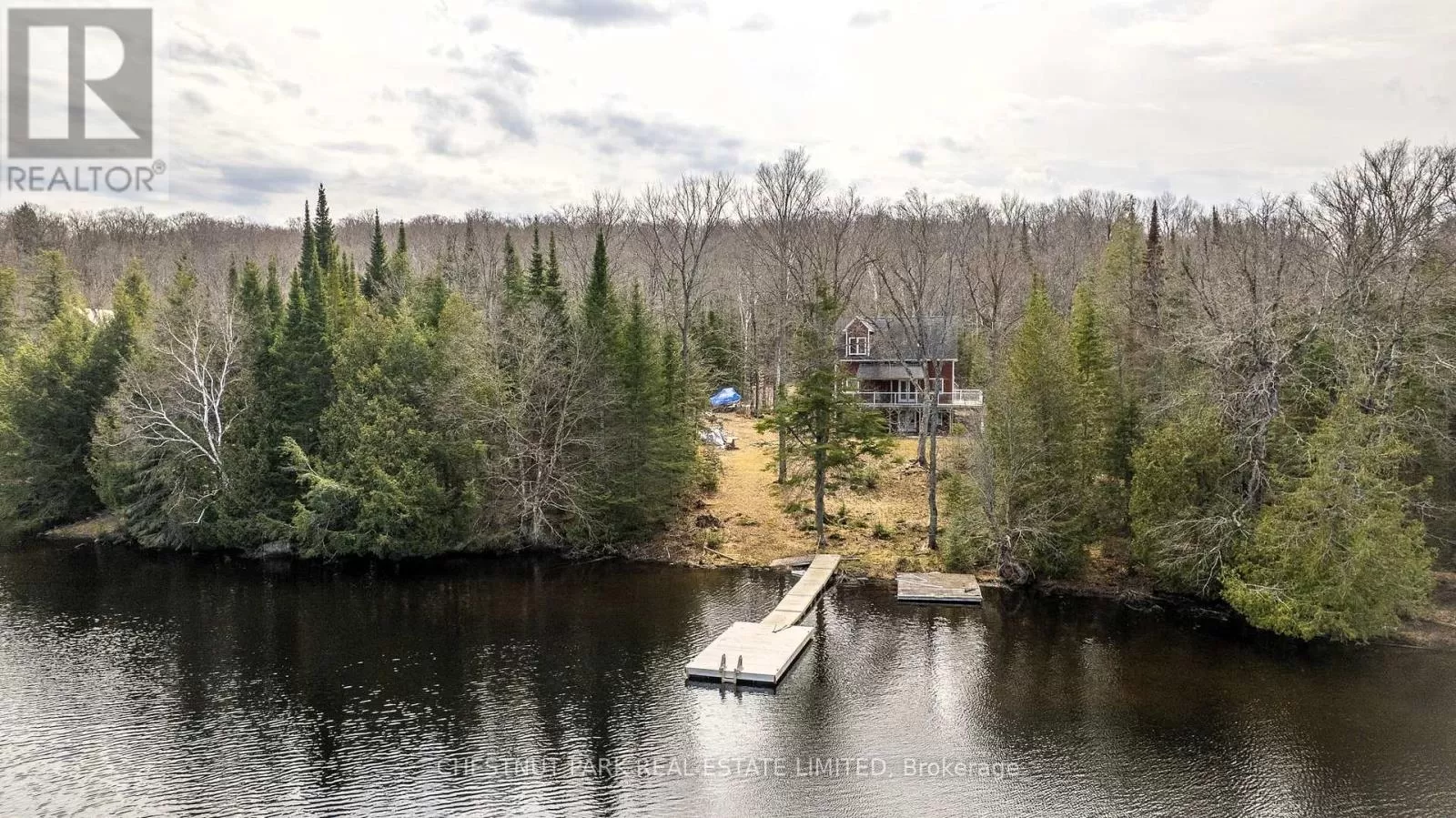 Cross Streets: Hwy 118 & Adanac. ** Directions: Adenac Rd to Stonehenge SOP. Escape to Your Own Lakeside Sanctuary Tucked away on the serene shores of Colbourne Lake, this 2+2 bedroom, 2-bathroom retreat is the ultimate blend of privacy, comfort, and natural beauty. Set on a quiet lake with only a few cottages, this four-season getaway offers year-round access and the kind of peace thats hard to find. Step inside to find an open-concept design with soaring ceilings, rich wood accents, and a cozy propane fireplaceall perfectly designed to complement the stunning natural surroundings. The spacious loft is ideal for extra guests, a home office, or a creative studio. Start your mornings with coffee on the covered deck and wind down with sunset views over the water, where loons call and deer often wander by. Colbourne Lake is a hidden gem ideal for swimming, fishing, kayaking, paddleboarding, and motorized watersports like boating, tubing, or wakeboarding. Wildlife lovers and outdoor enthusiasts will feel right at home.With an unfinished walkout basement offering room to grow and located minutes from crown land, this property is a rare opportunity to live simply, fully, and surrounded by nature. (id:27476)